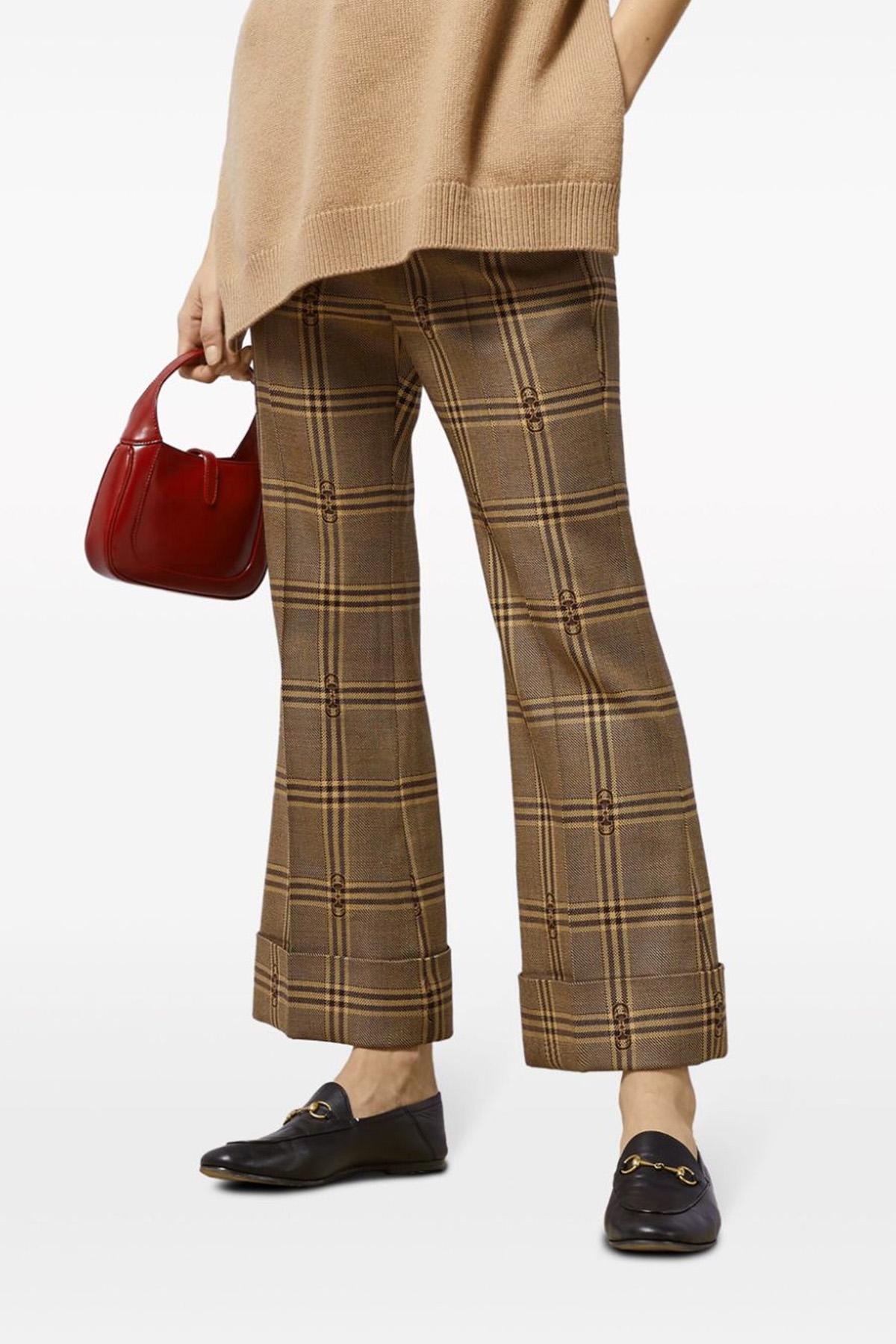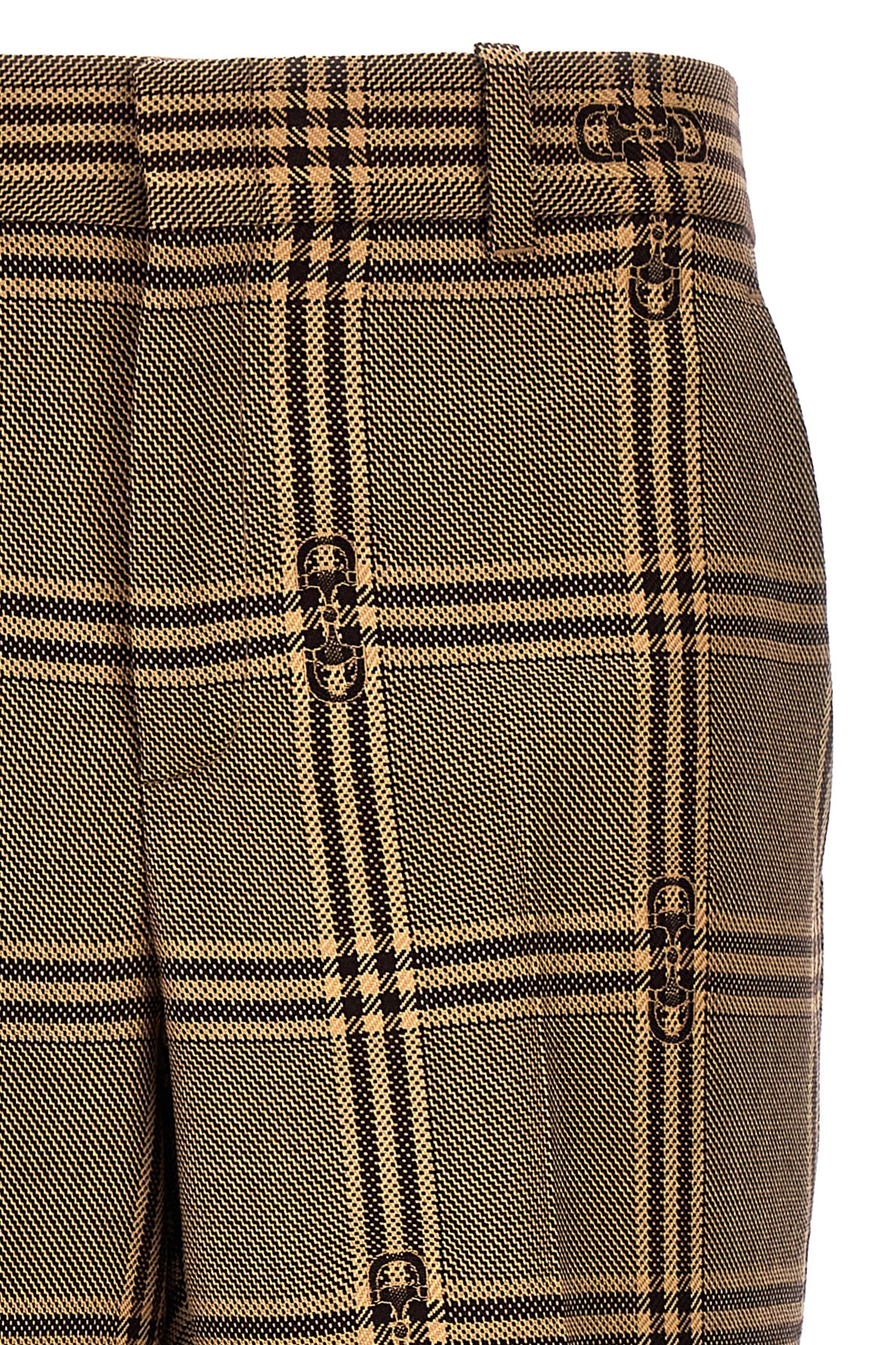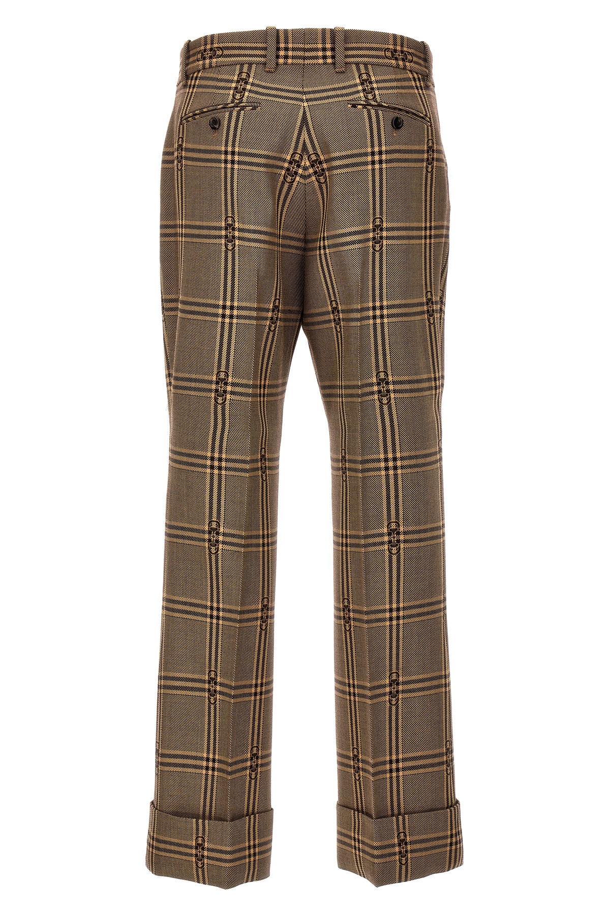 Check print wool pants with 'Morsetto' detail, zip and hook closure, pockets, ironed crease leg and turned-up hem.