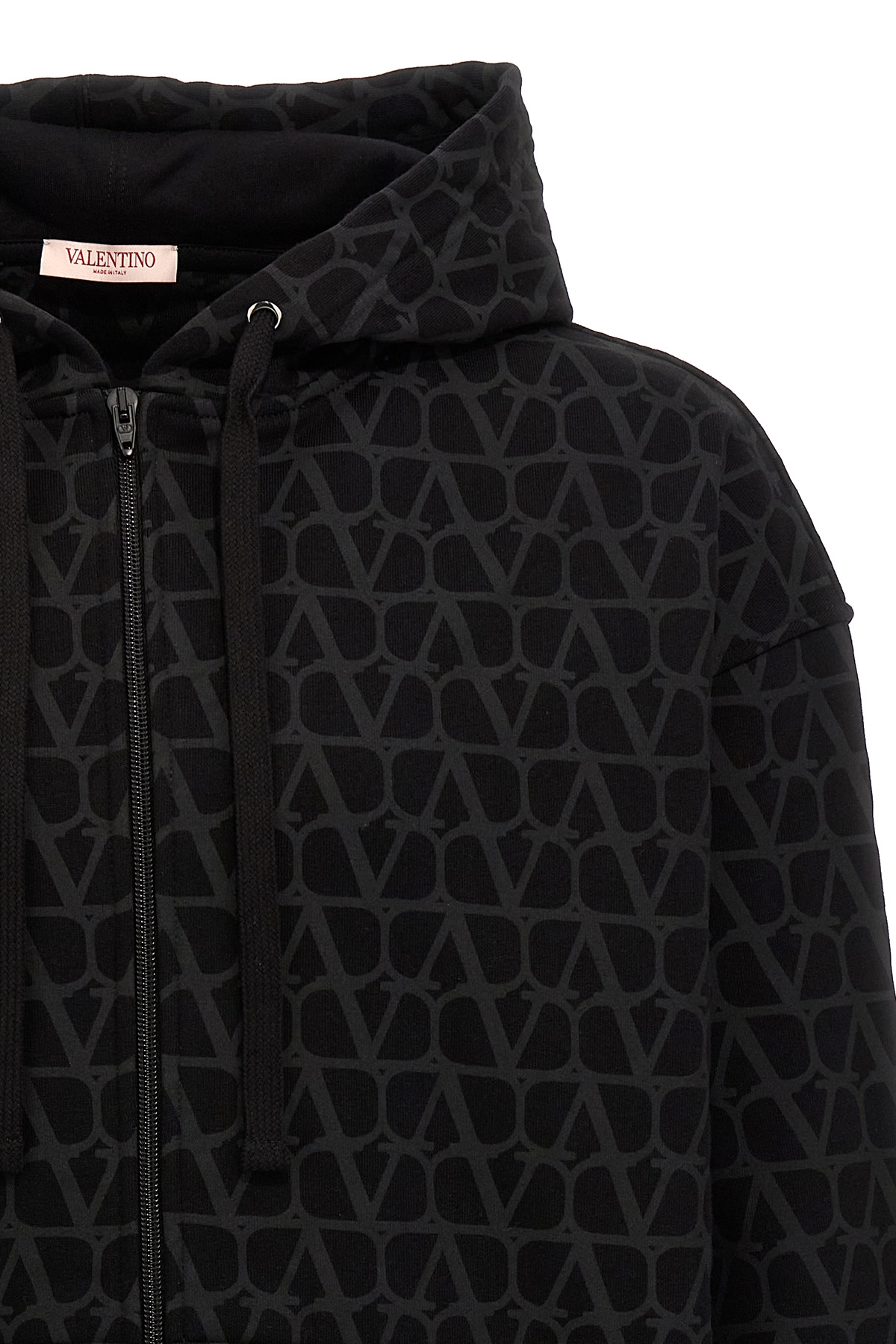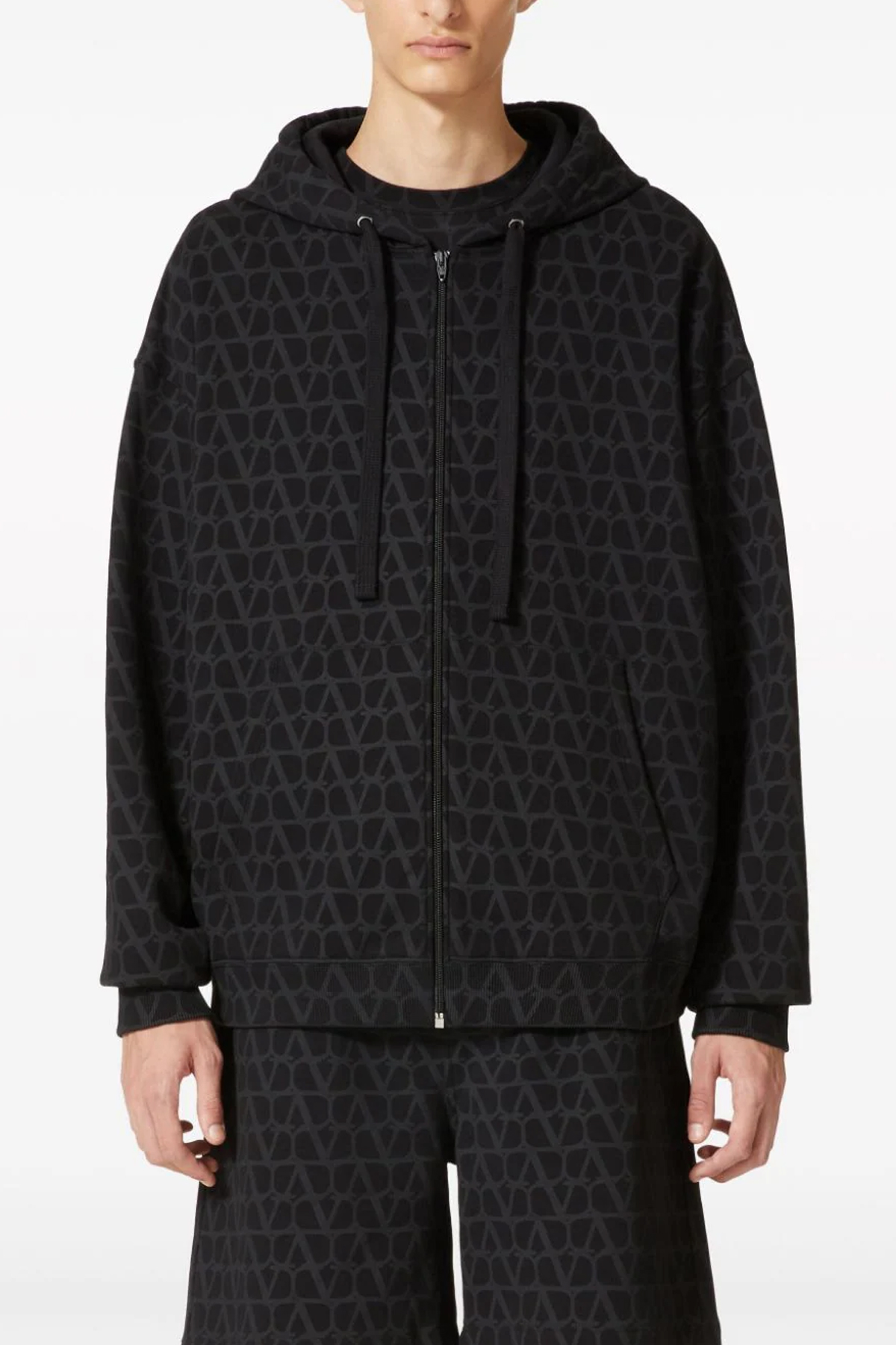 'Toile Iconographe' cotton hoodie with all-over logo print and zip closure.