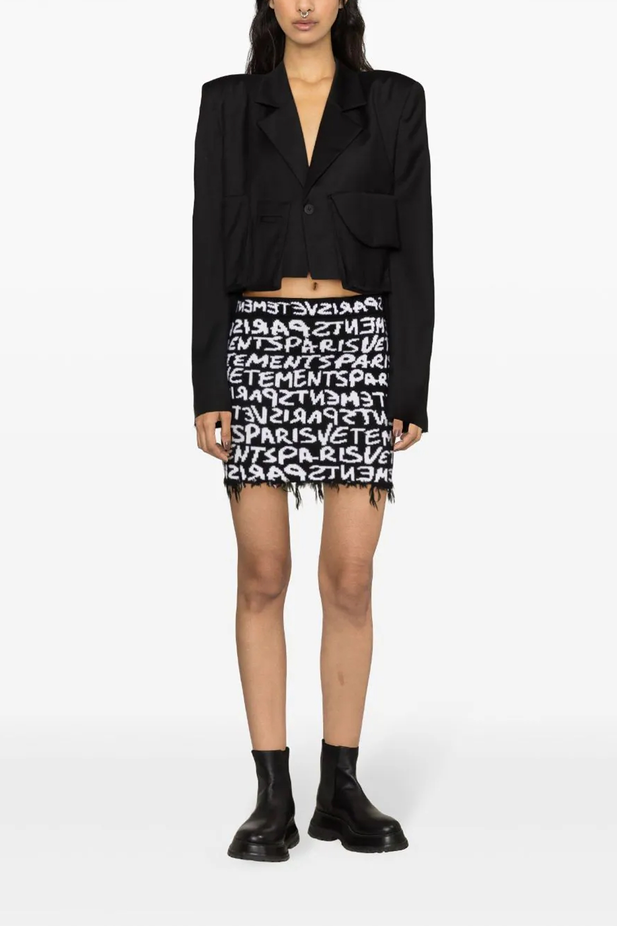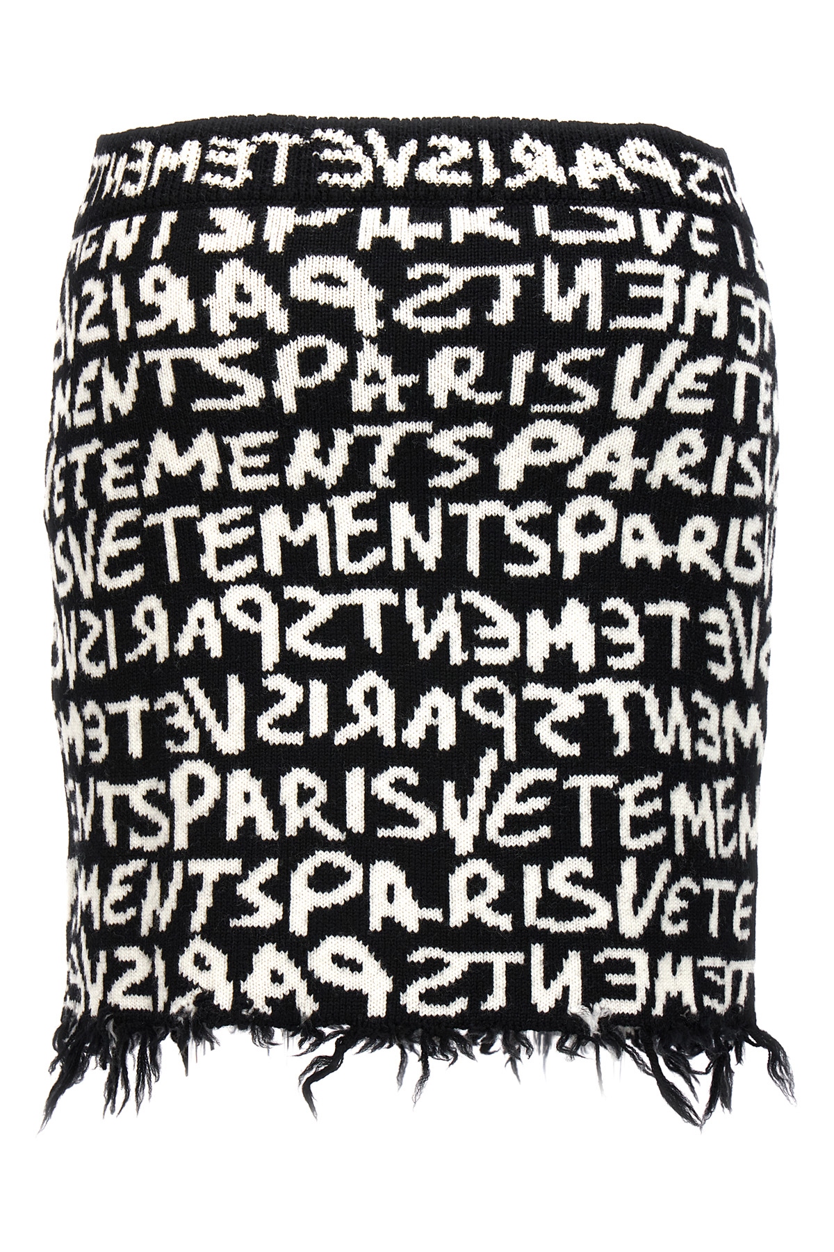 'Graffiti Monogram' wool skirt with all-over jacquard logo pattern, elastic waistband, frayed hem.
