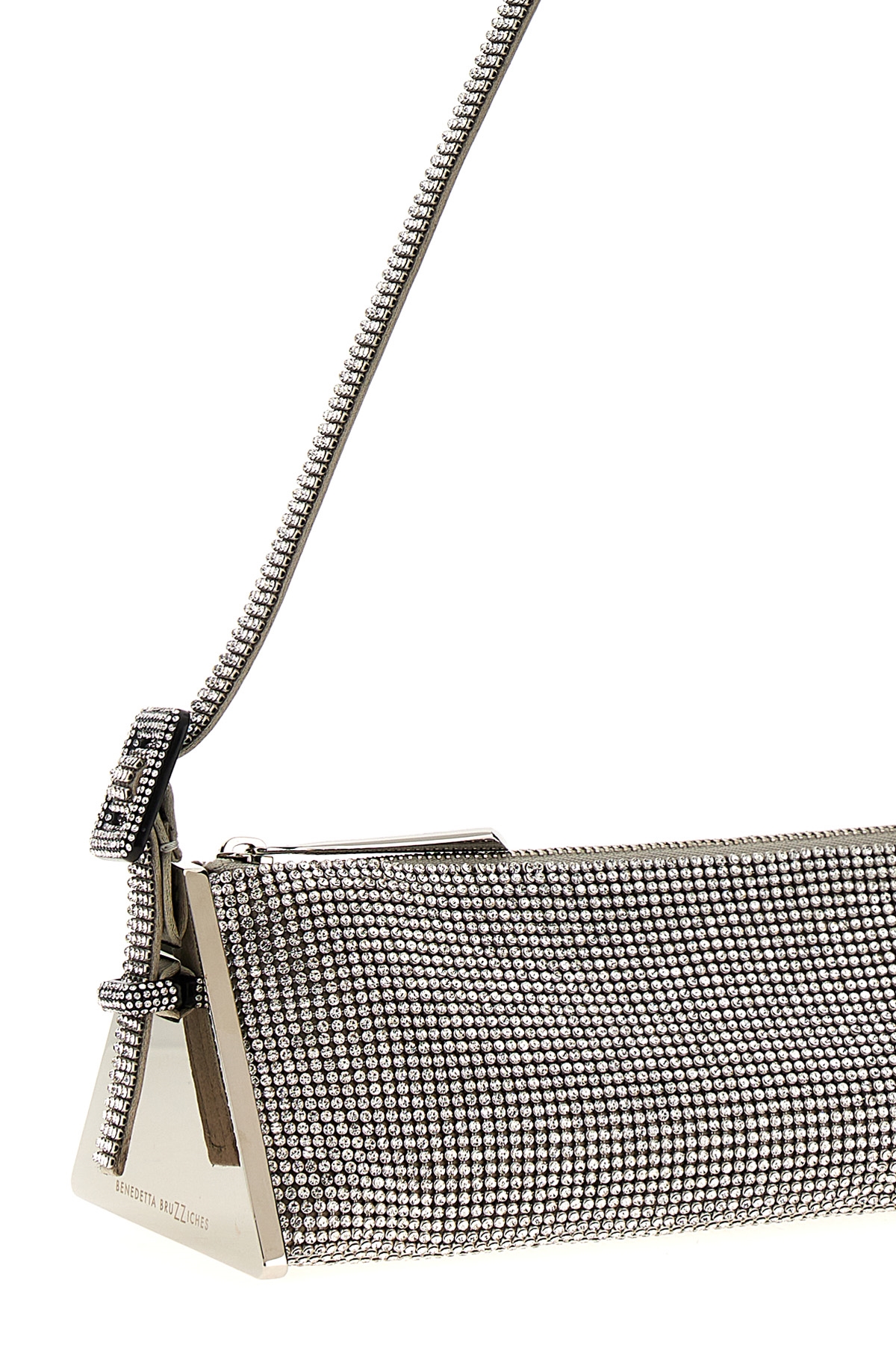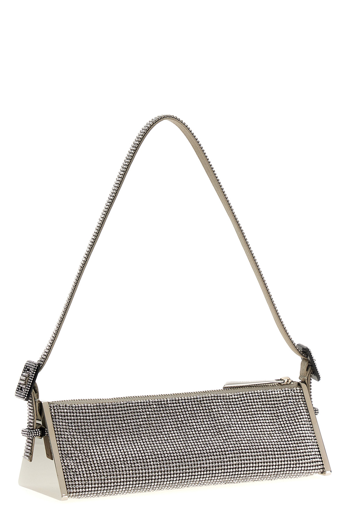 'Joy' shoulder bag entirely in crystals with handle with buckle detail, zip closure, metal details on the sides.