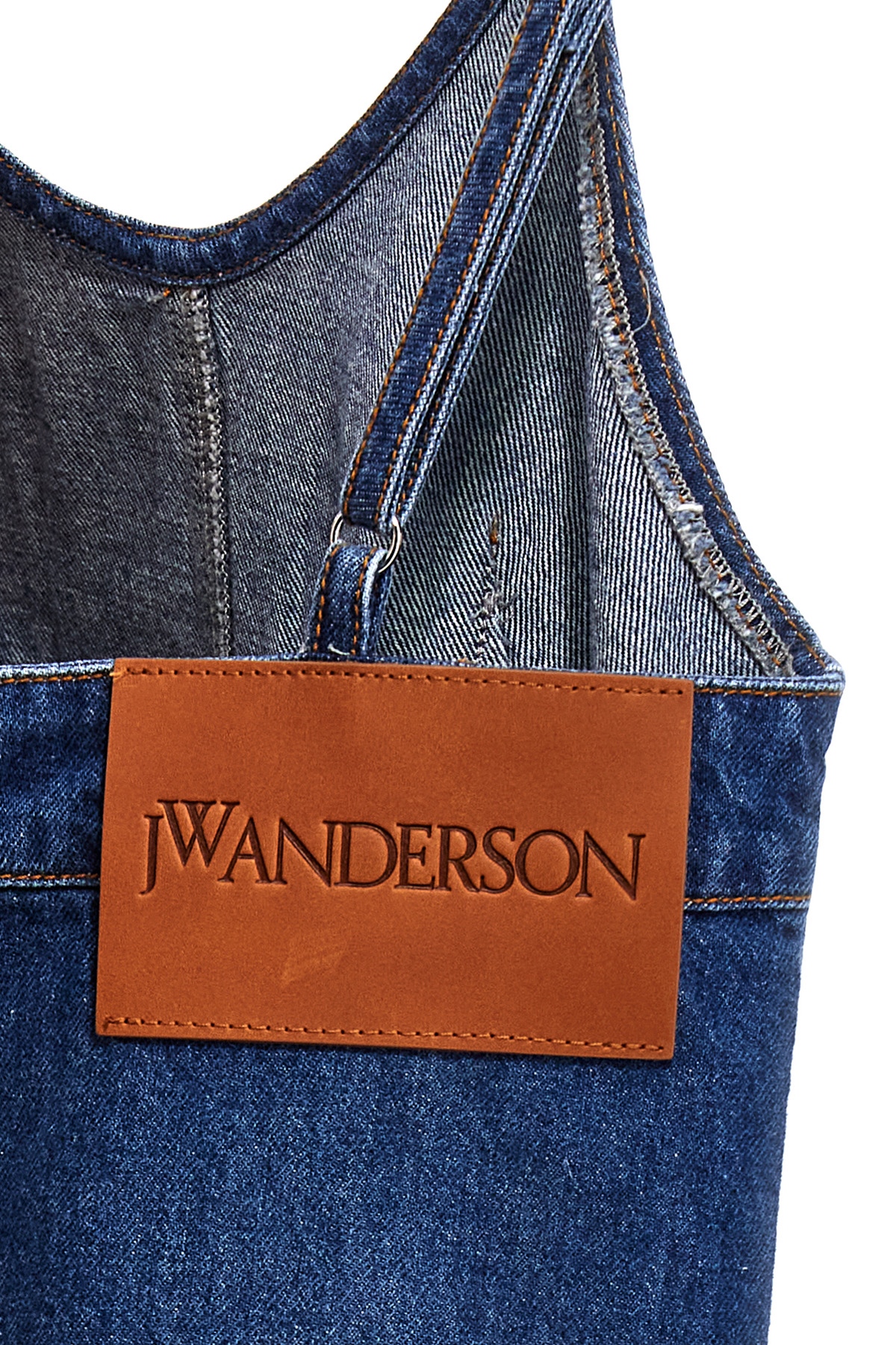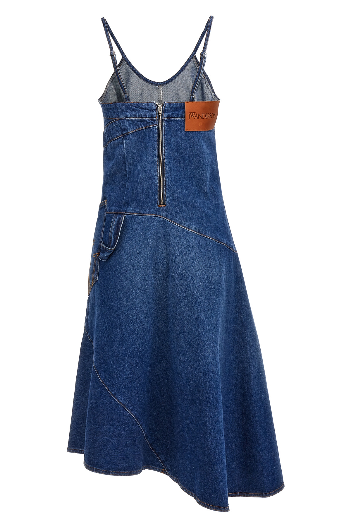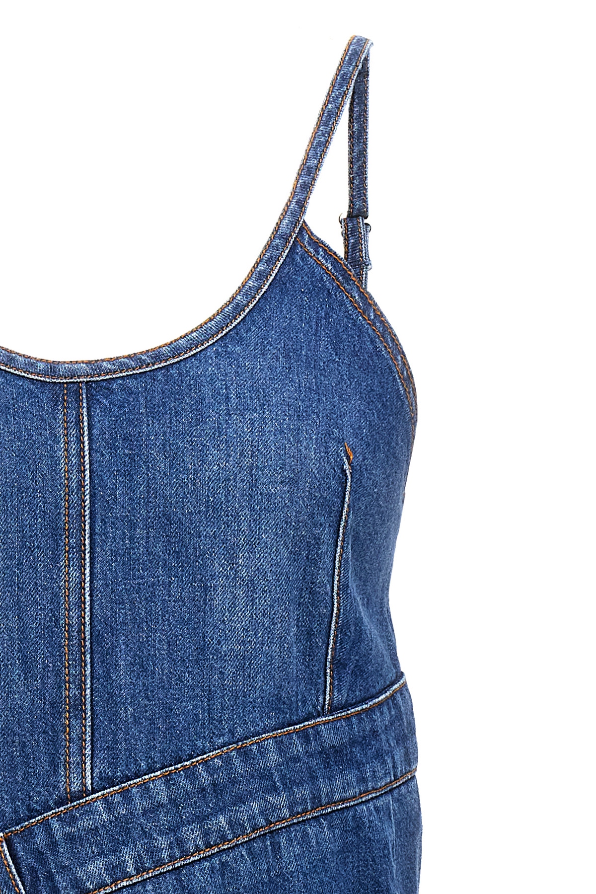 'Twisted Strappy' cotton denim dress with thin adjustable straps, side pocket, back zip closure.