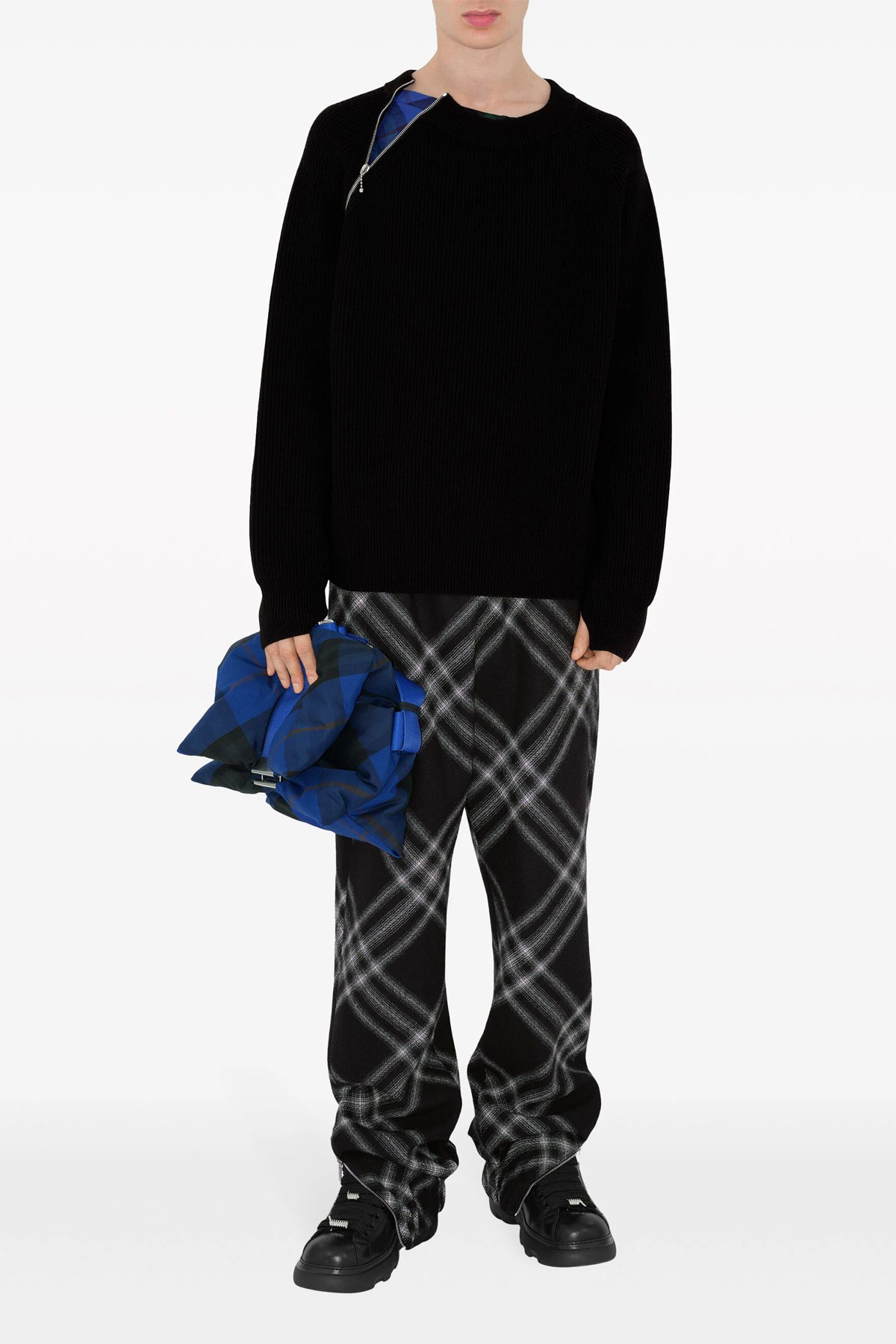 Ribbed wool sweater with oblique zip detail on the neck with contrasting lining lining, a crewneck.