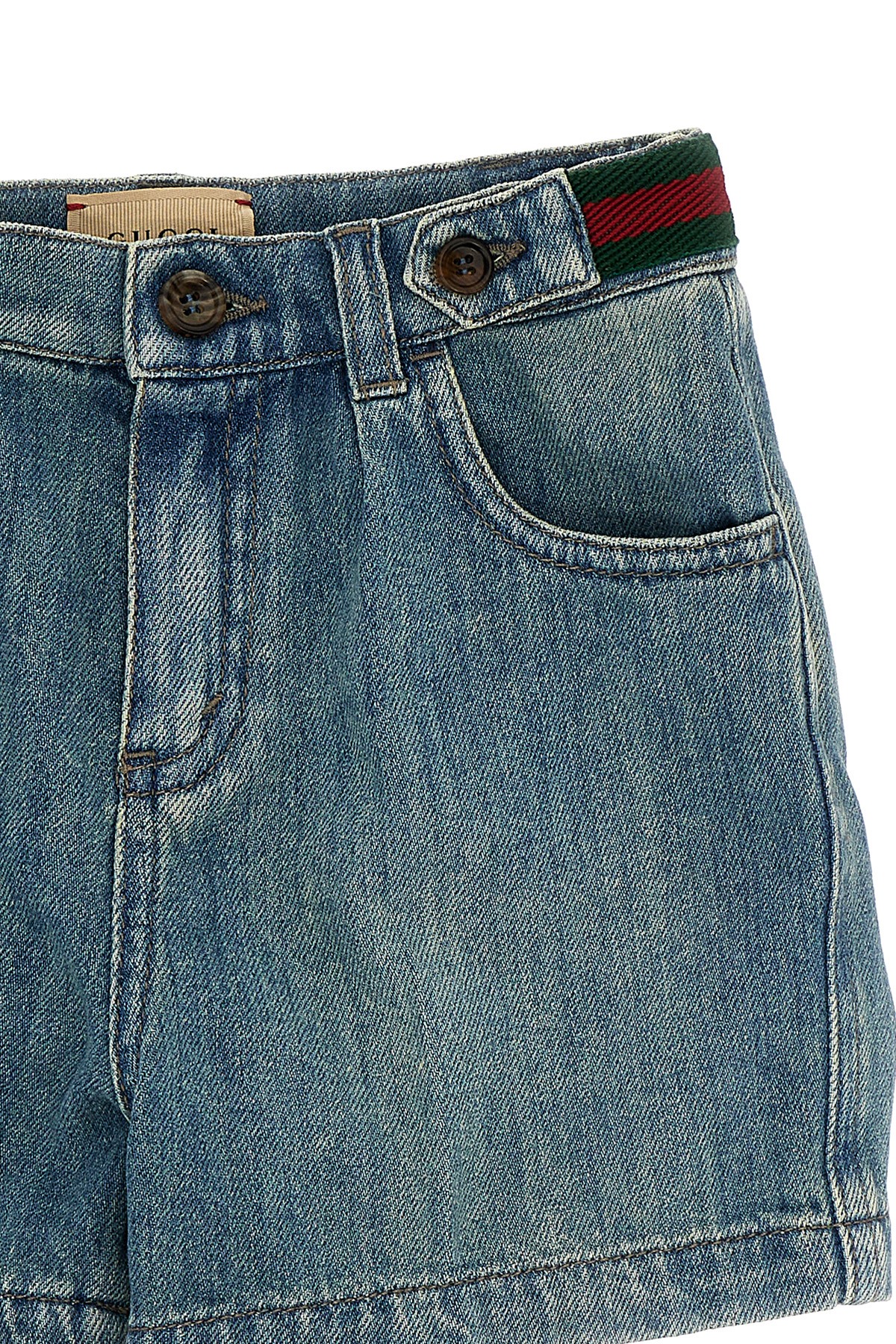 KIDS Denim bermuda shorts with web detail at the waist, zip and button closure.