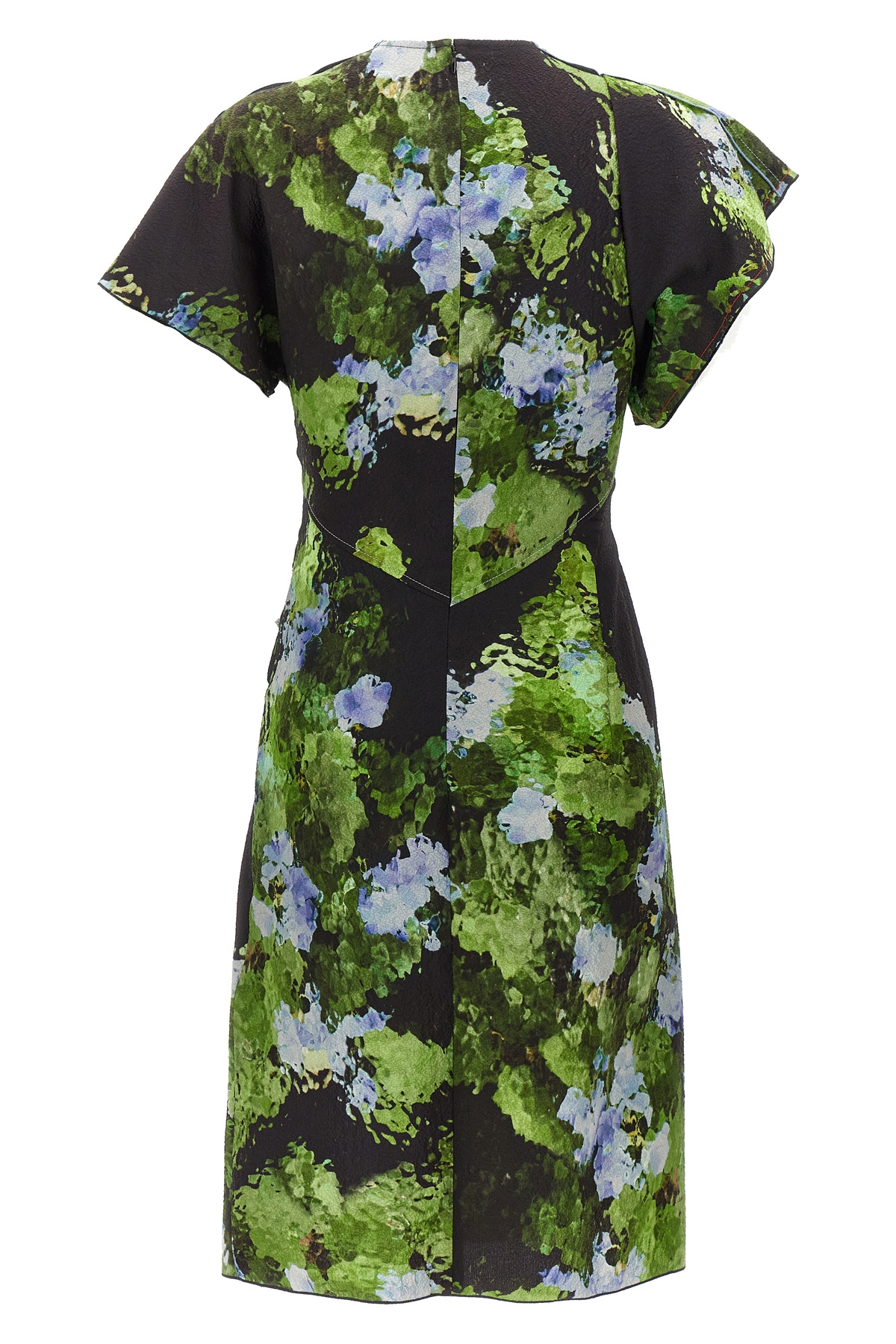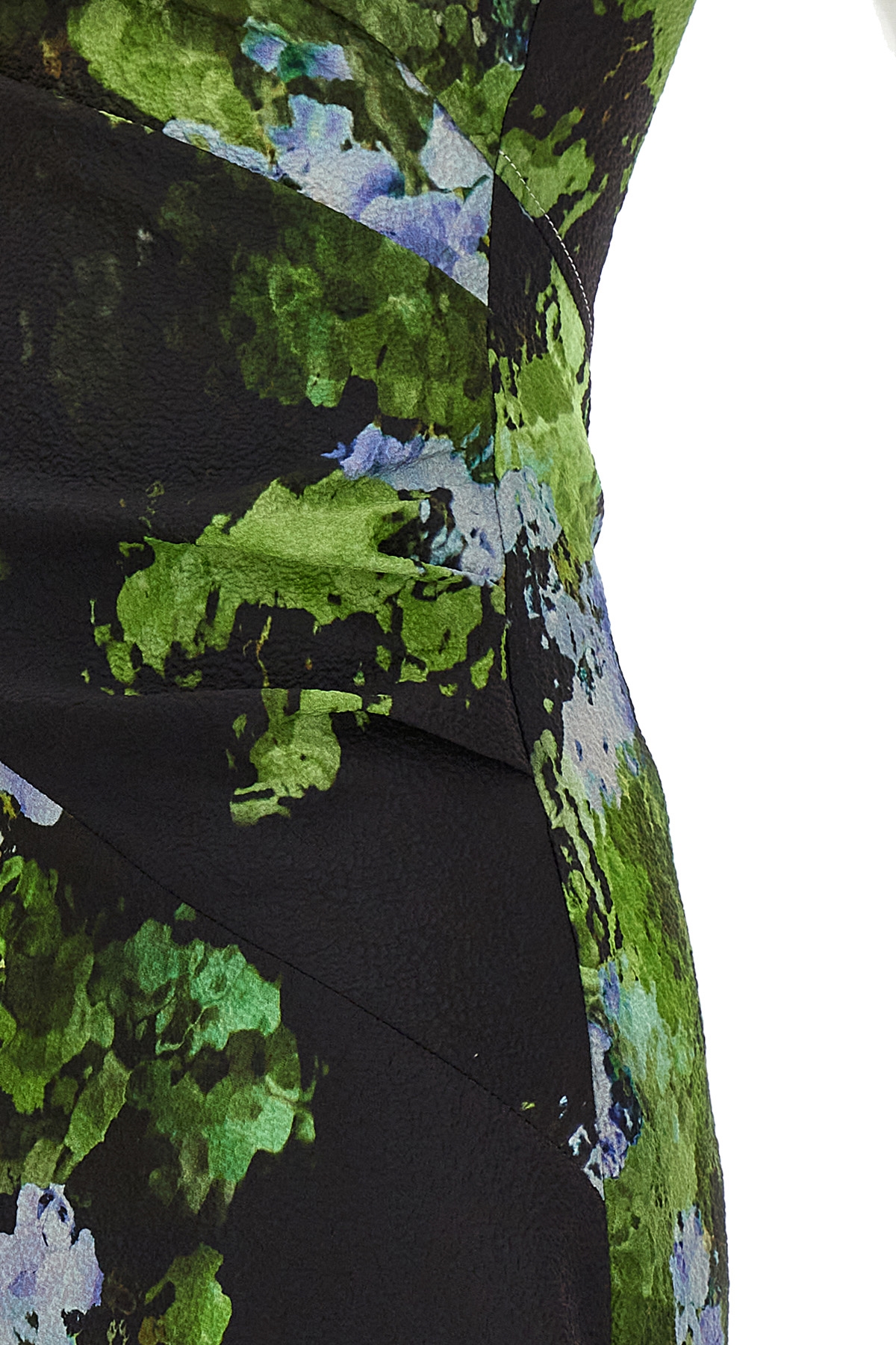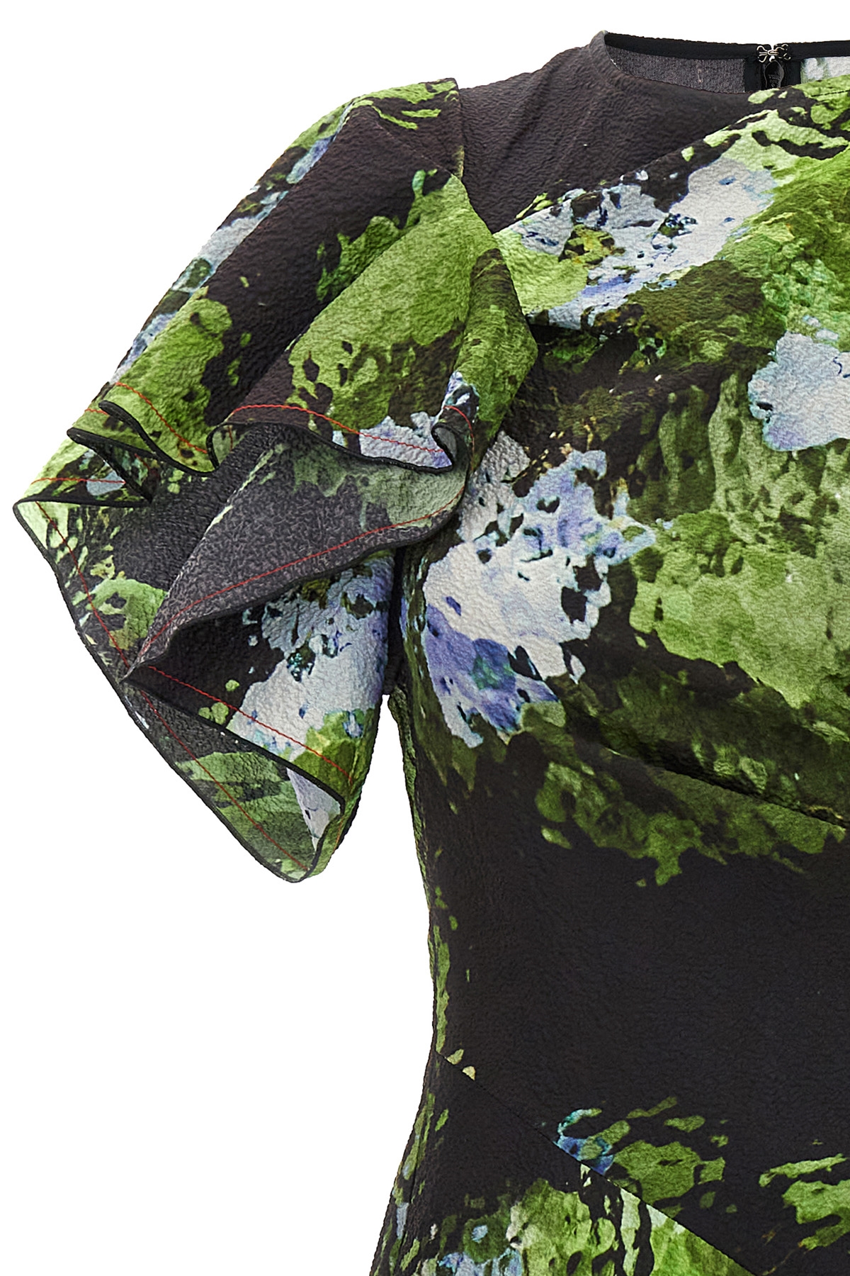 Mini dress in cotton blend with floral print and contrast stitching, cape type sleeves, crew neck.