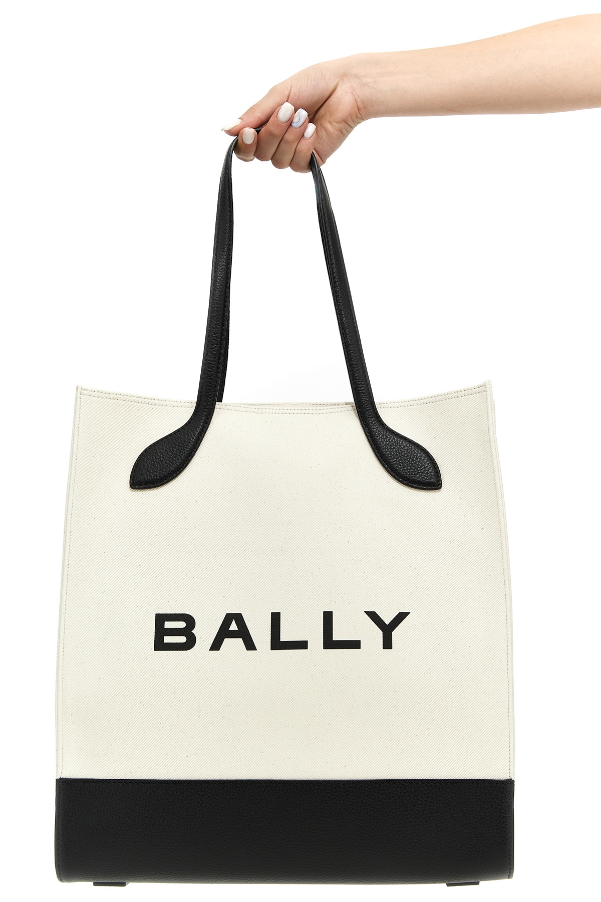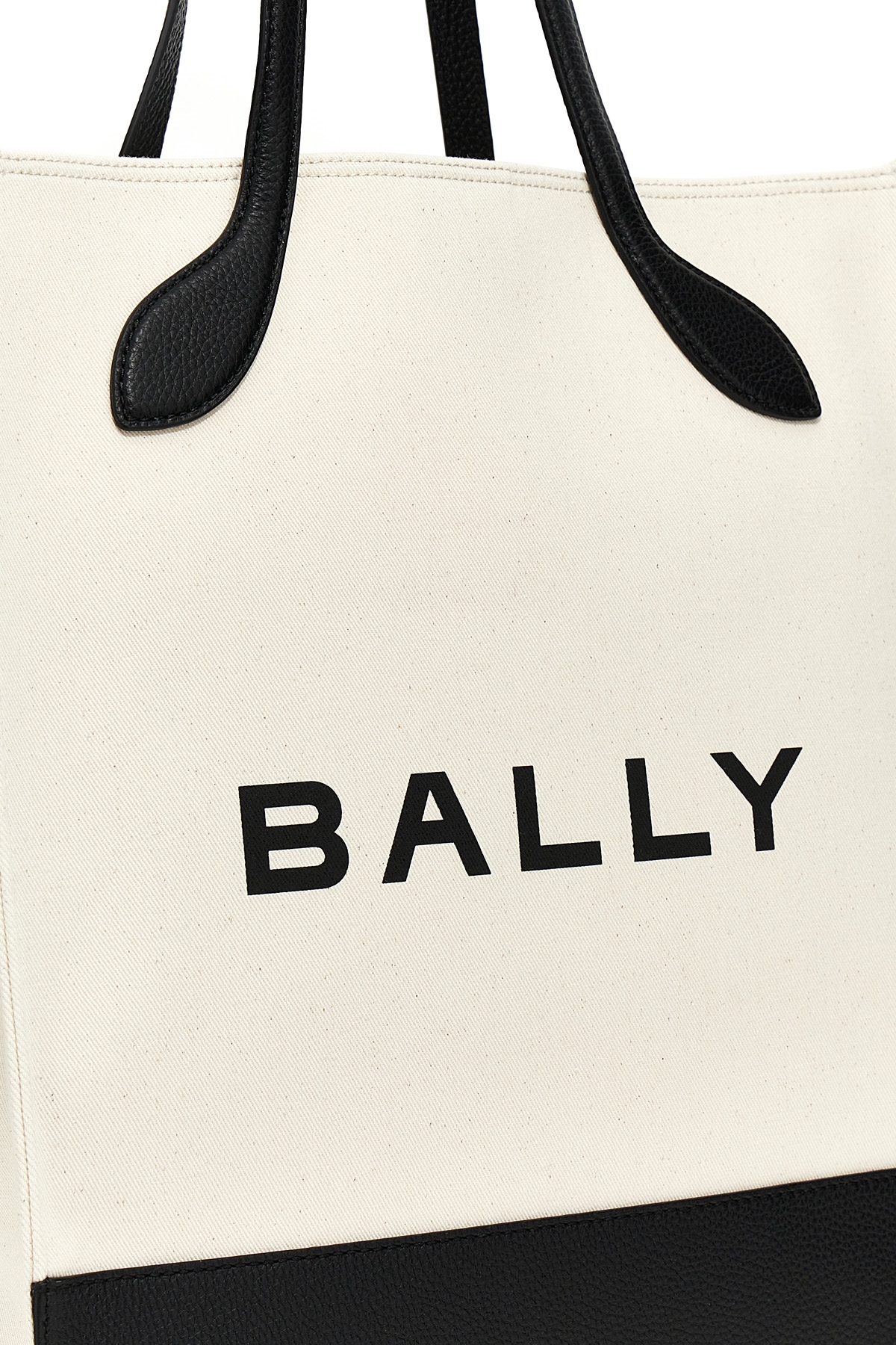 Bar Keep On' canvas shopping bag with front logo print, double leather handle, magnetic closure and leather details.