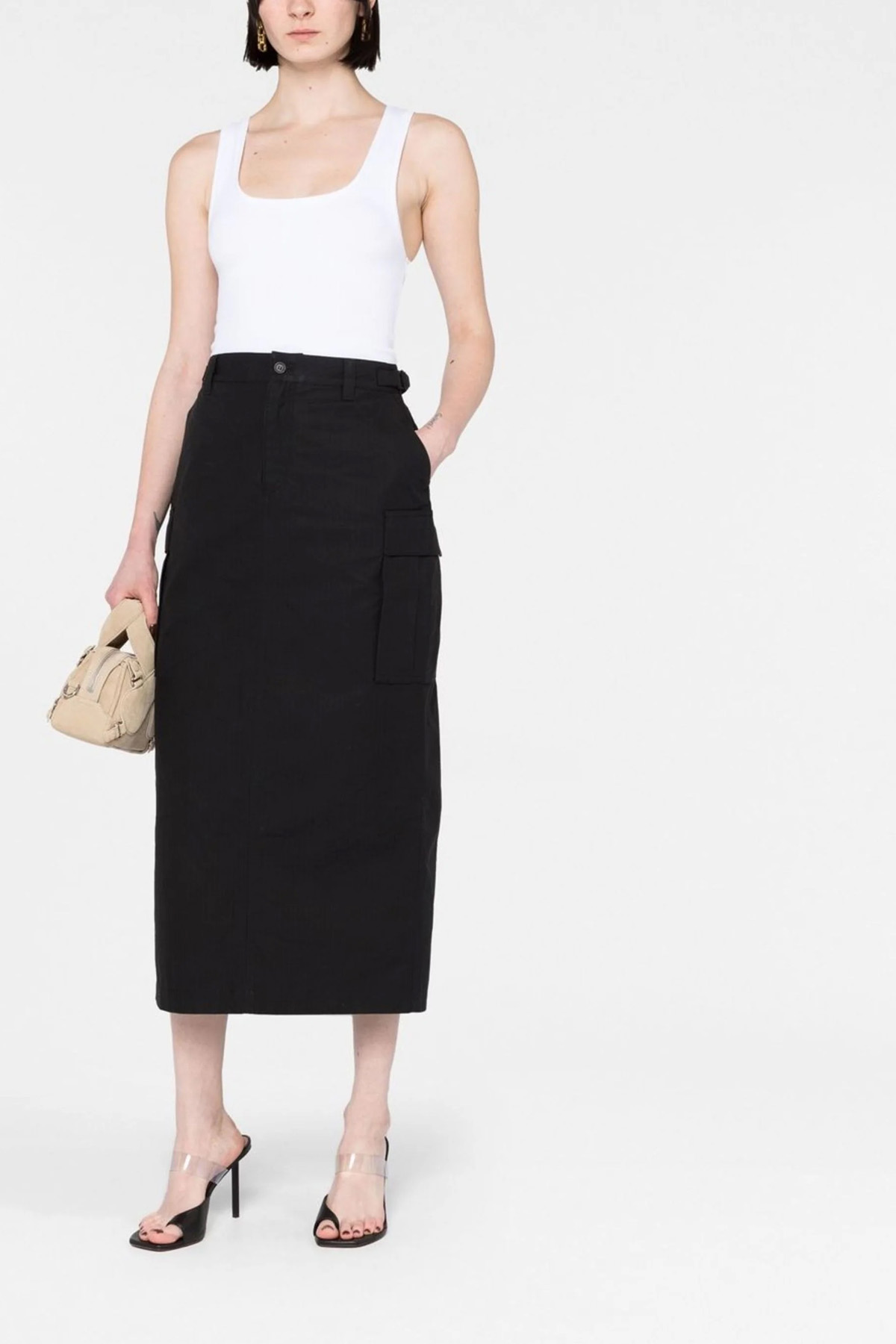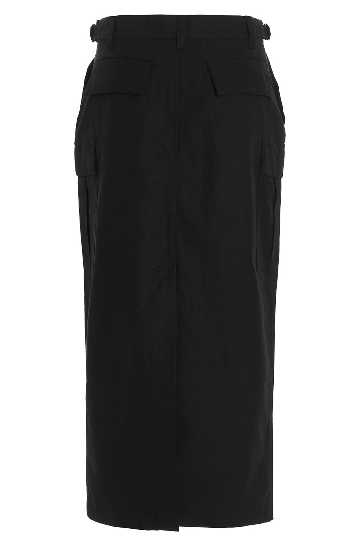 ‘Cargo' cotton midi skirt, with a zip and button closure, multi pockets, adjustable waist straps.
