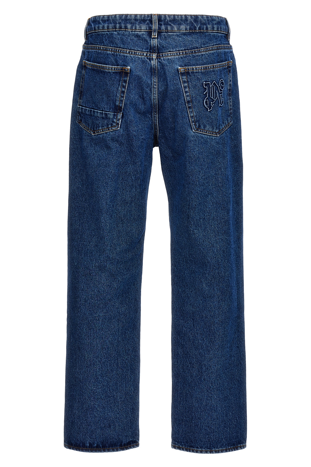 'LW Monogram' cotton denim jeans with button closure, five pockets, embossed logo on the back.