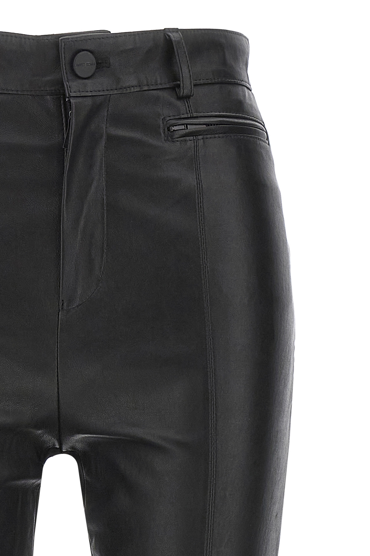 'Napa Leather' leggings in leather and stretch fabric, zip and button closure, pockets, zip detail on the bottom of the leg.