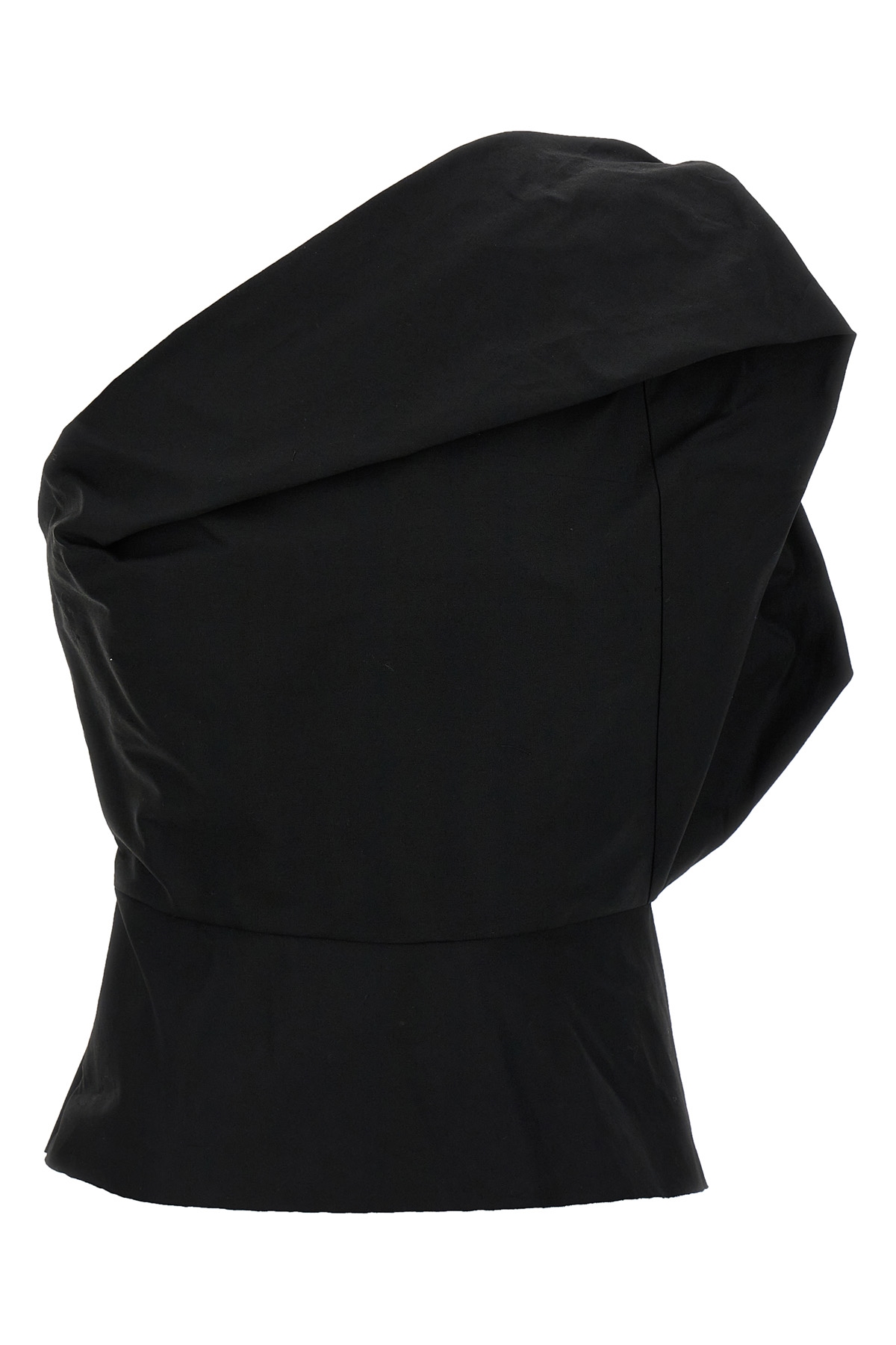 'Claudia bustier' bustier top in stretch cotton, draped effect, one shoulder with side zip closure.