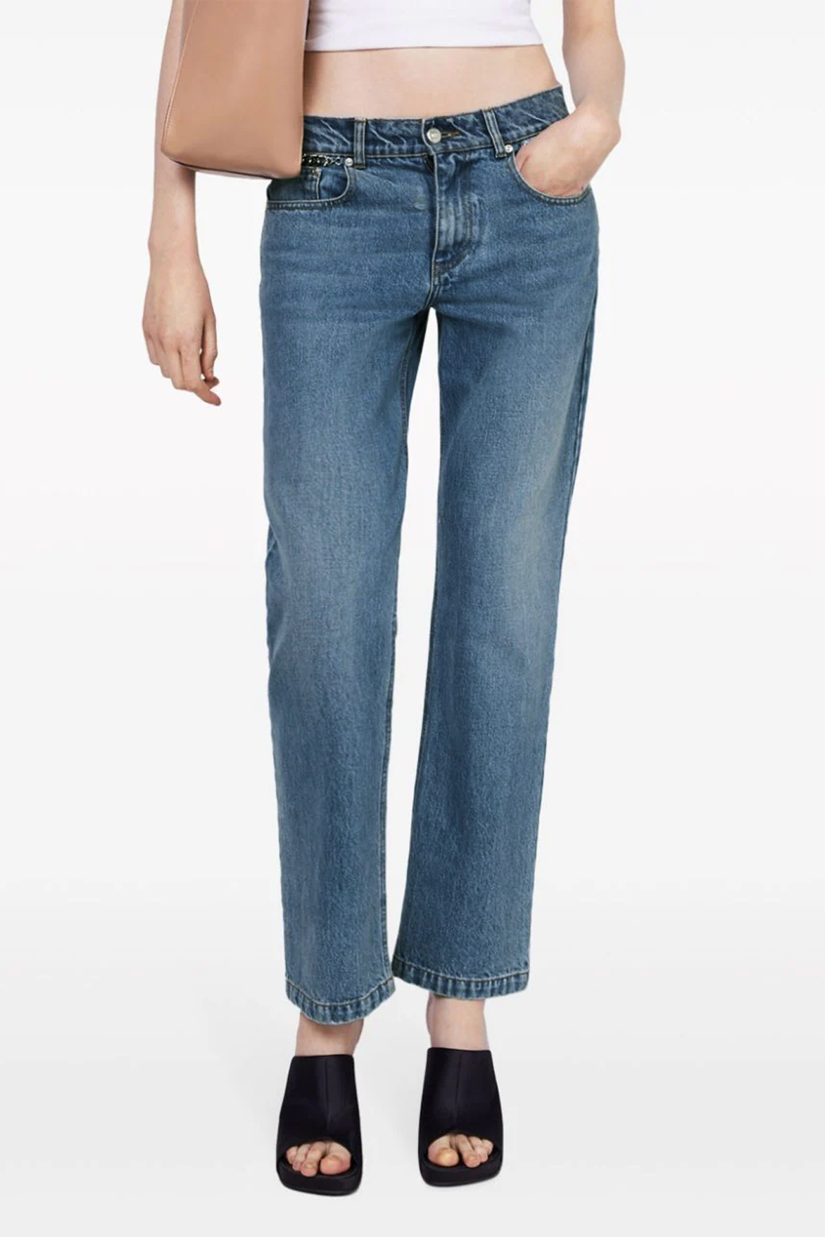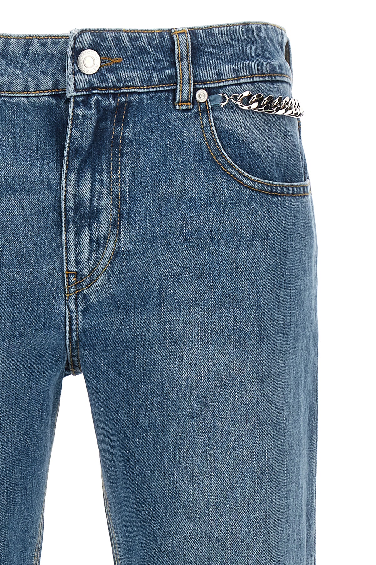 'Falabella' cotton denim jeans with chain detail, zip and button closure, five pockets, cropped leg. SUSTAINABLE: This product is made of organic cotton.