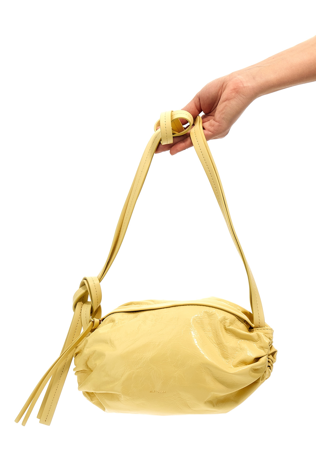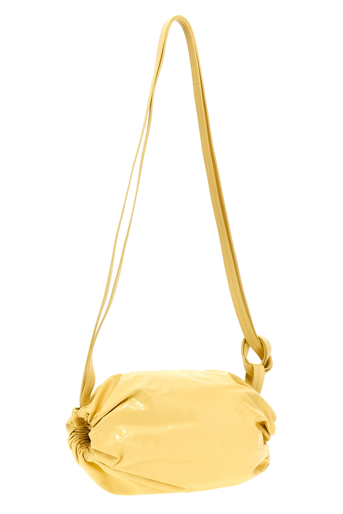'Cushion' small shoulder bag in wrinkled-effect shiny leather, zip closure, handle with adjustable knot.
