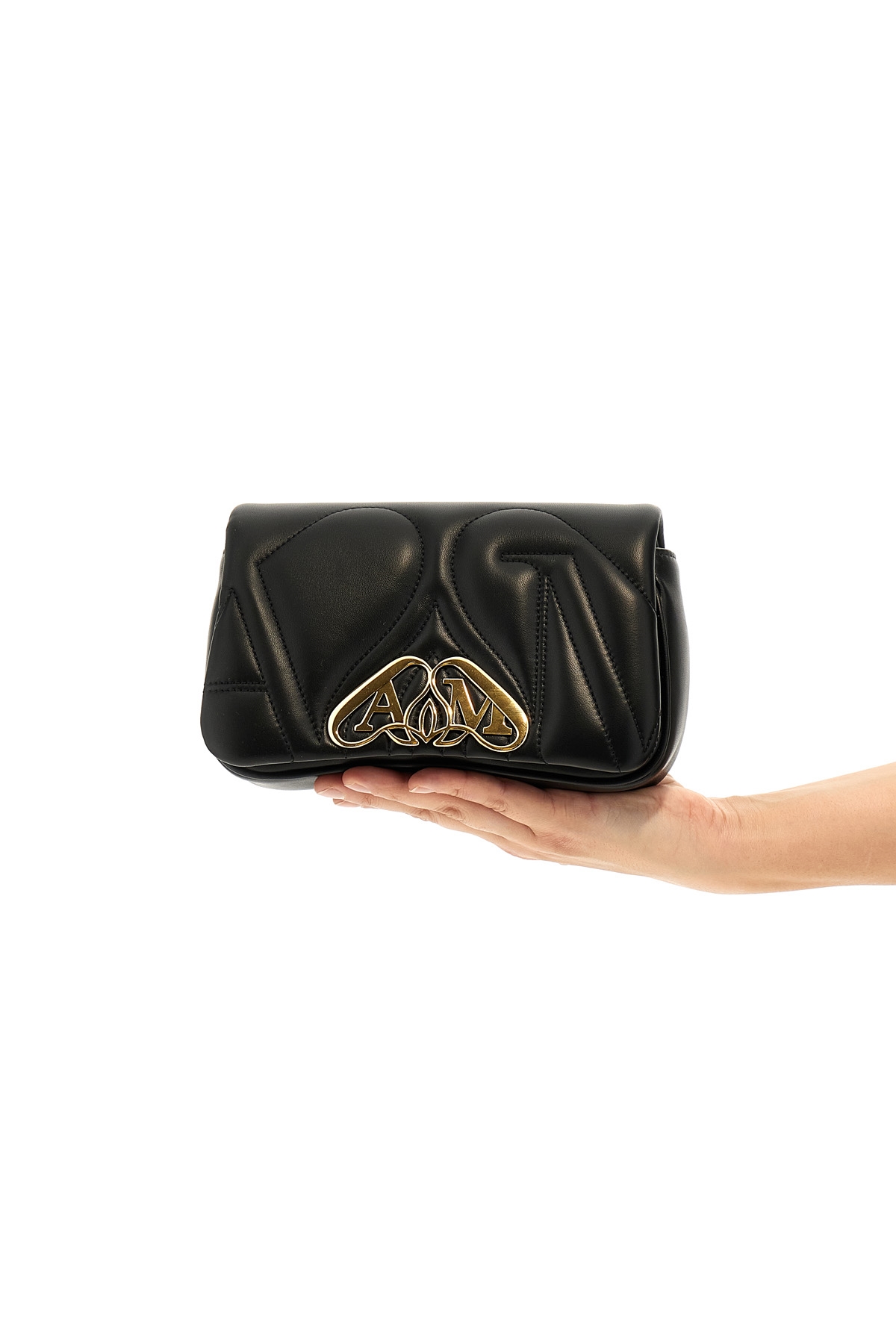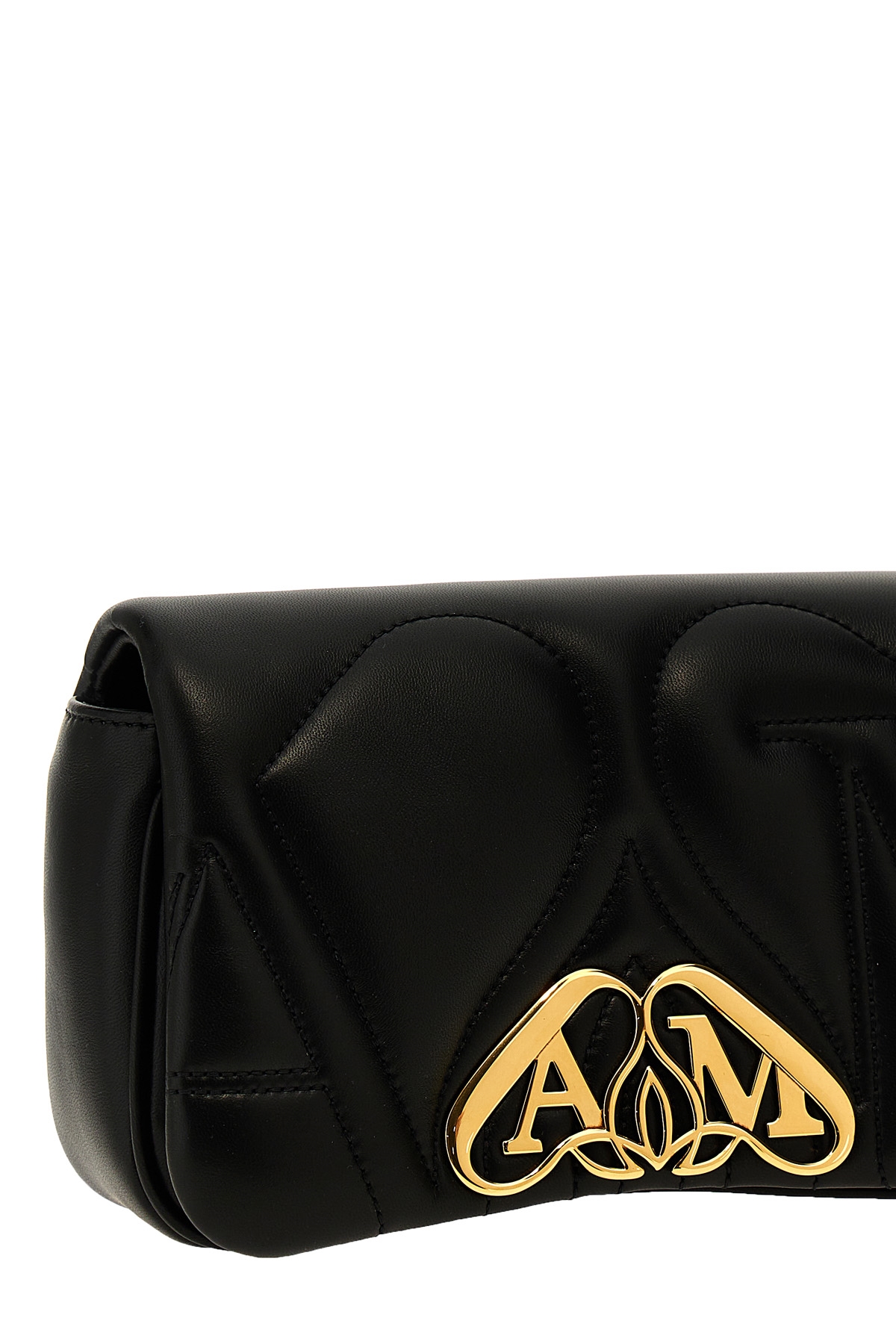 The mini seal' quilted padded leather crossbody bag with flap closure with metal logo and a chain shoulder strap.