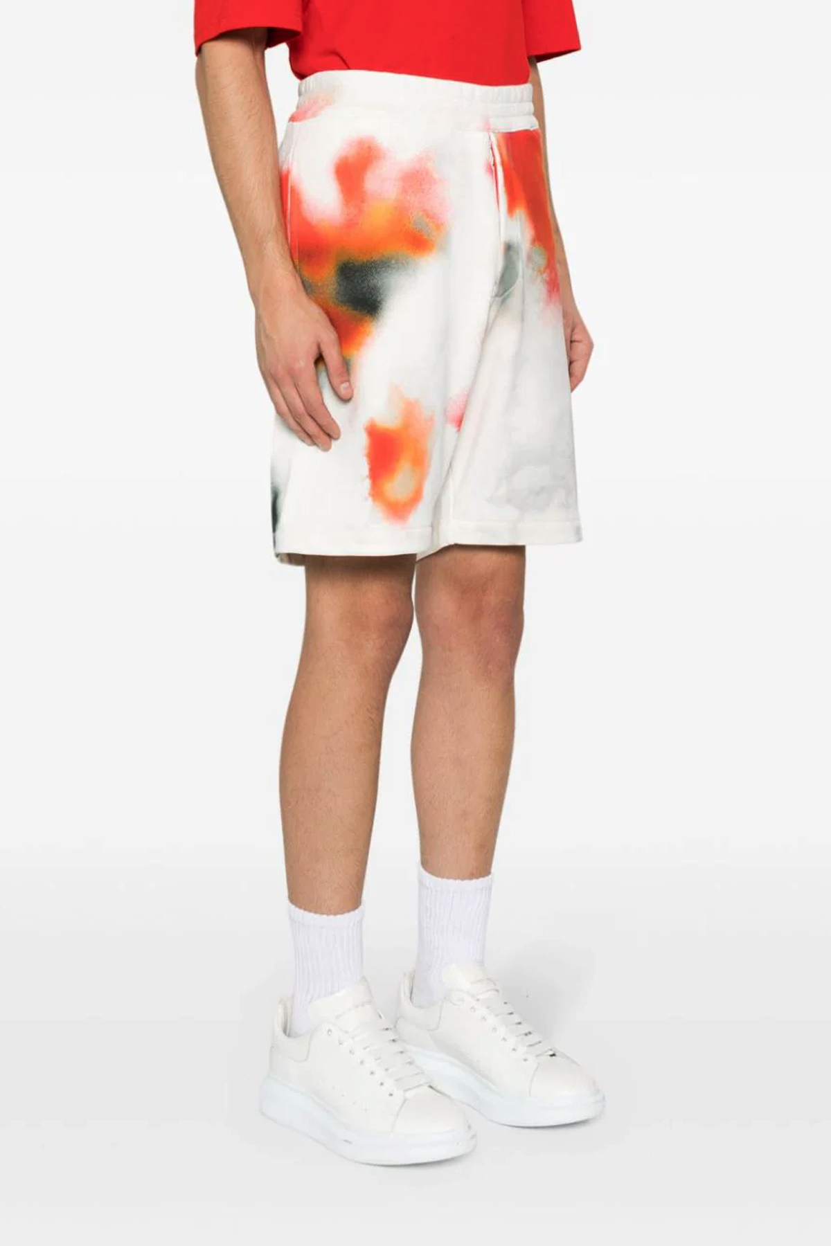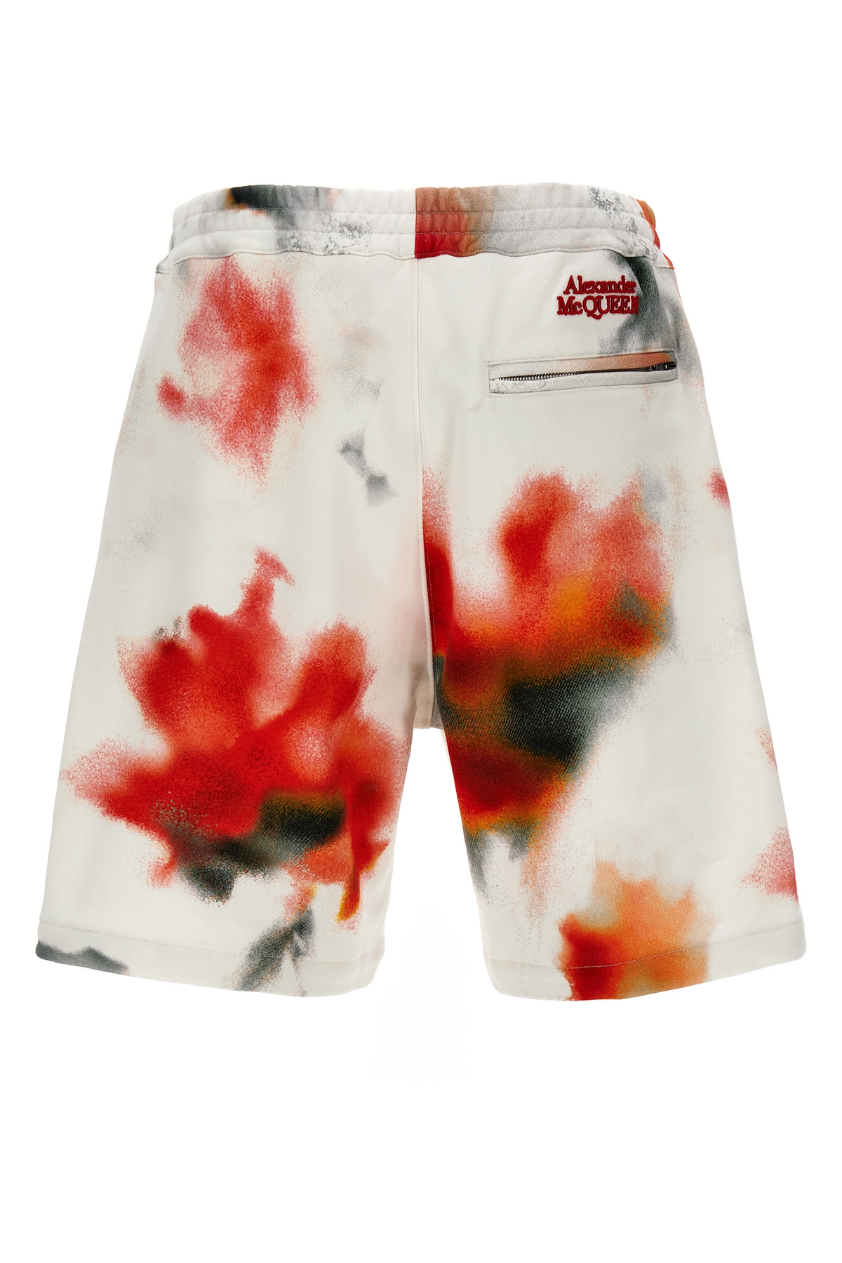 'Obscured Flower' cotton bermuda shorts with all-over print, drawstring elastic waistband, zip flap, pockets, back logo embroidery.