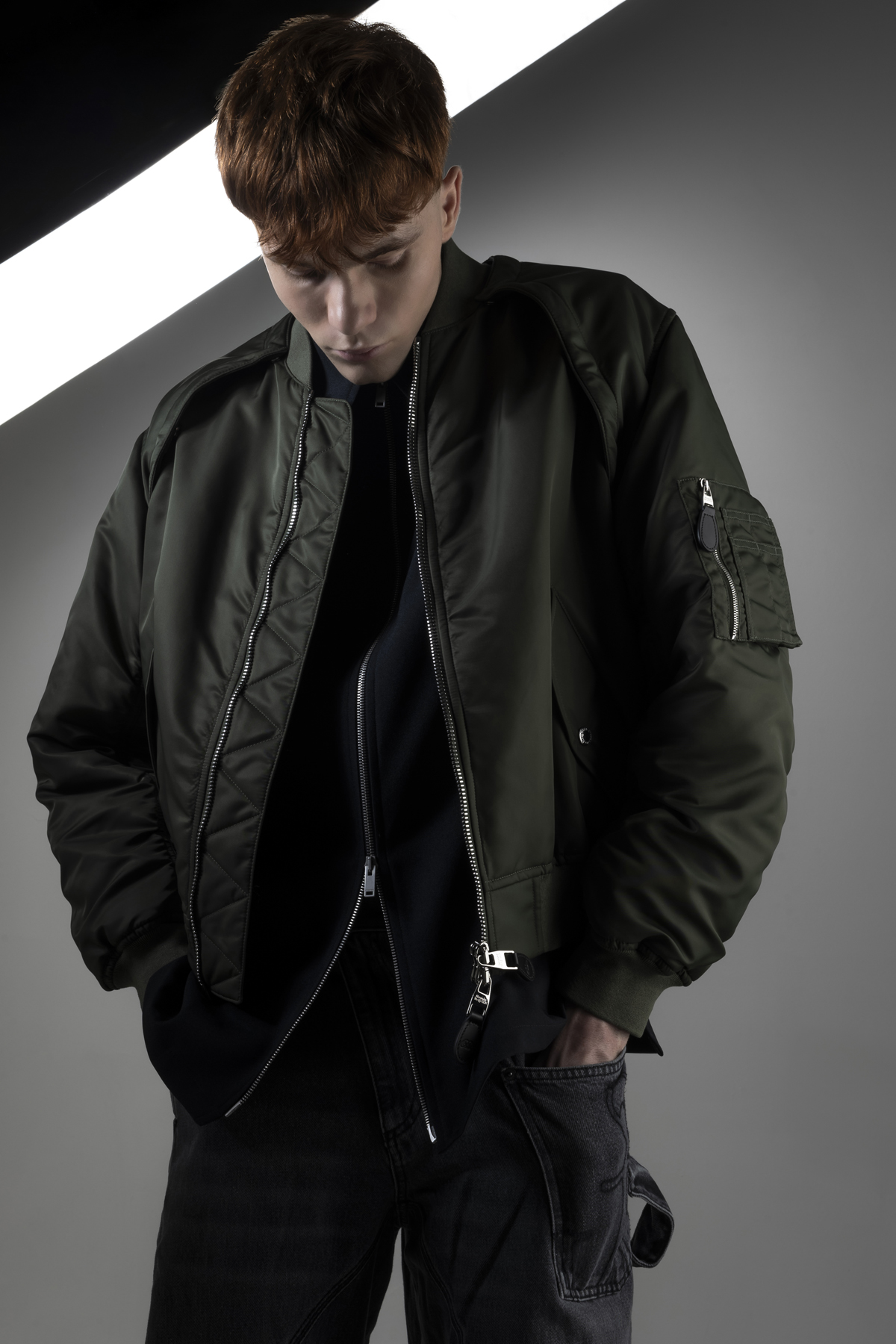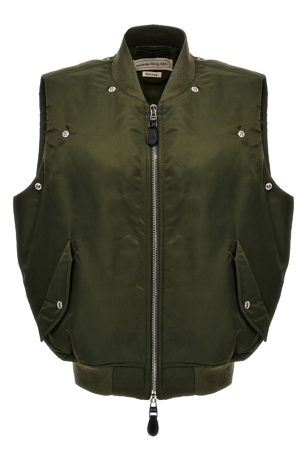 'Harness' padded nylon bomber jacket, removable long sleeves with knitted cuffs, zip closure, pockets.