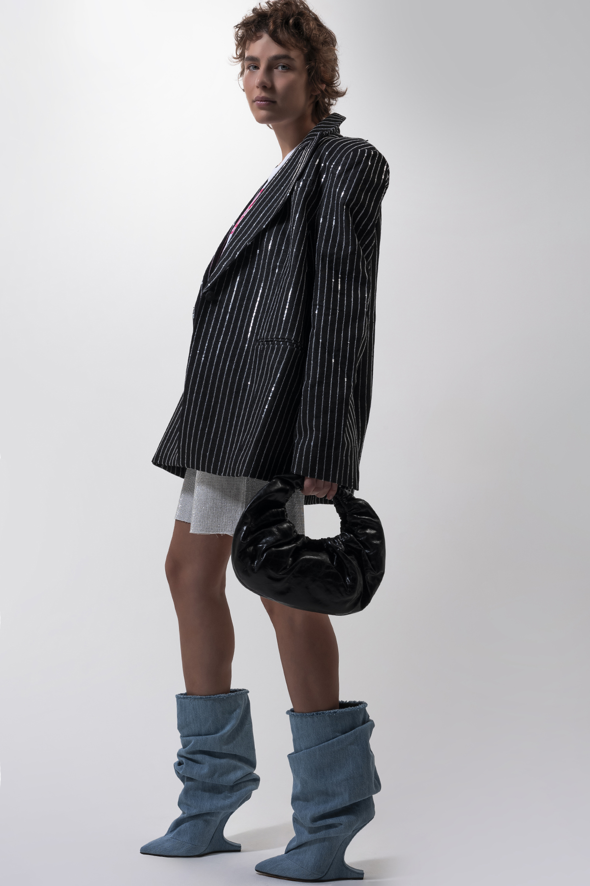 'Crescent Small' handbag in craquele patent leather with magnetic closure.