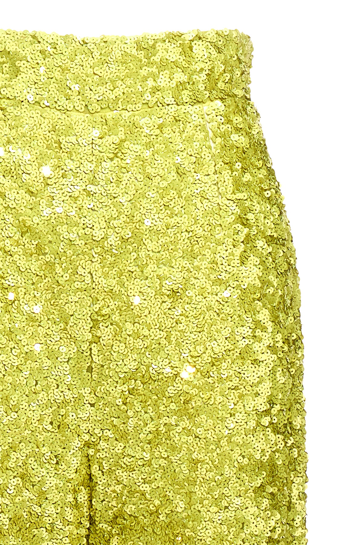 'Yot' pants with all-over sequin applique, back zip closure, flared leg.