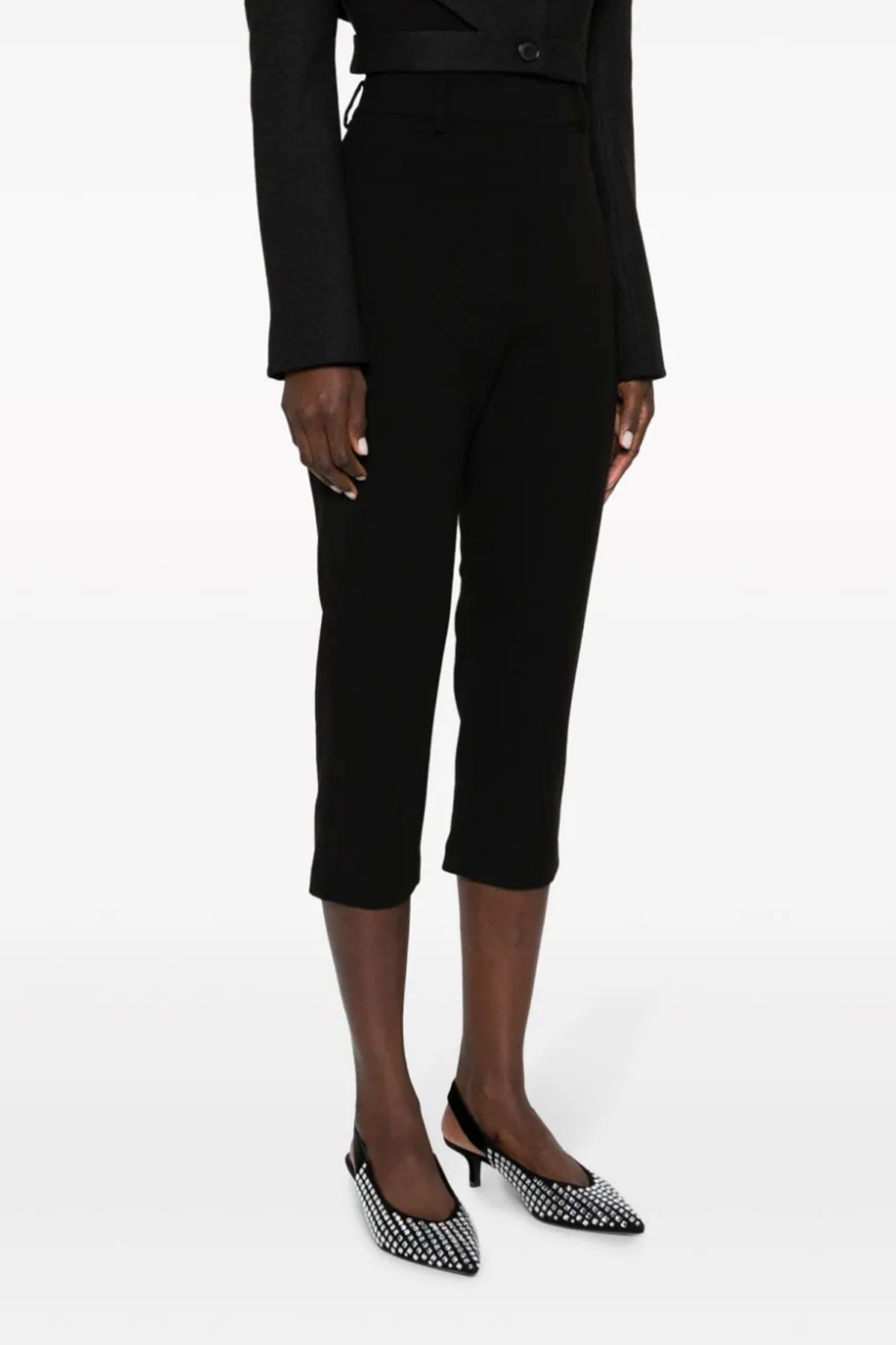 Capri '01' stretch wool pants with cropped leg, hook and button zip closure.