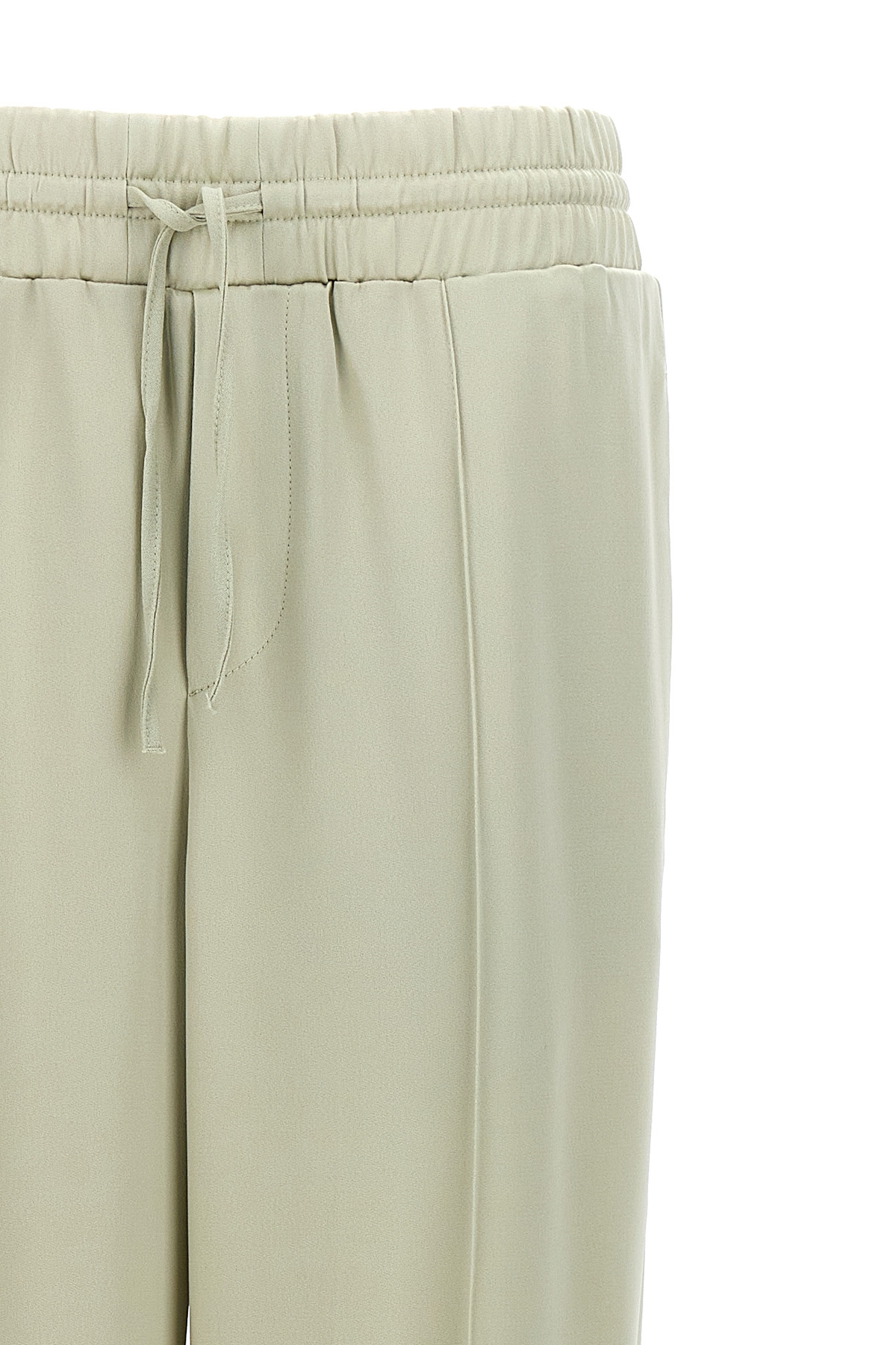 Fluid joggers in viscose blend with elastic waistband, pockets, elastic and adjustable drawstring on the leg bottom.