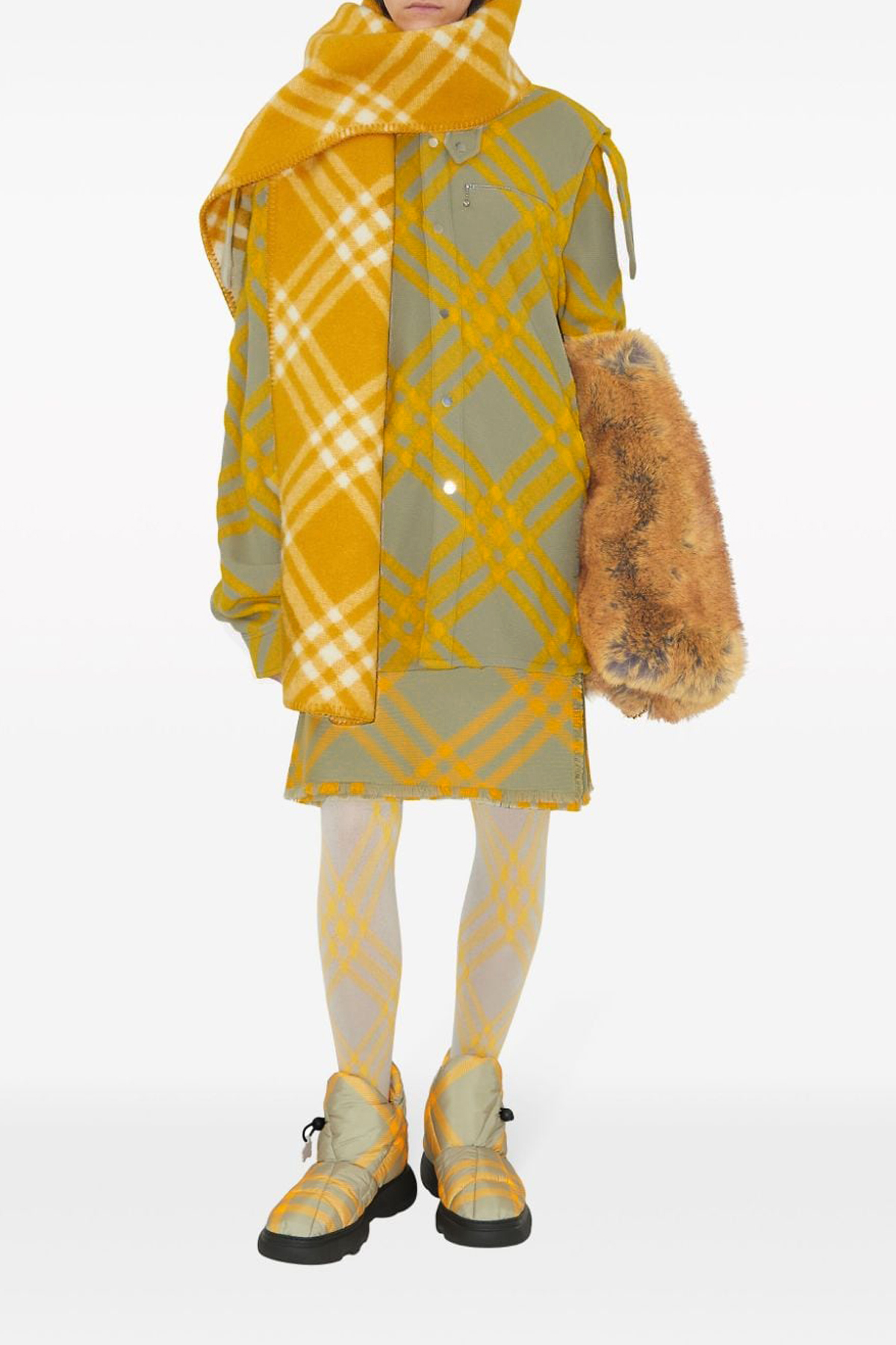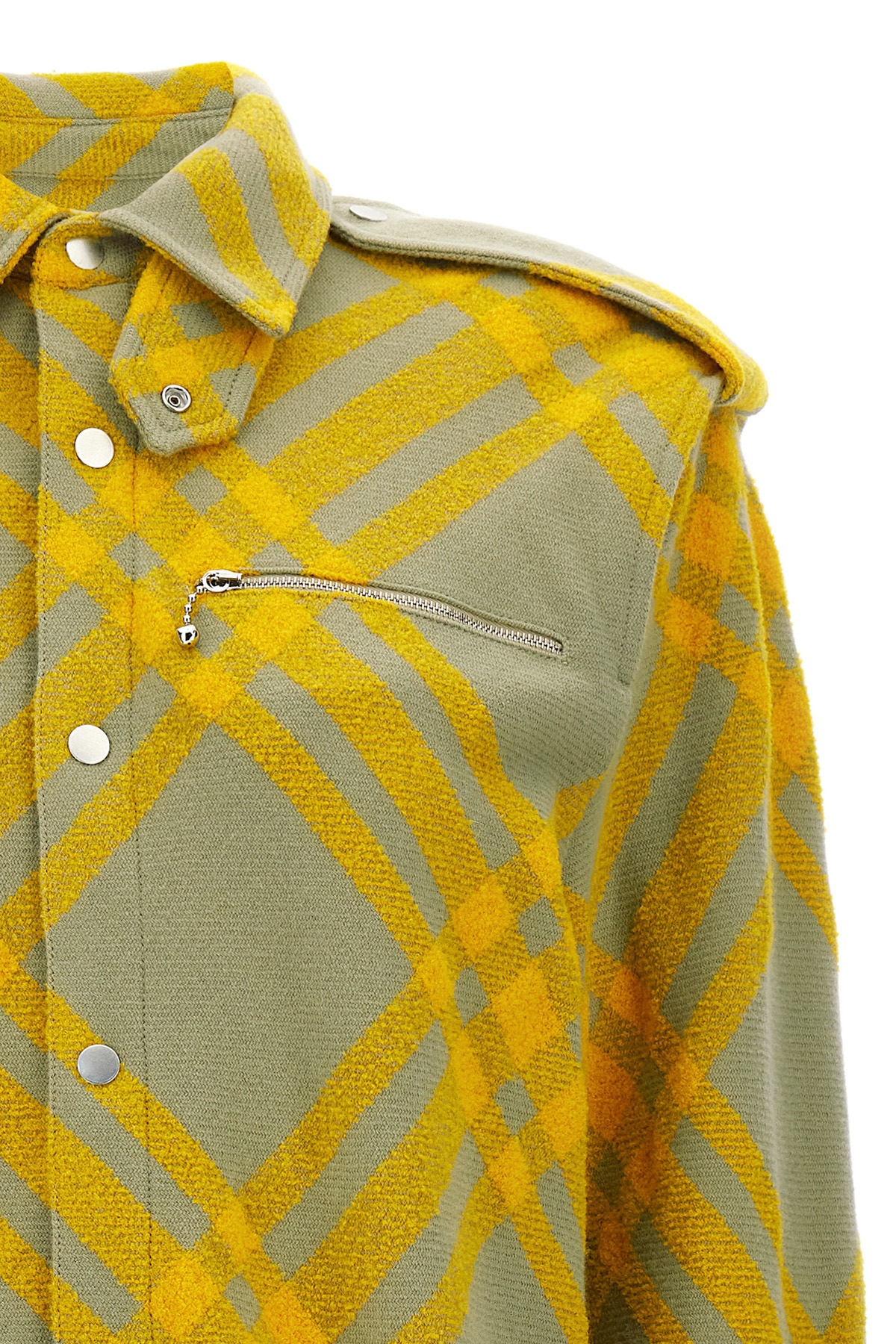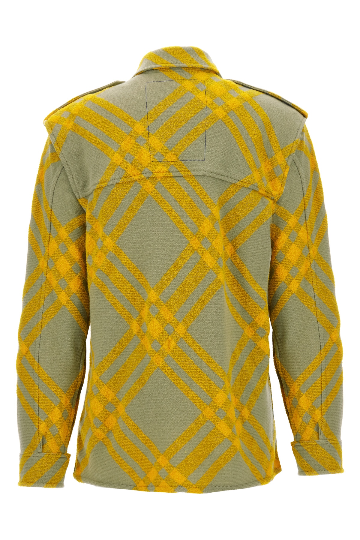 Check-print wool blend overshirt with button closure, long cuffed sleeves