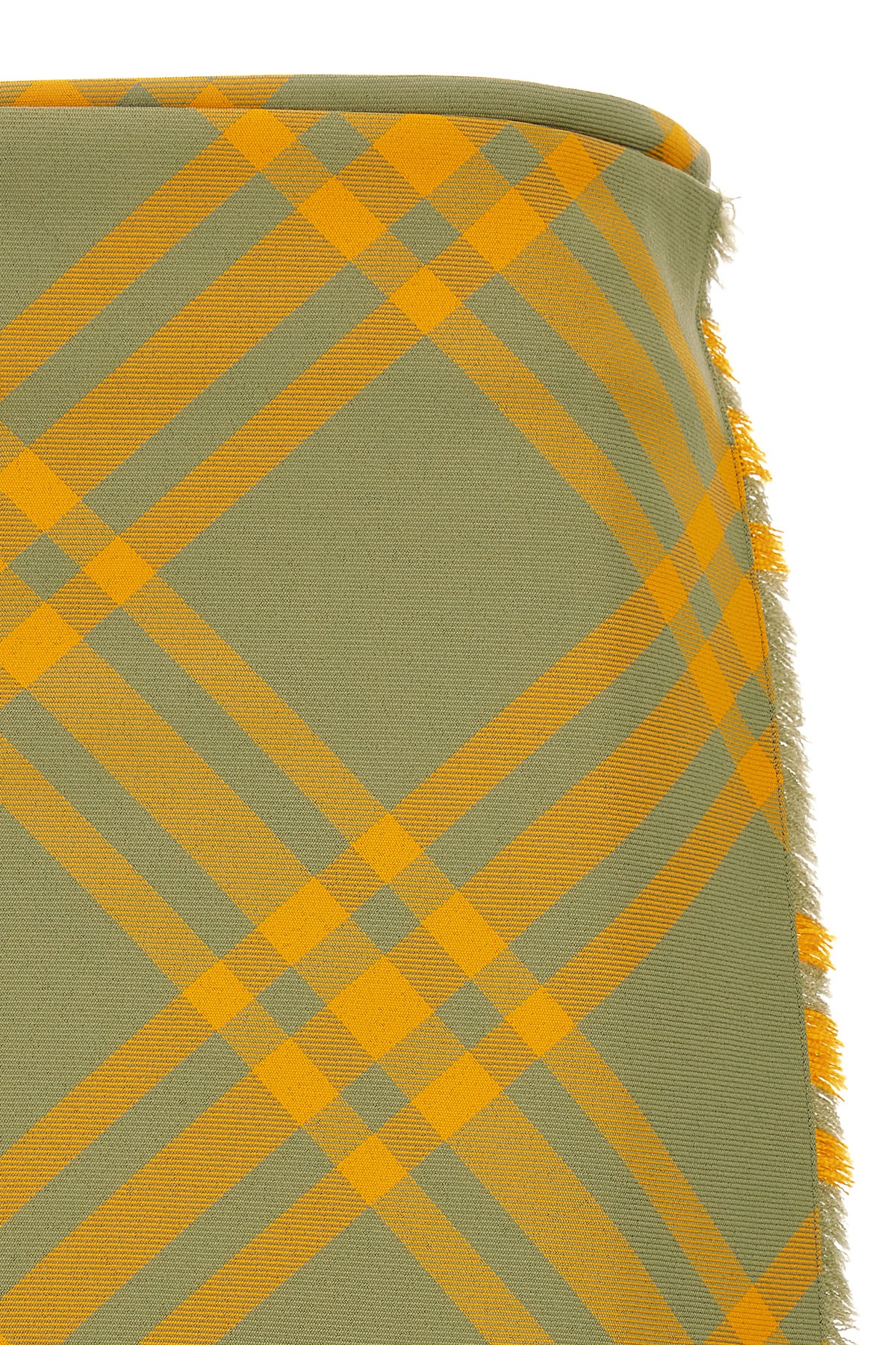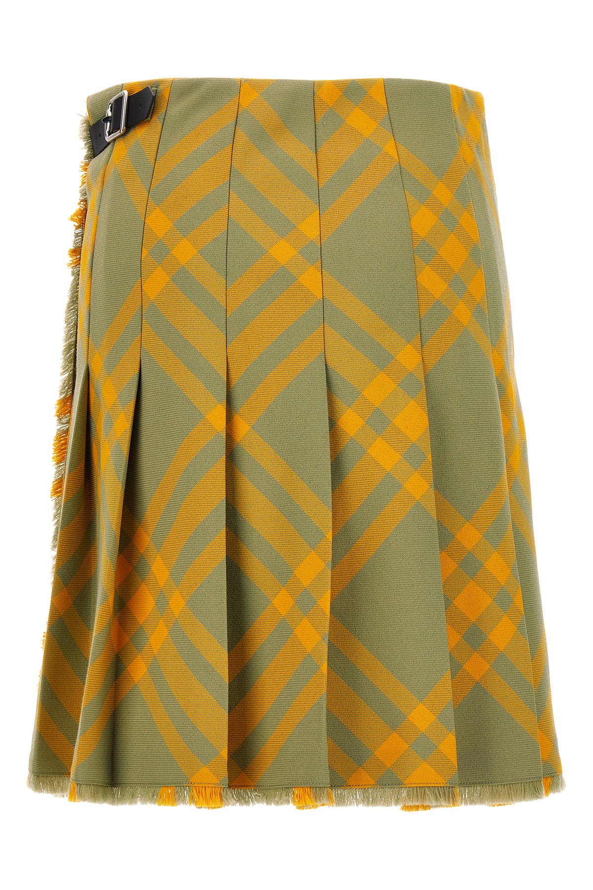 Kilt skirt in wool blend with check print, fringe detail, side button closure and buckle.