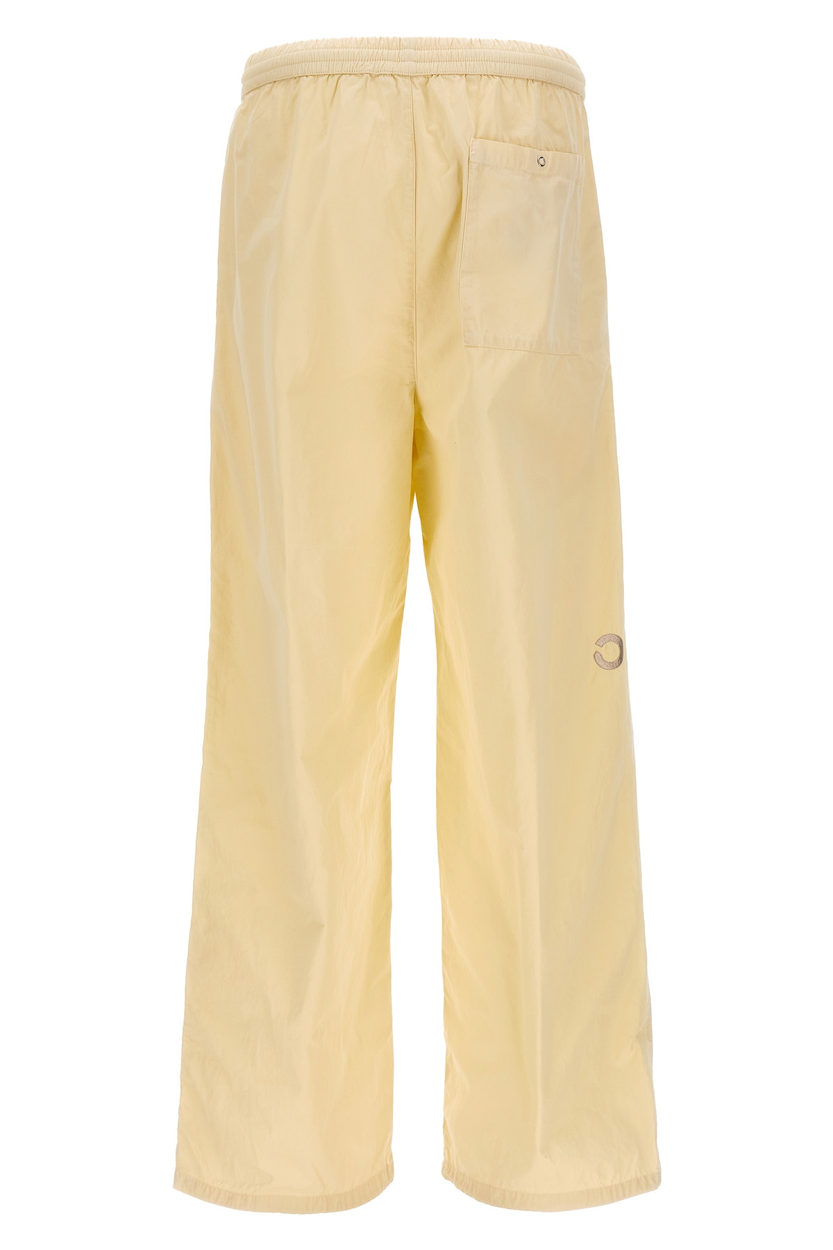 'Drawcord Overpant' cotton pants with drawstring elastic waistband, pockets, logo embroidery, adjustable drawstring at the bottom of the leg.
