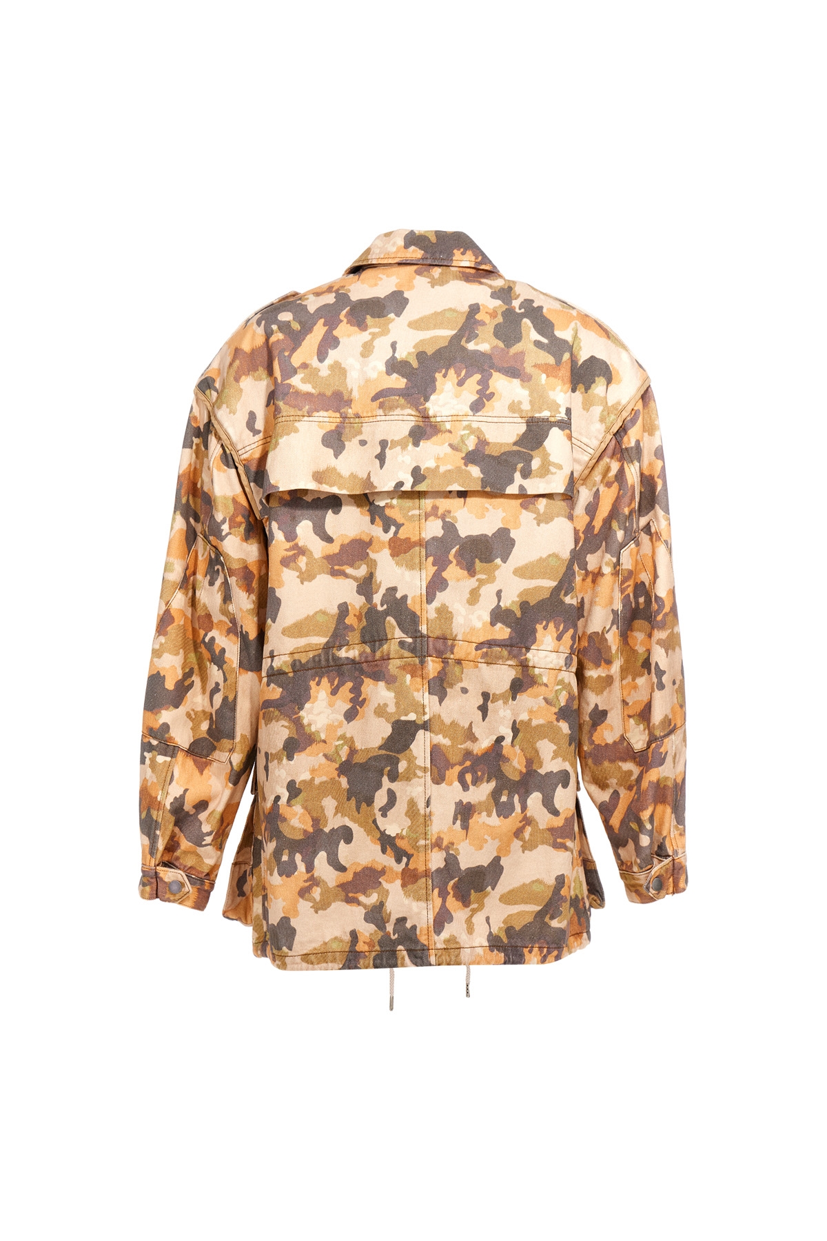 Elize' camouflage printed cotton jacket, featuring pockets, zip and button closure, adjustable drawstring at the waist and bottom hem, long sleeves.