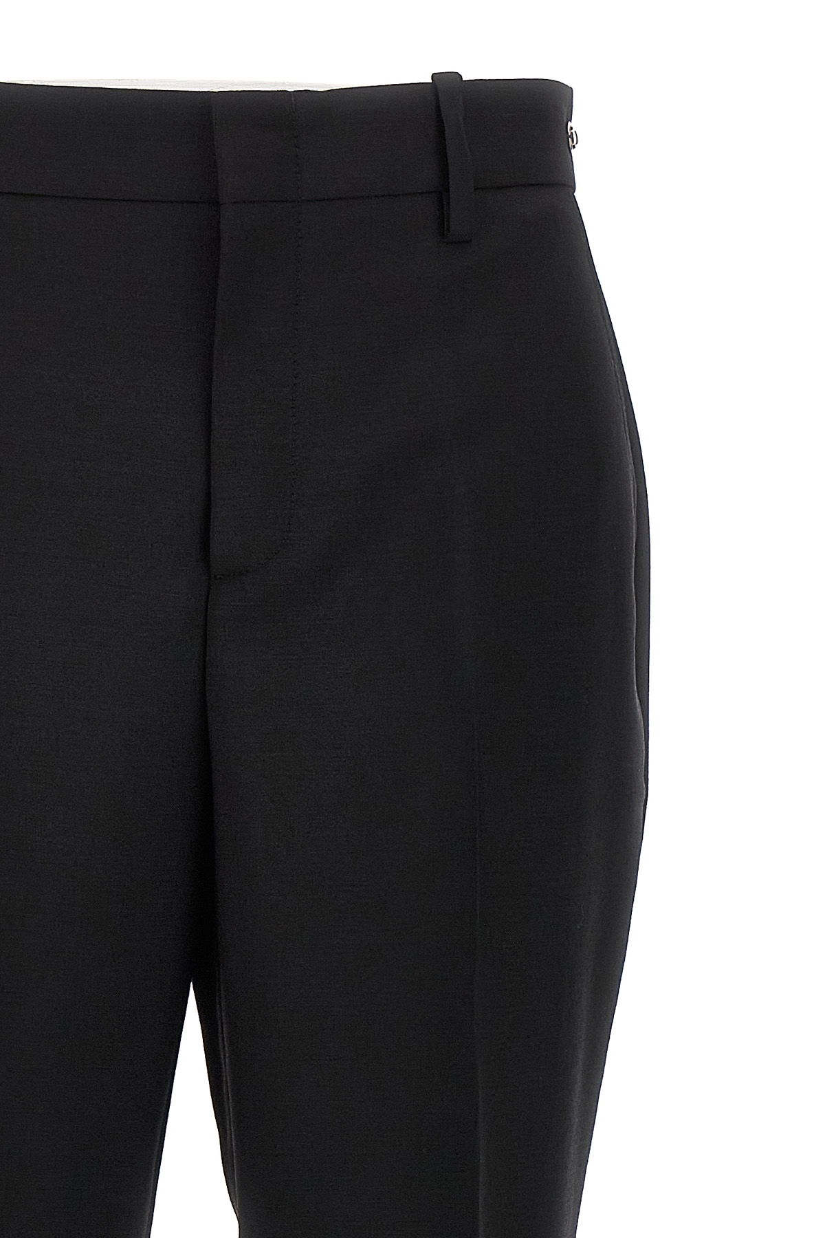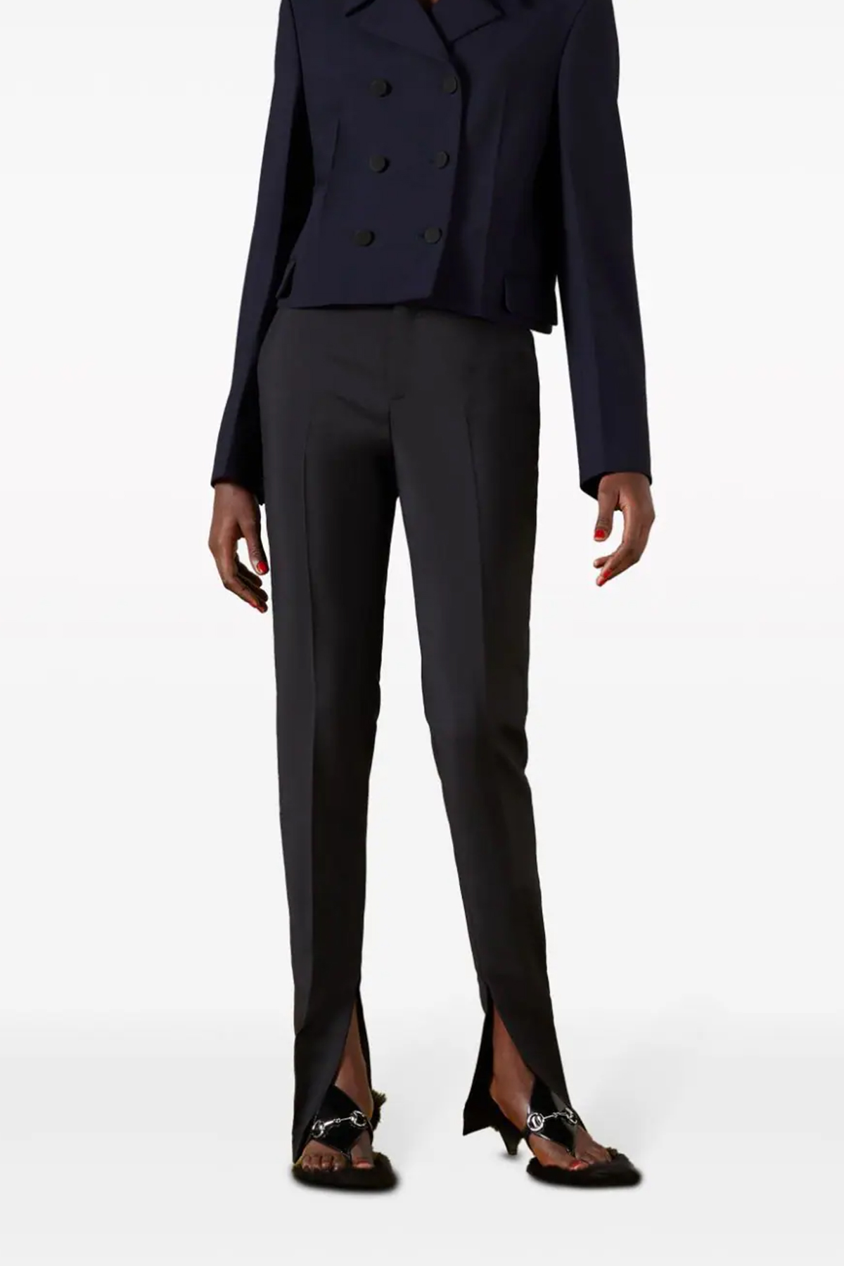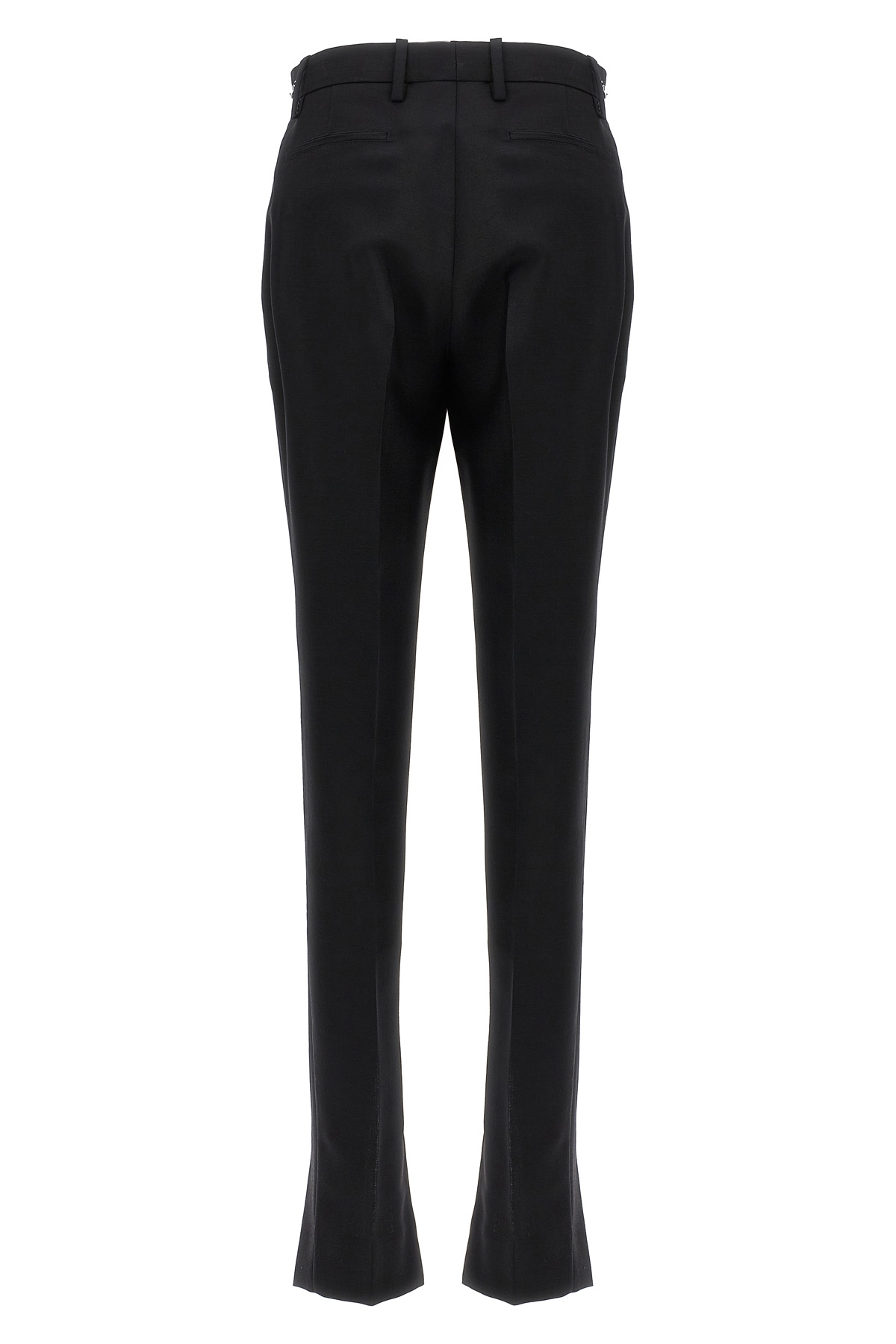 'Morsetto' wool pants with clamp detail at the waist, skinny legs with slits on the bottom.