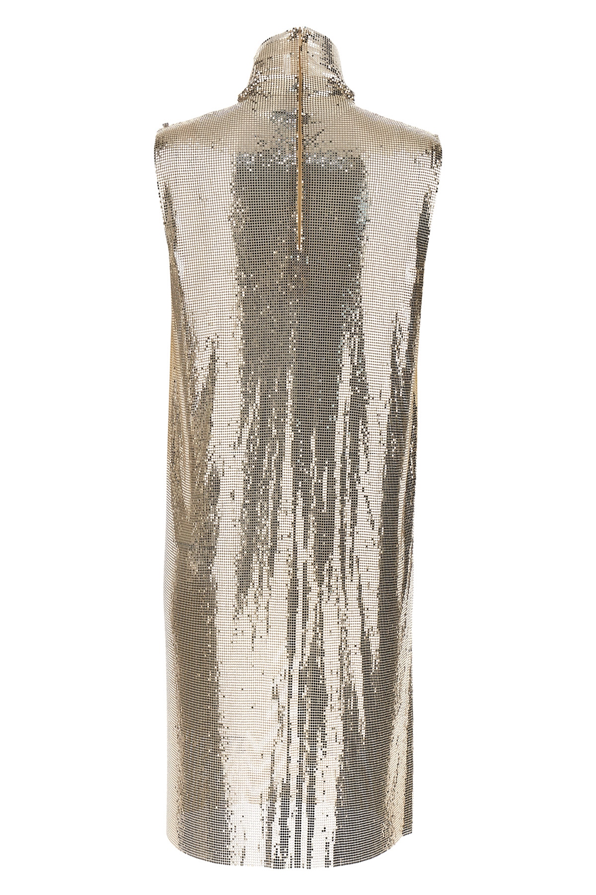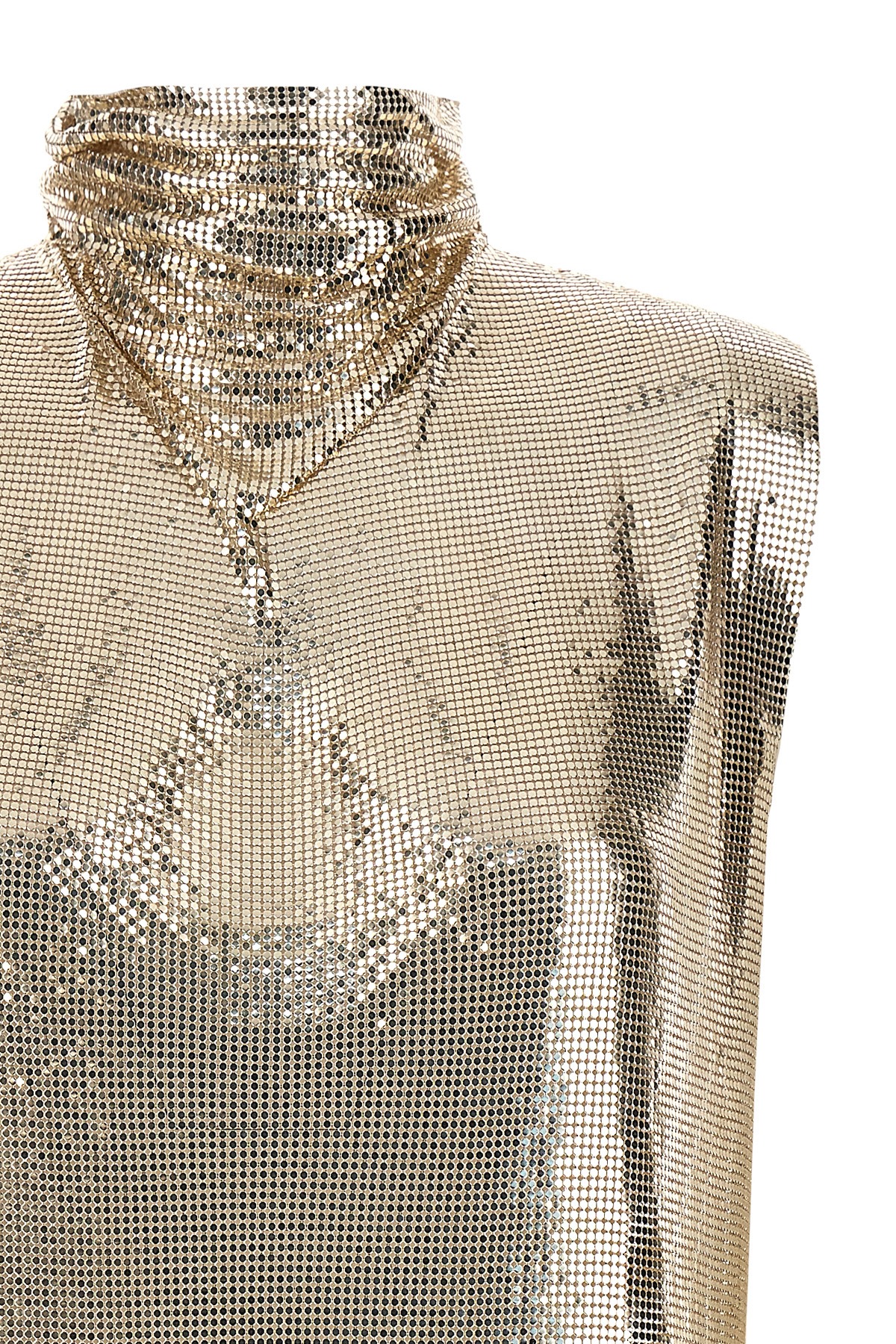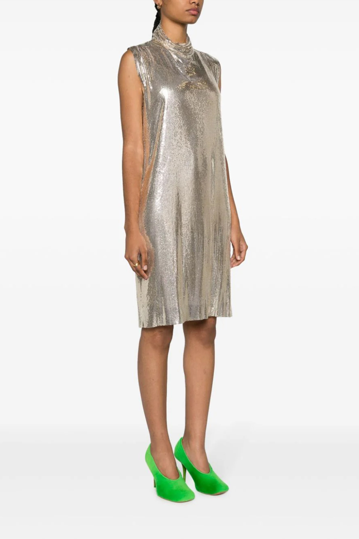 'Mantide' metallic mesh dress with high neck, sleeveless.