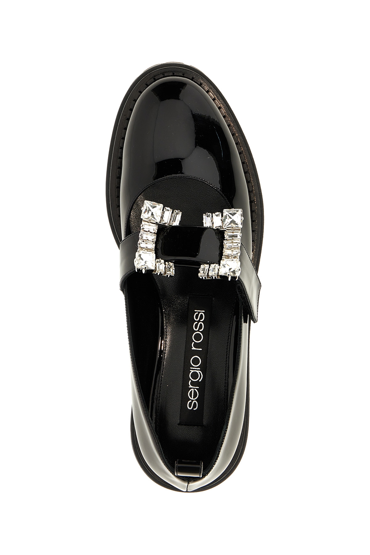'Prince' patent leather loafers with jewel buckle detail on the front, rubber sole.