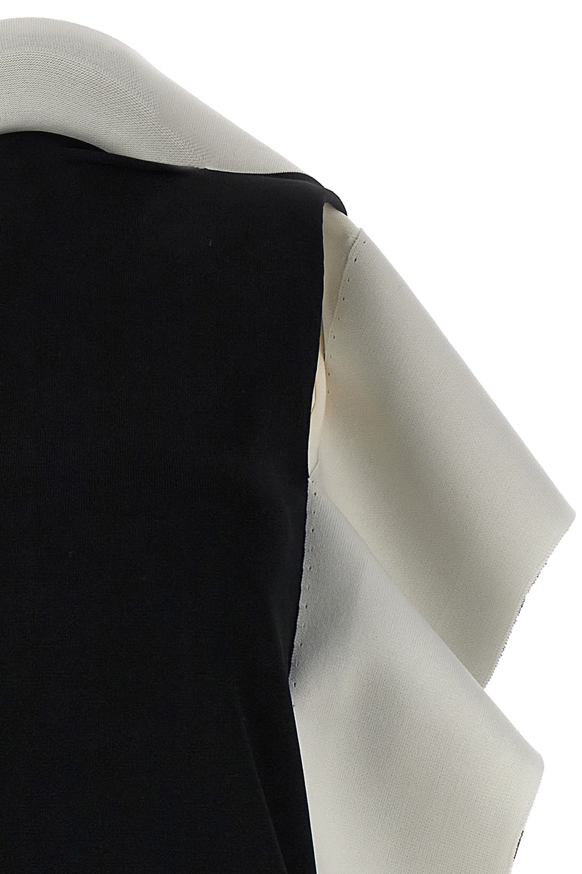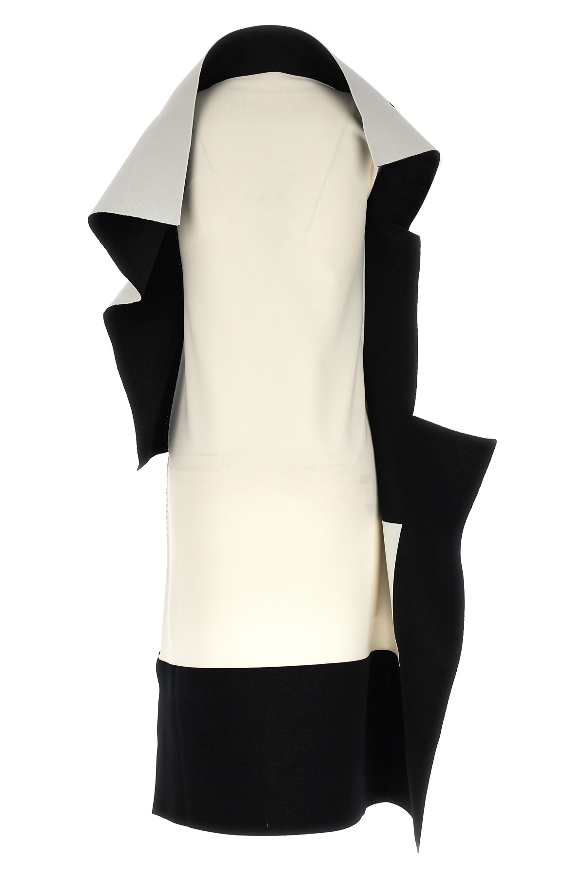 'Shaped Canvas' dress in deconstructed colorblock fabric.