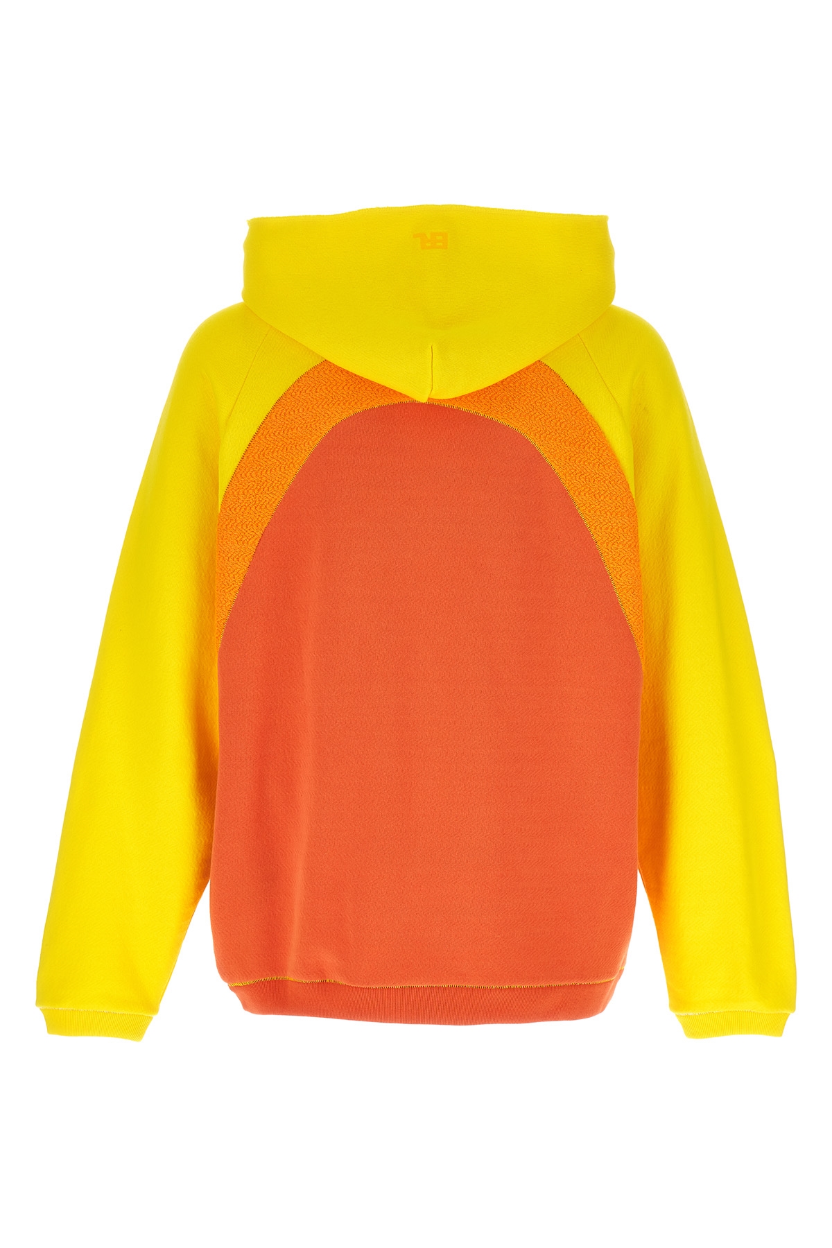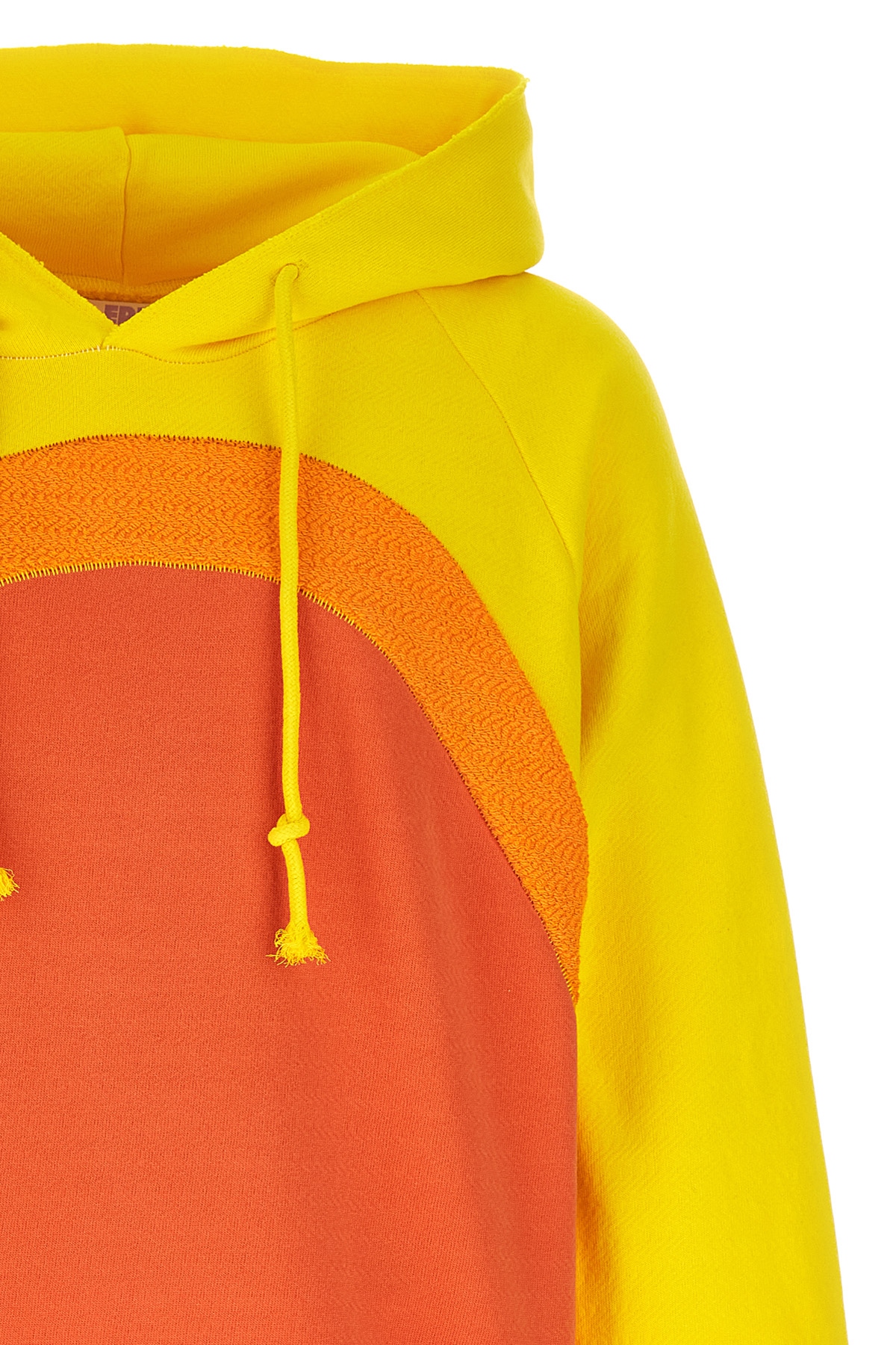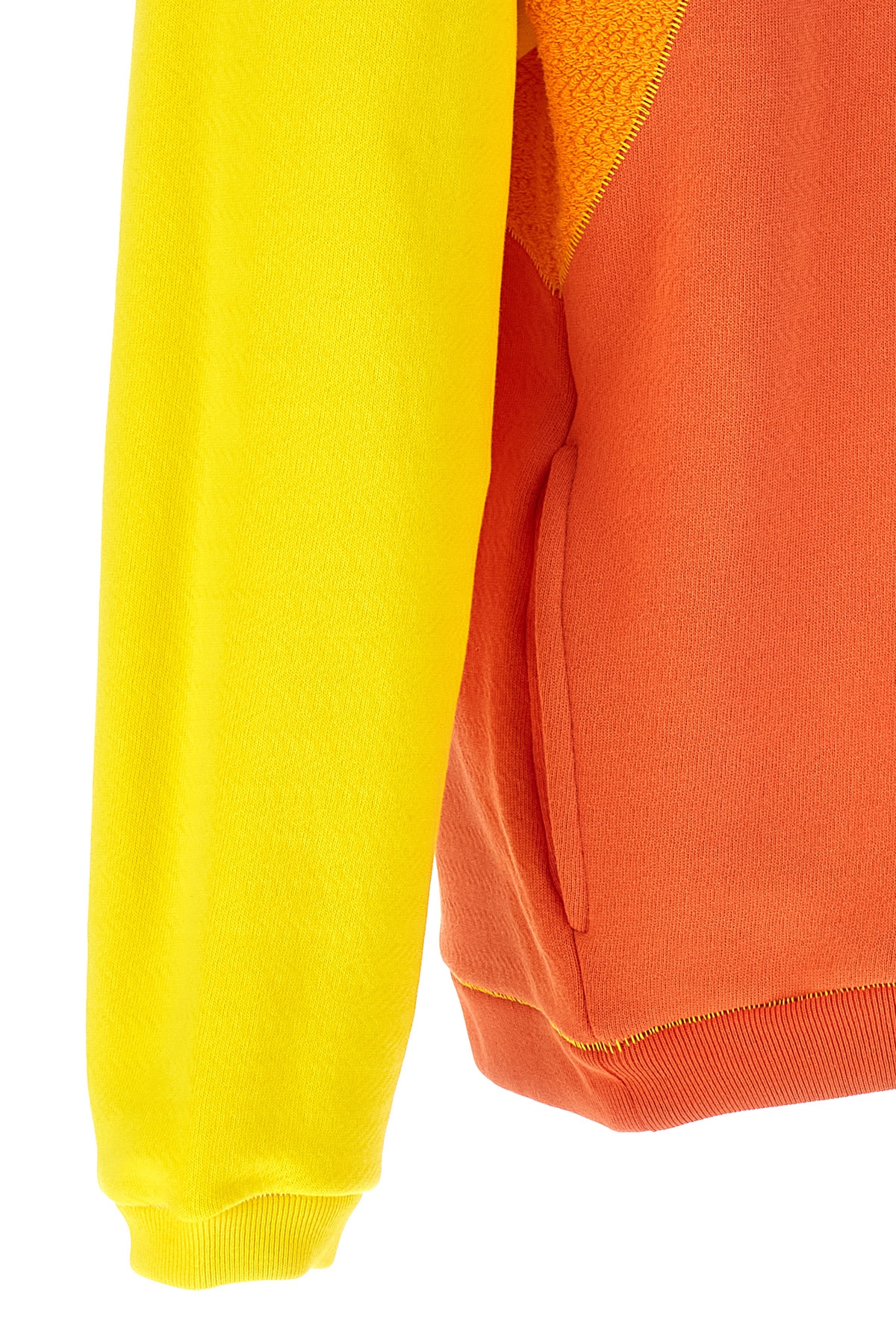Patchwork cotton hoodie, pockets, long sleeves with cuffs.