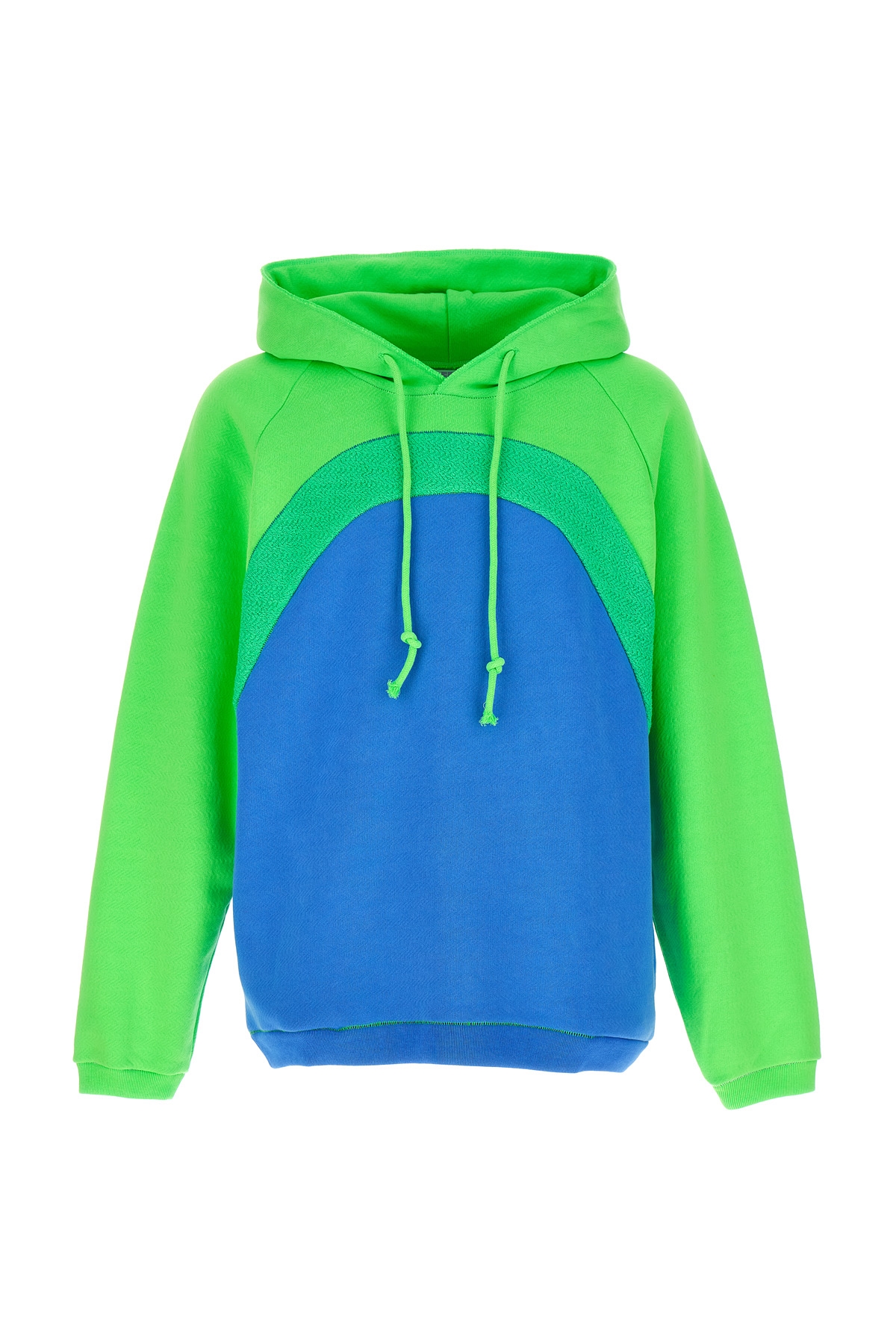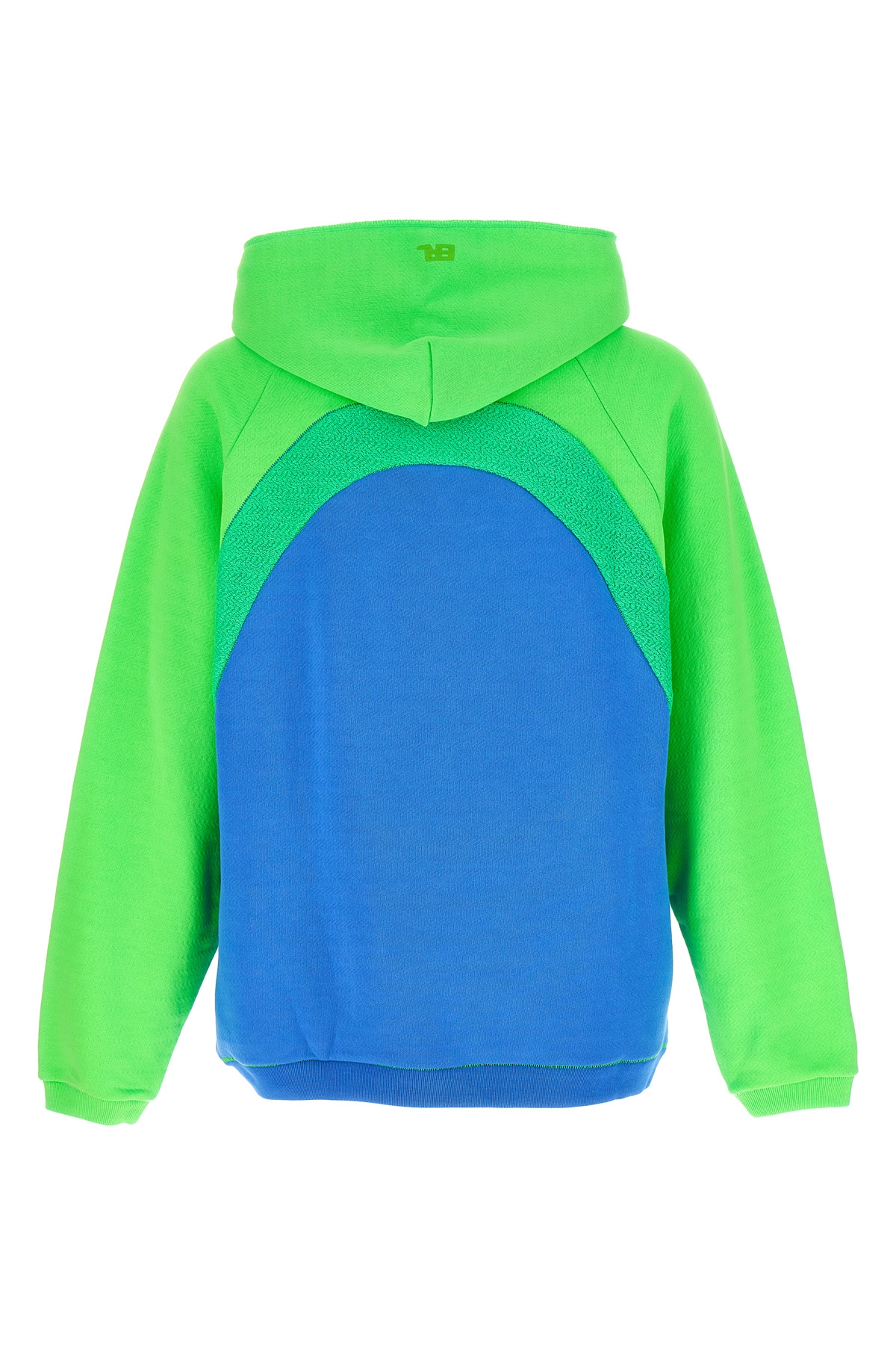 Patchwork cotton hoodie, pockets, long sleeves with cuffs.