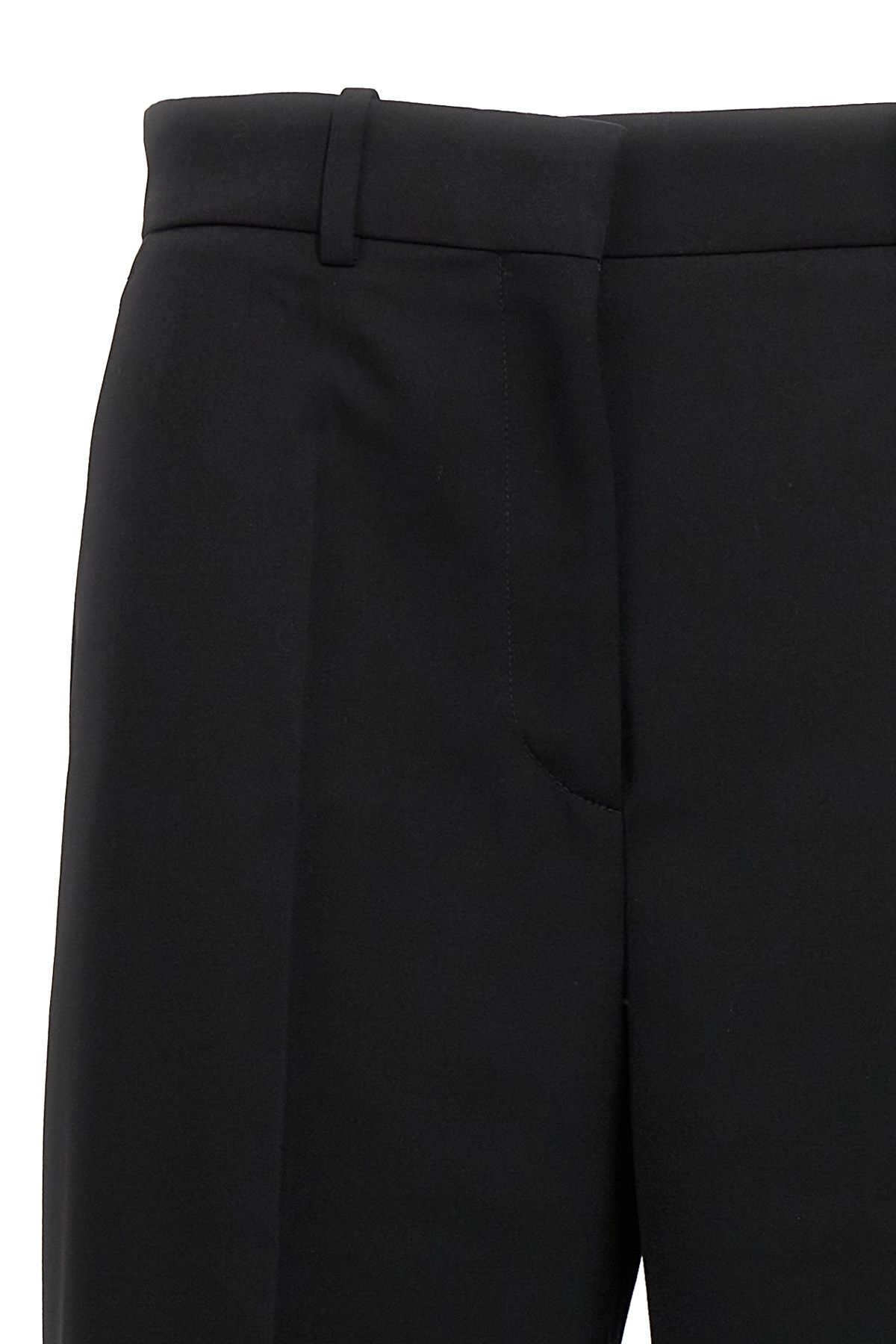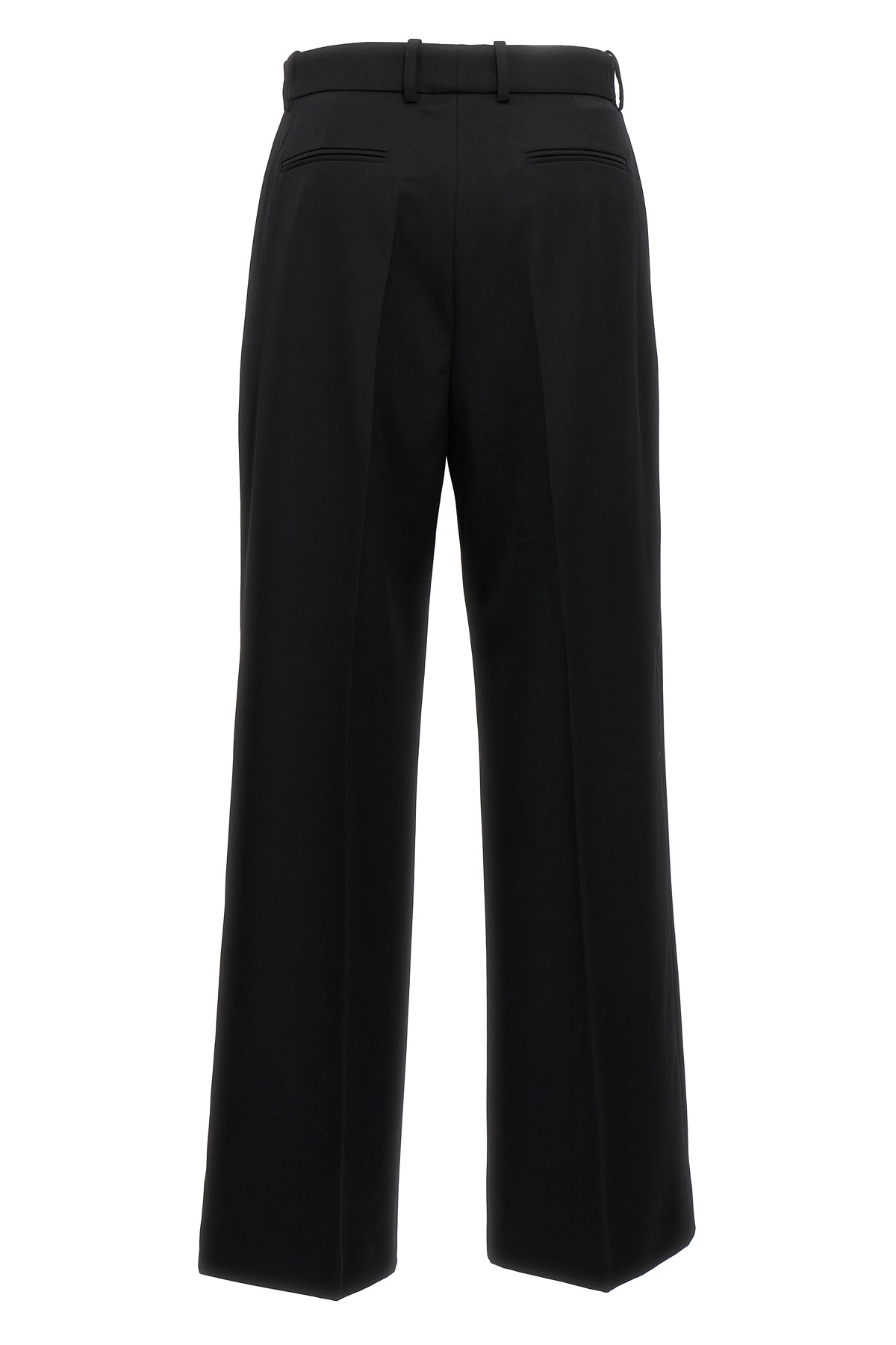 Wool pants with wide leg and central pleat, hook and button zip closure, pockets.