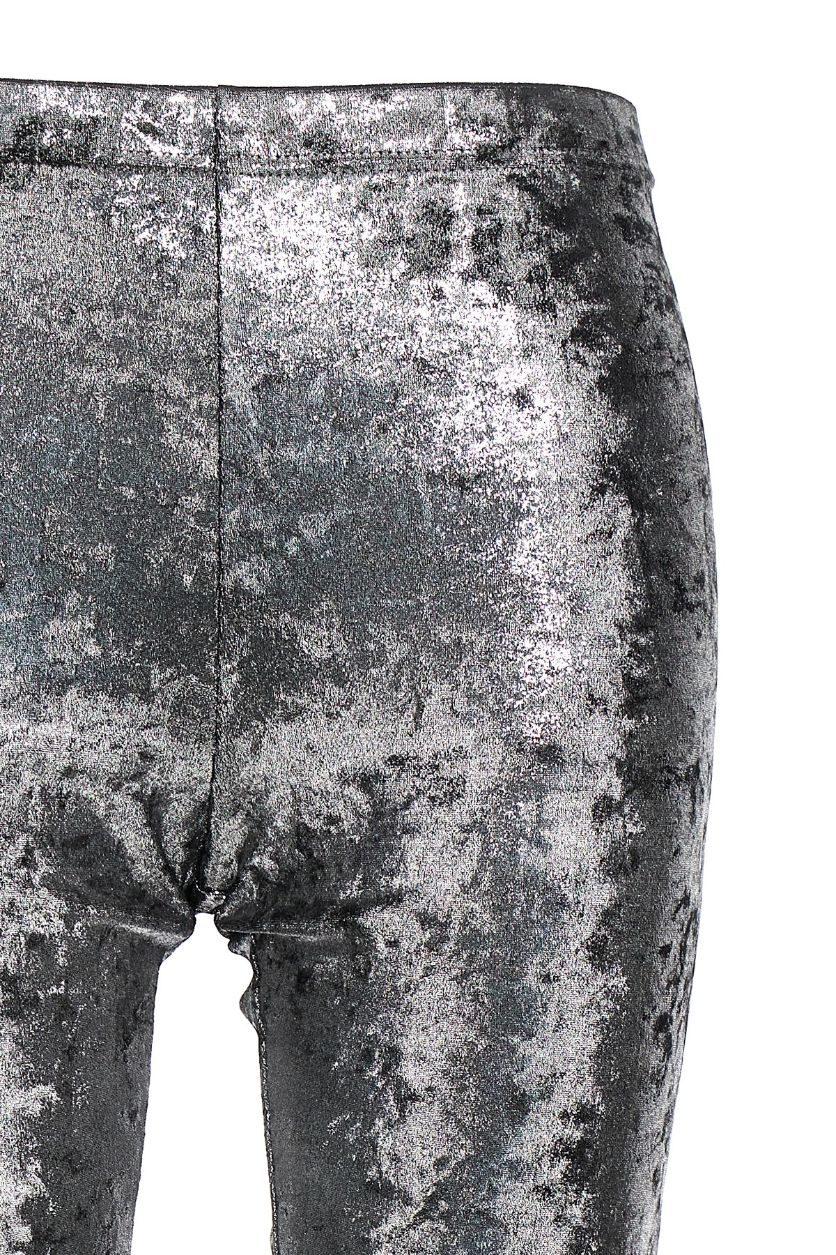 Lame effect stretch fabric leggings with elastic waistband.