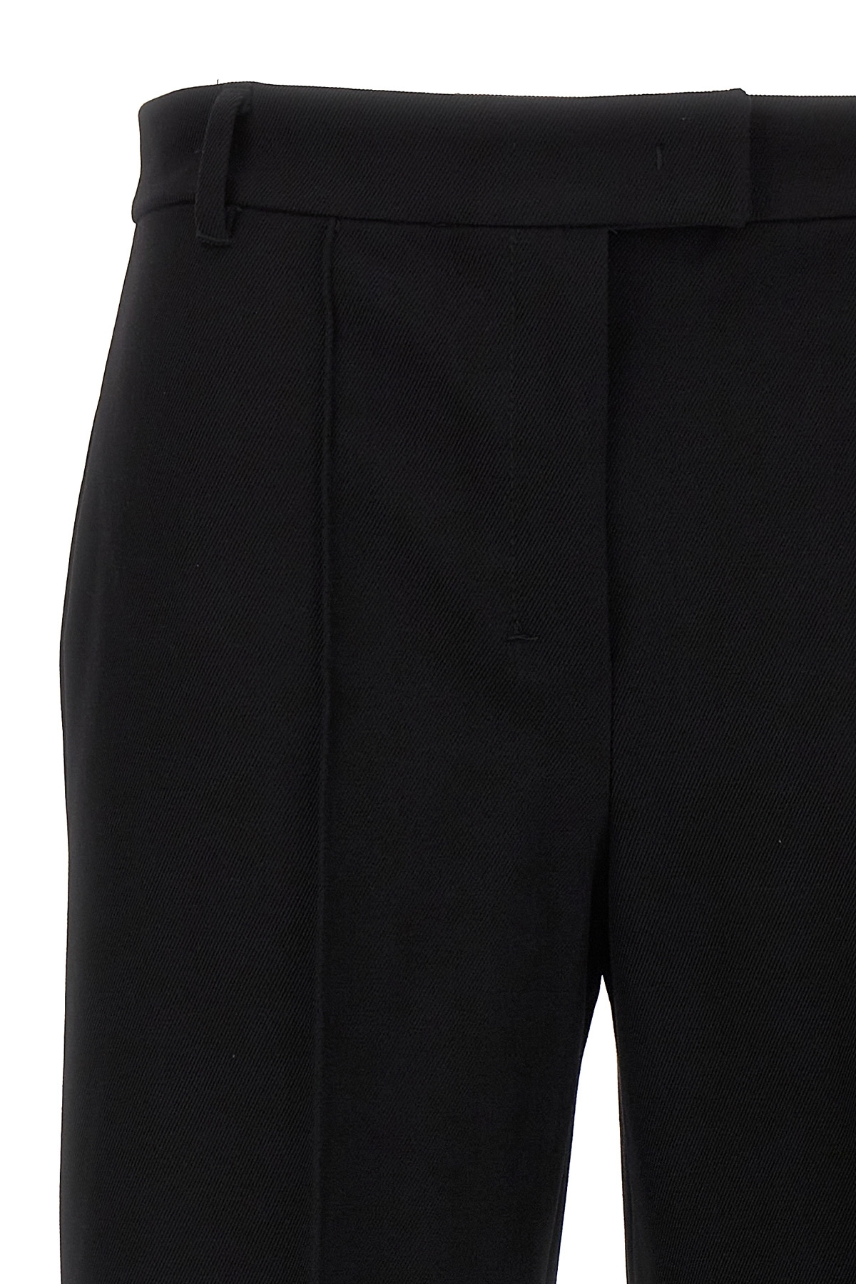 'Fenice' cotton blend pants, hook and button zip closure, wide leg with central stitching, pockets.