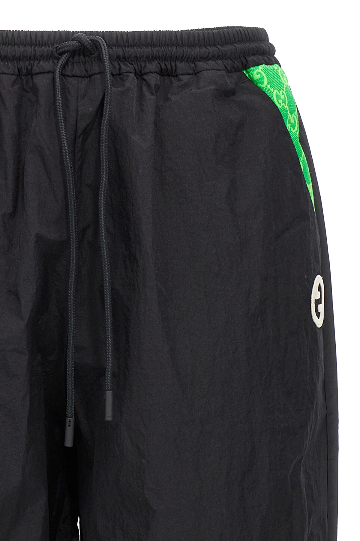 Nylon pants with patchwork 'GG' logo pattern, elastic and drawstring at the waist, pockets, elastic cuffs and zip detail on the bottom of the leg.