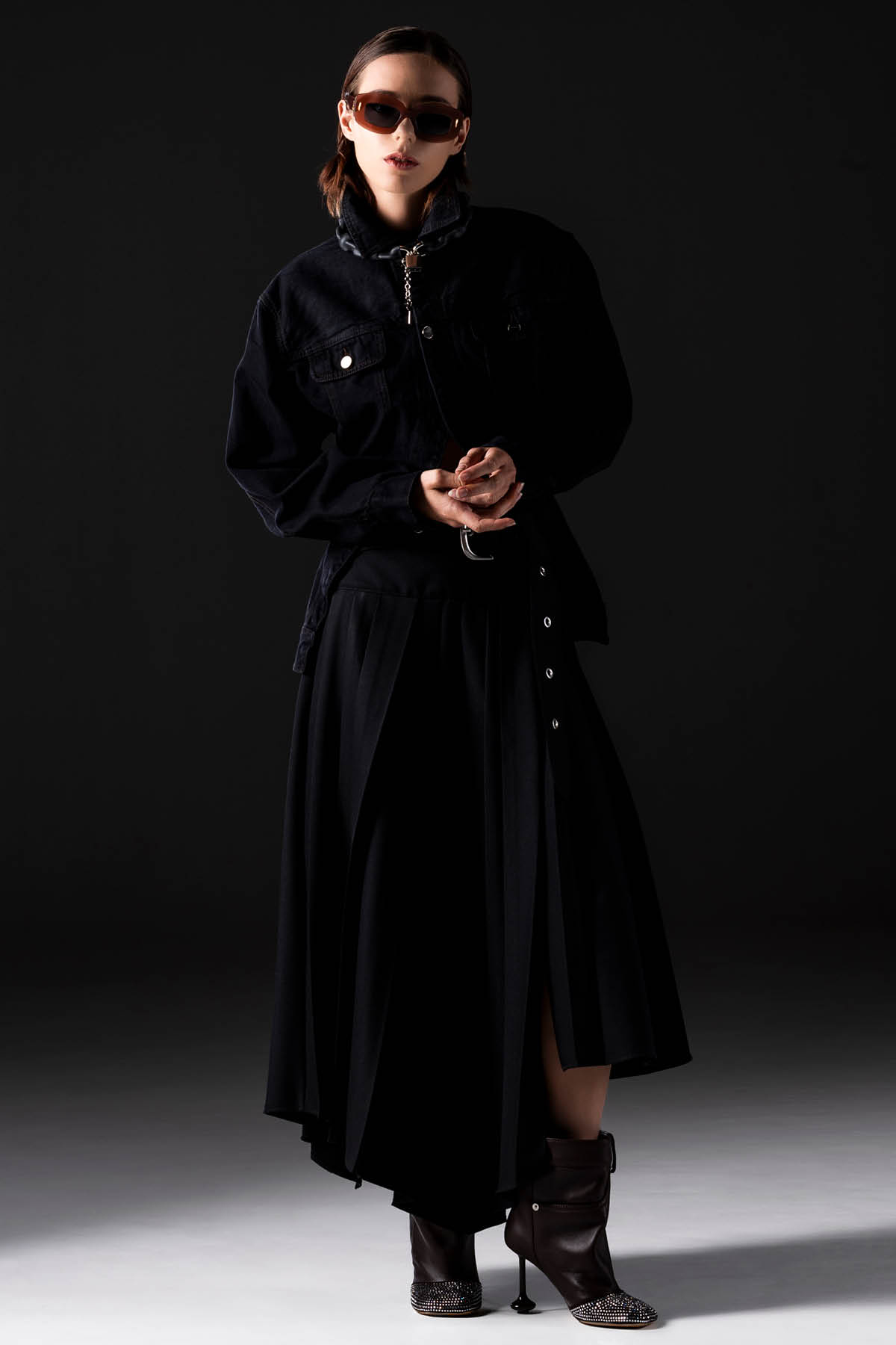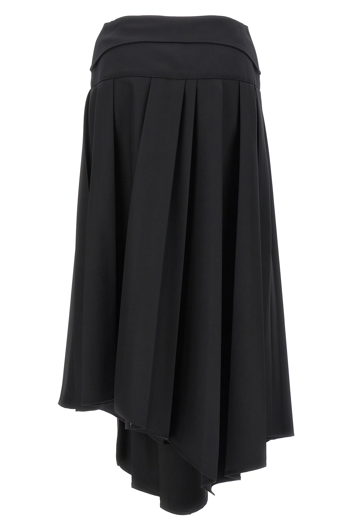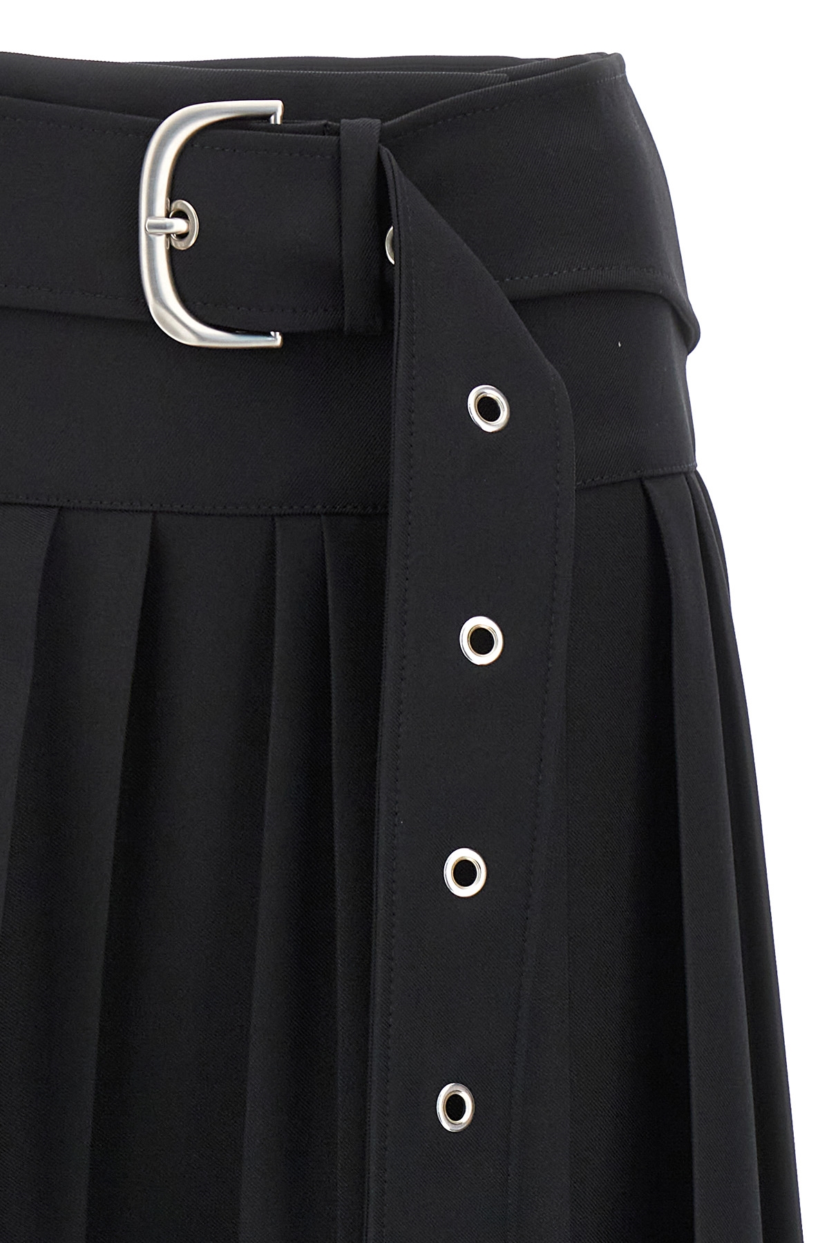 Midi skirt in pleated tech drill fabric with button closure, belt at the waist.