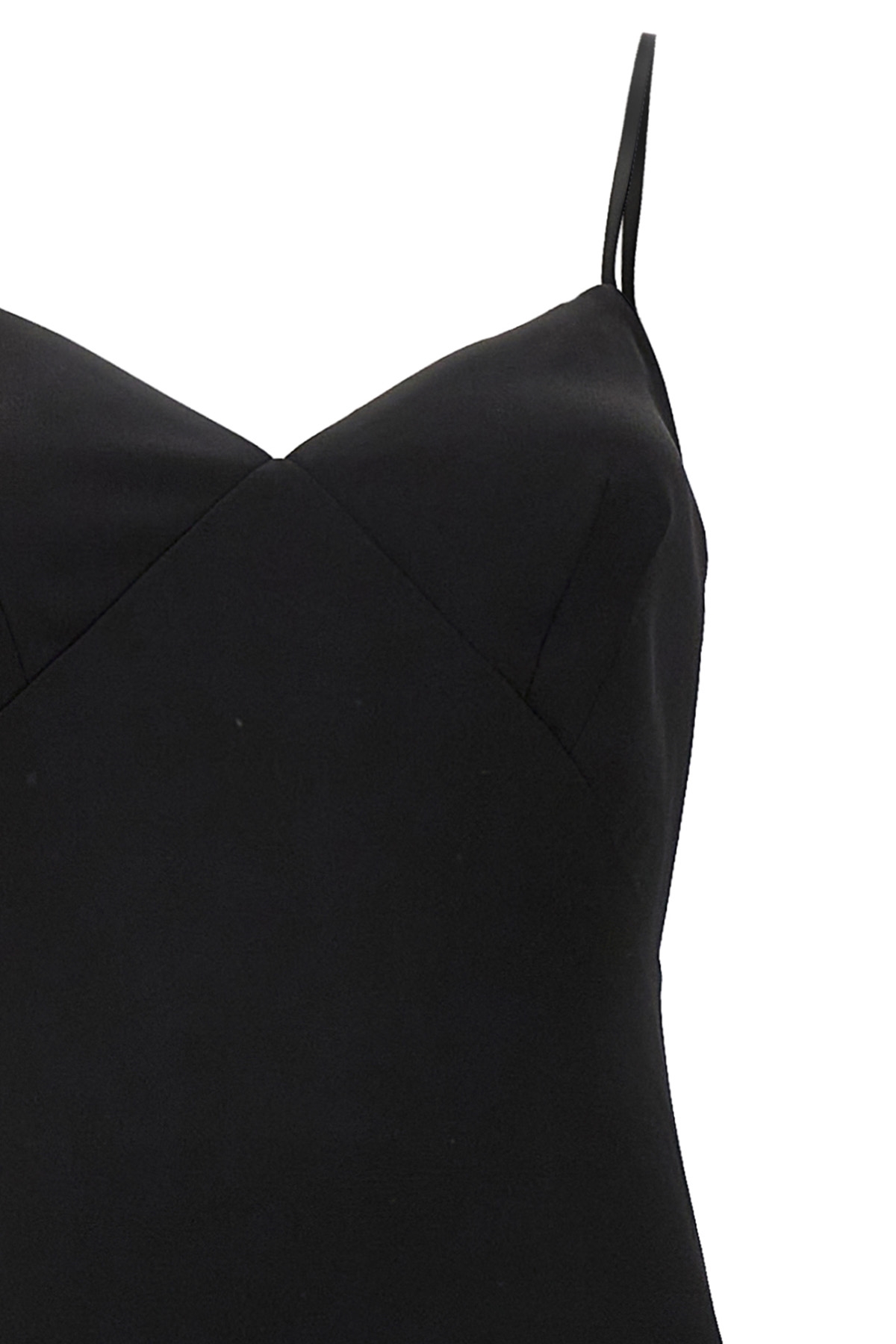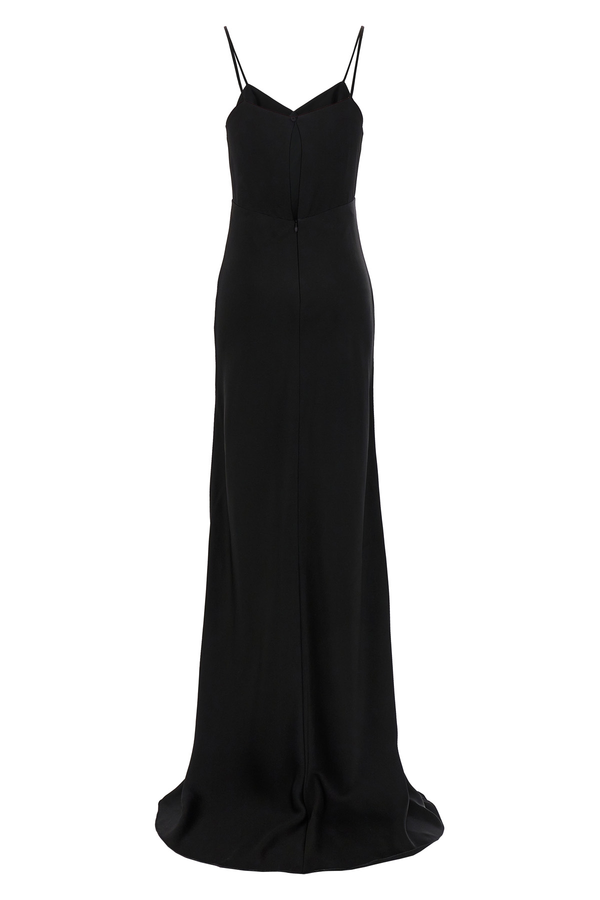 Long 'Selce' petticoat-style dress in shiny satin envers and viscose blend, wide V-neck with thin straps, and back zip closure.