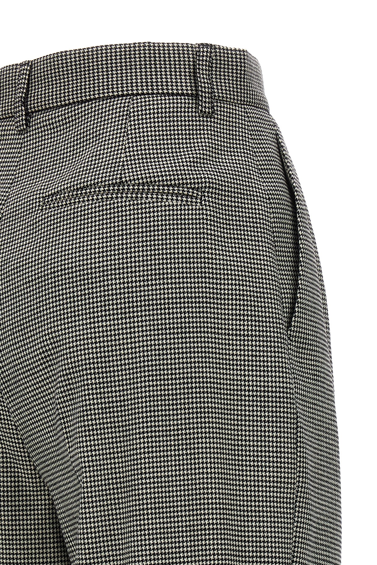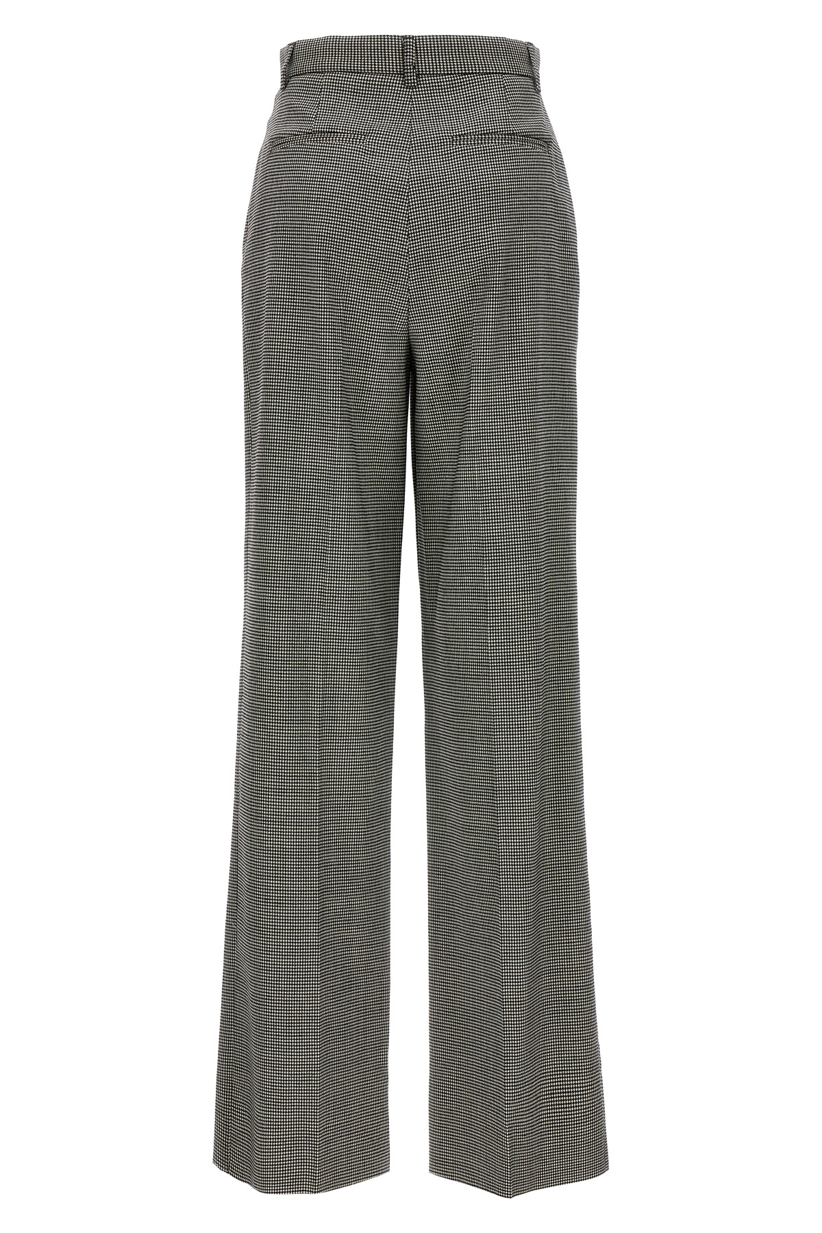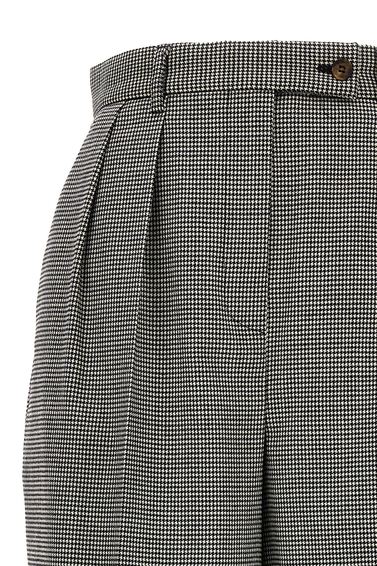 Wool pants with houndstooth pattern, wide leg, pleats, zip and button closure.