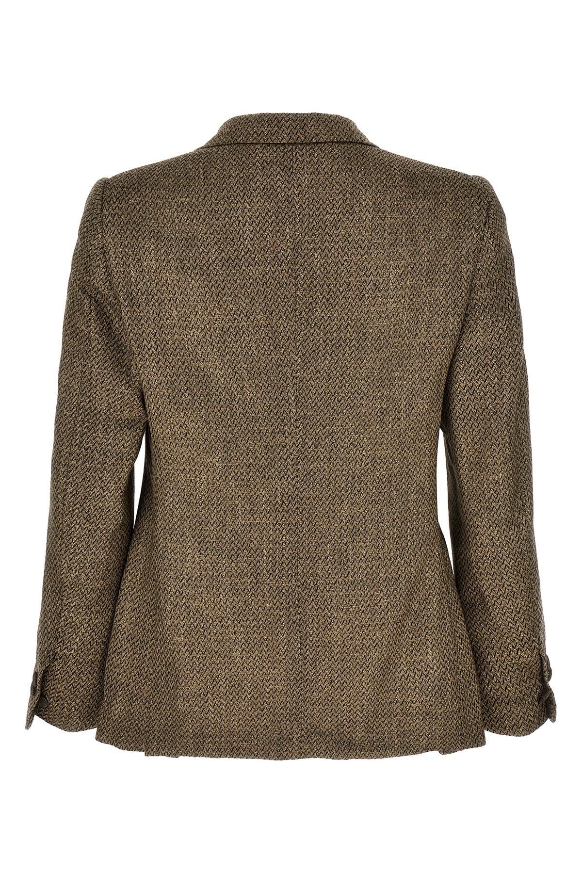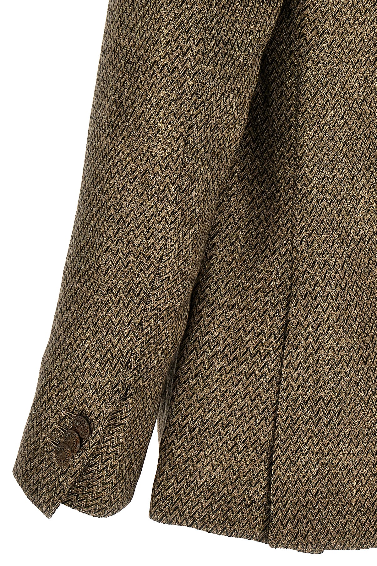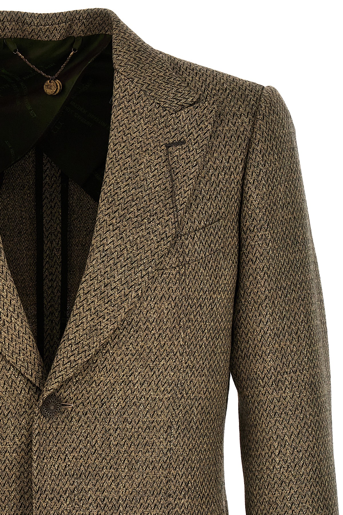 Herringbone patterned wool blend 'Keanu' single-breasted blazer with button closure, pockets, long sleeves and back split.