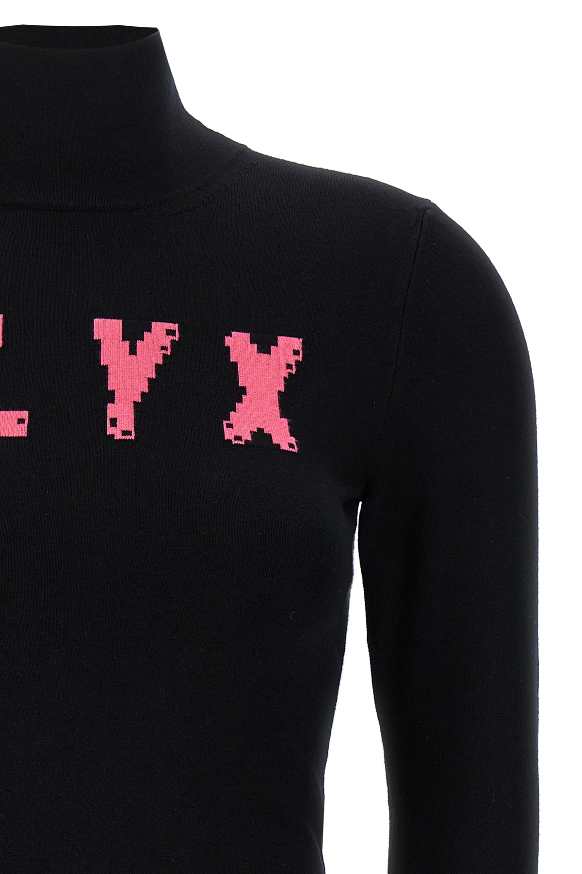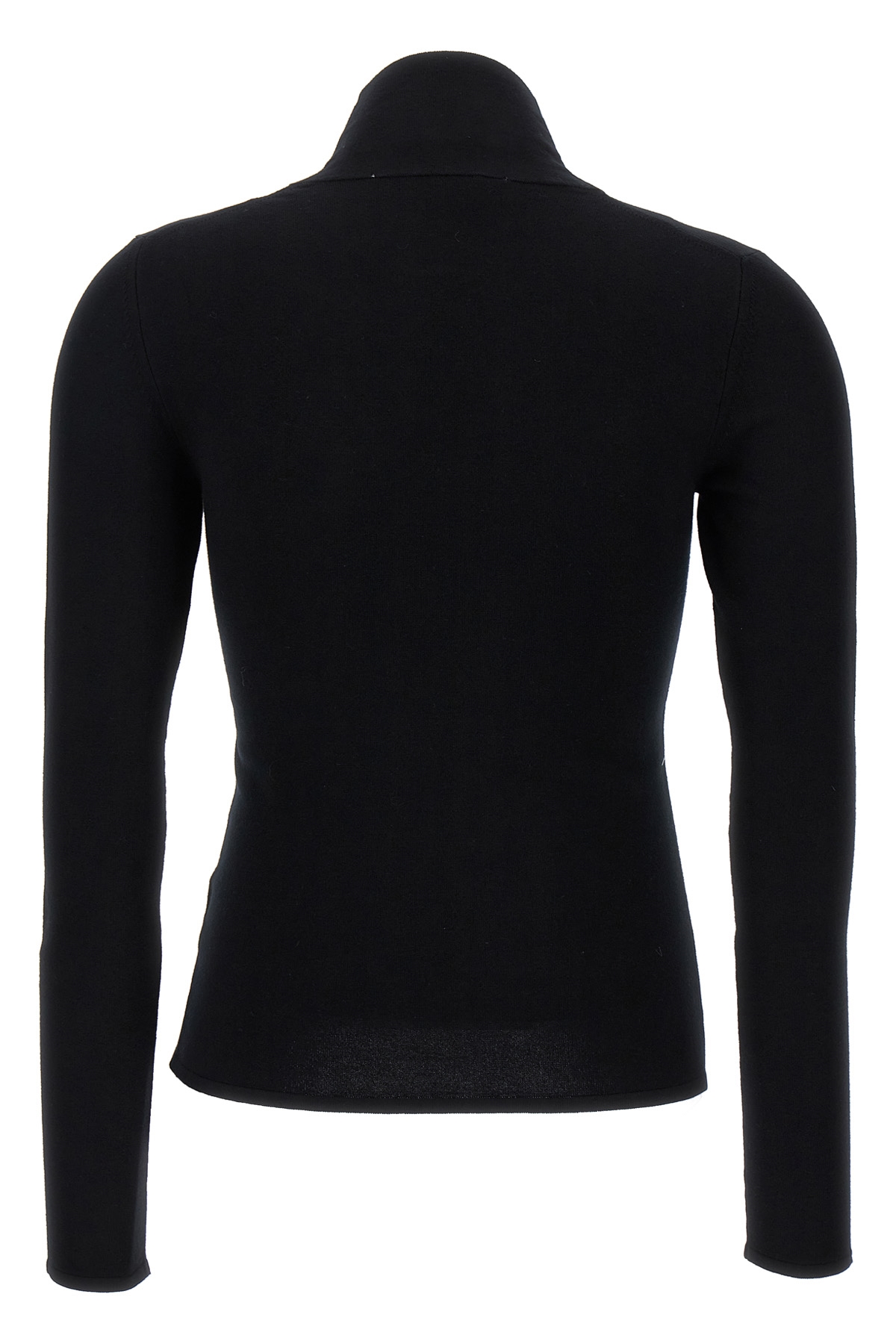 Viscose blend sweater with front inlaid logo, high neck, long sleeves.