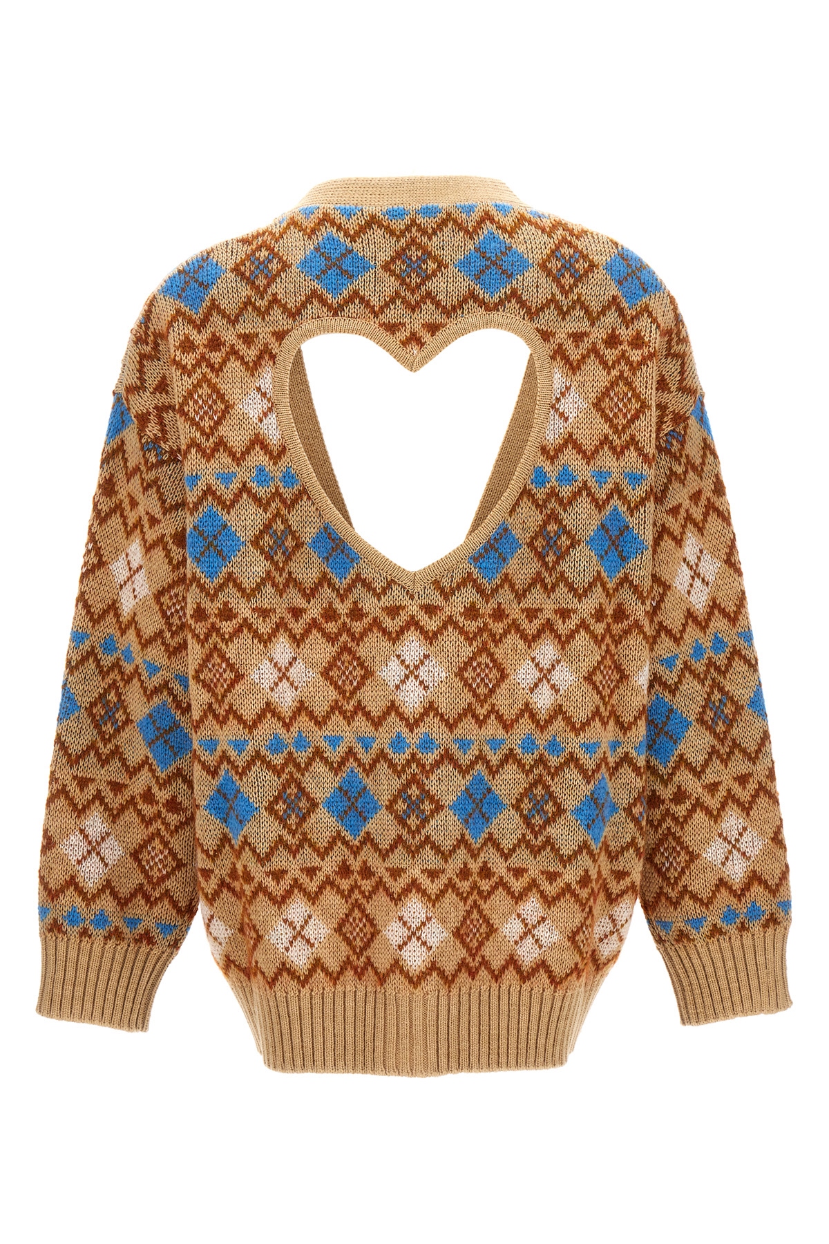 'Heart Vintage Shetland' cardigan in wool blend with all-over jacquard pattern, back cut-out detail, button closure, long cuffed sleeves.