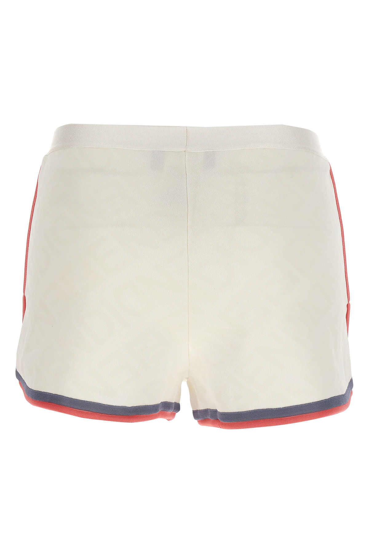 Viscose blend shorts with all-over logo pattern, elastic waistband, and contrasting edges.