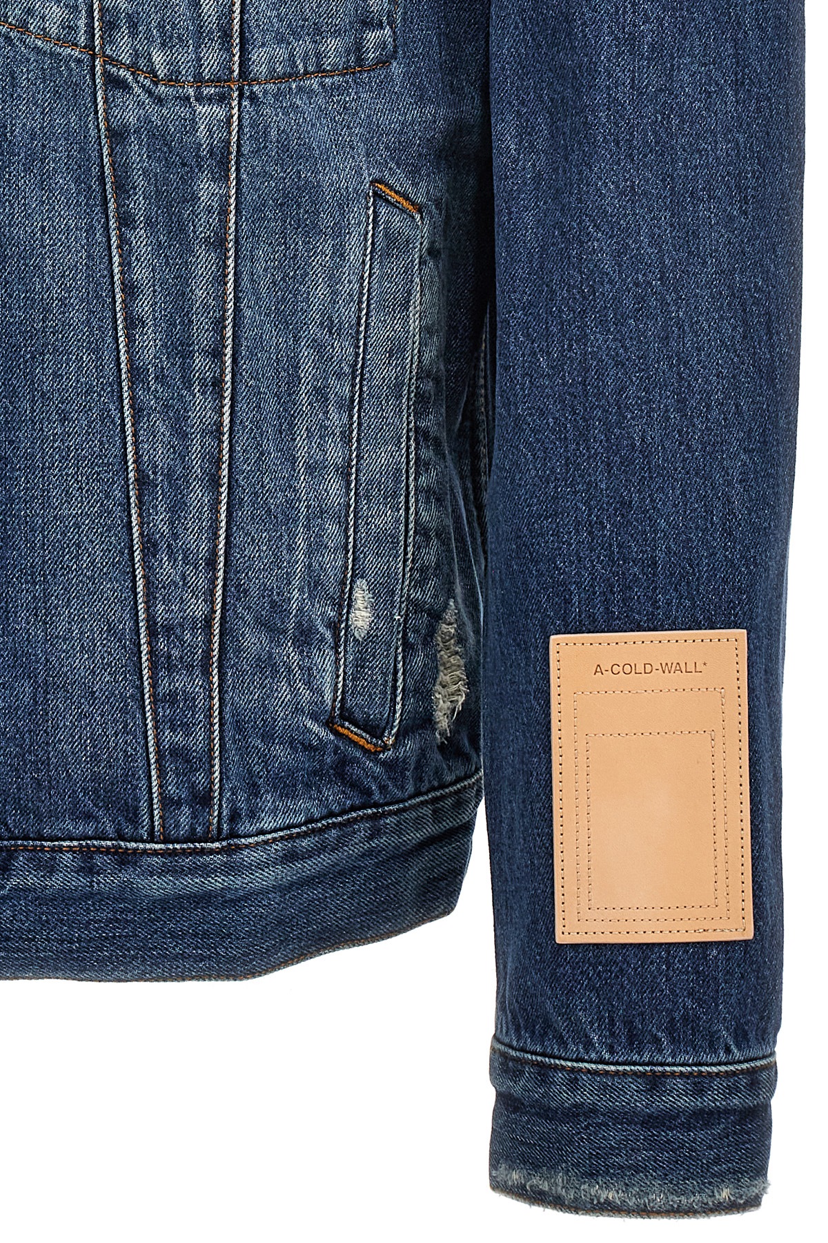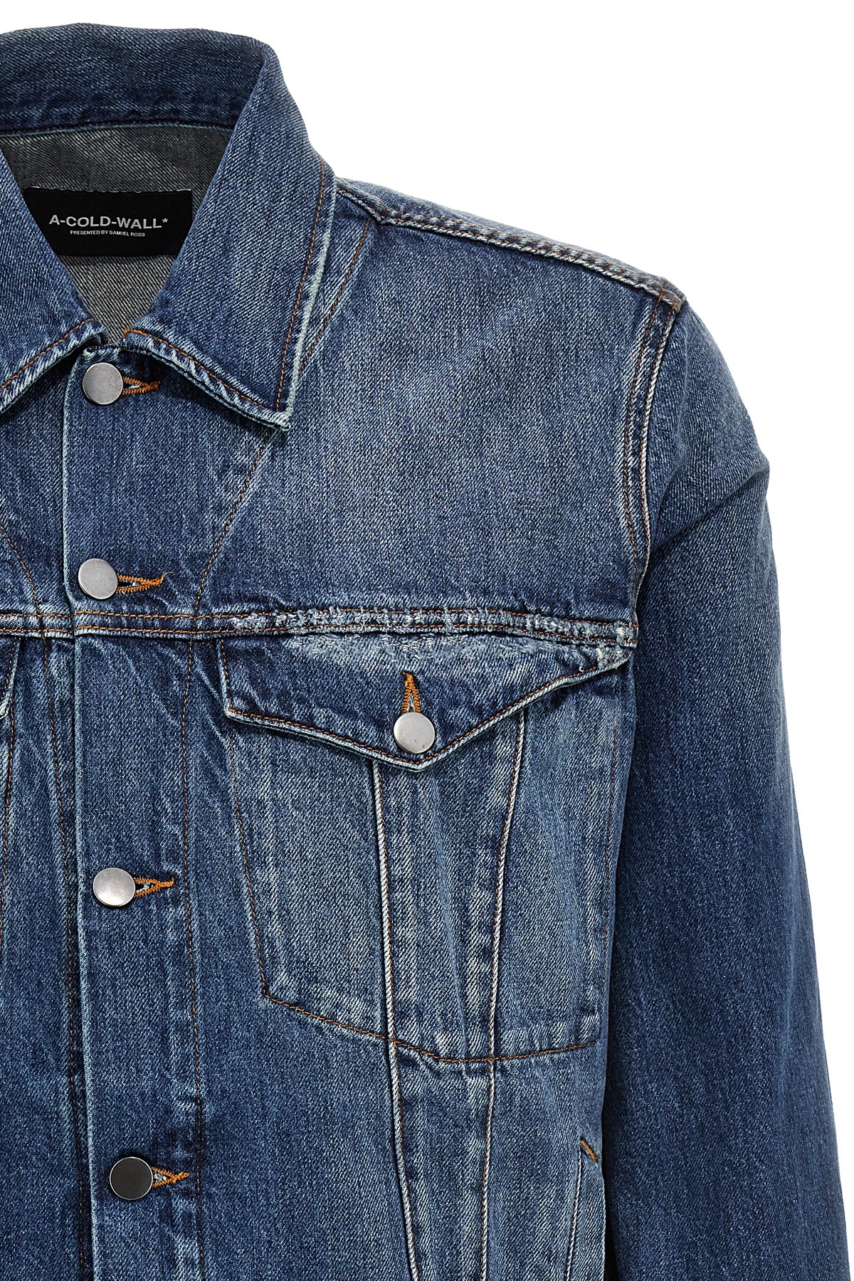 Giacca 'Foundry Selvedge' in denim di cotone con dettagli effetto used, chiusura bottoni, tasche, manica lunga, patch logo in pelle.