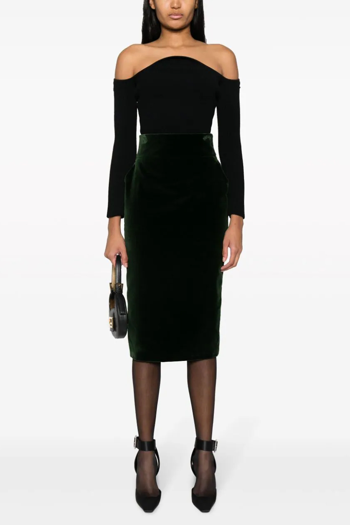 Gonna midi in velluto con tasche, chiusura zip, tasche.