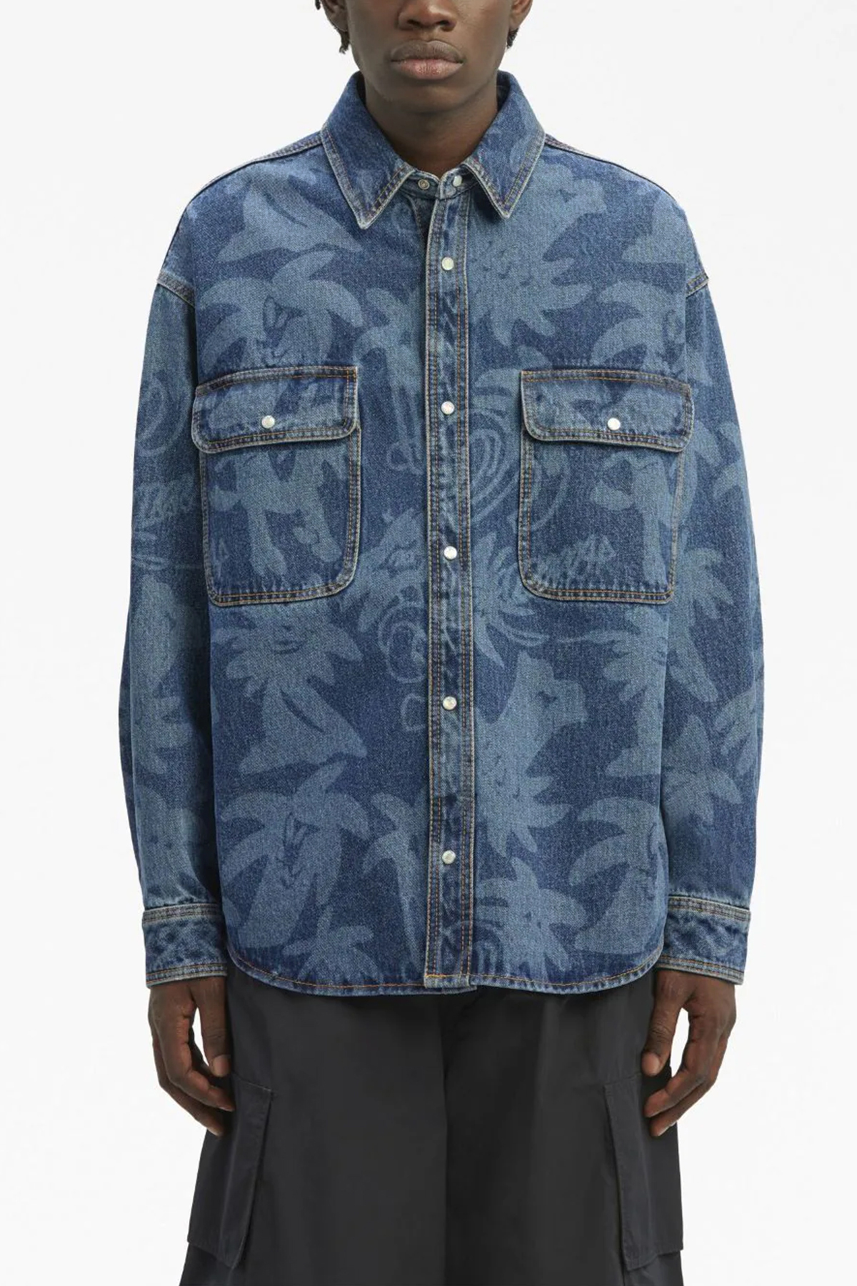 Giacca 'Palmity Allover Laser' in denim di cotone con motivo all-over, chiusura bottoni, taschini frontali, manica lunga con polsino.