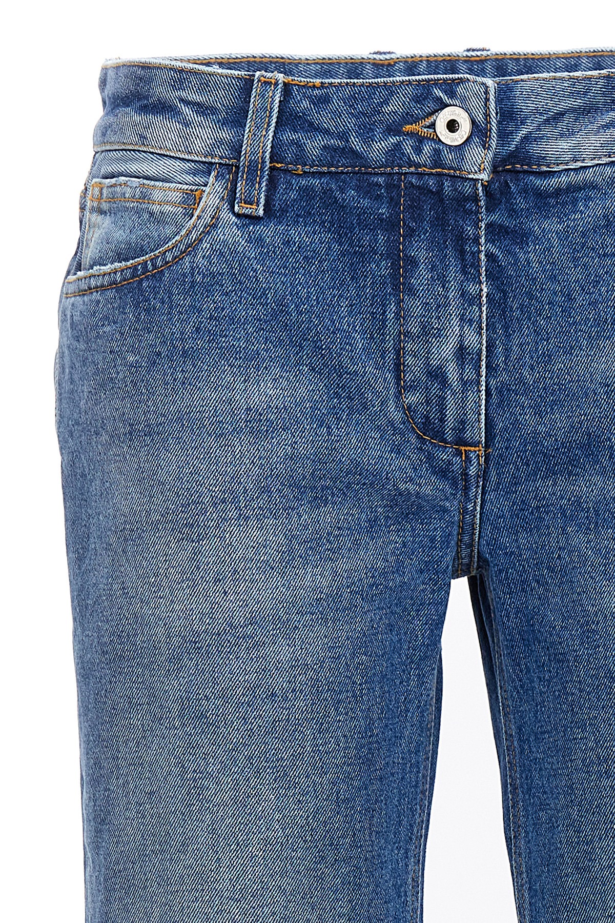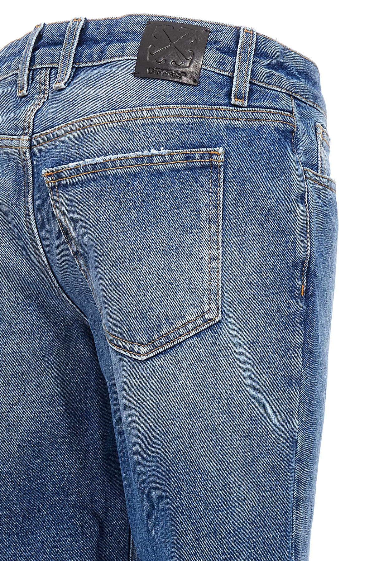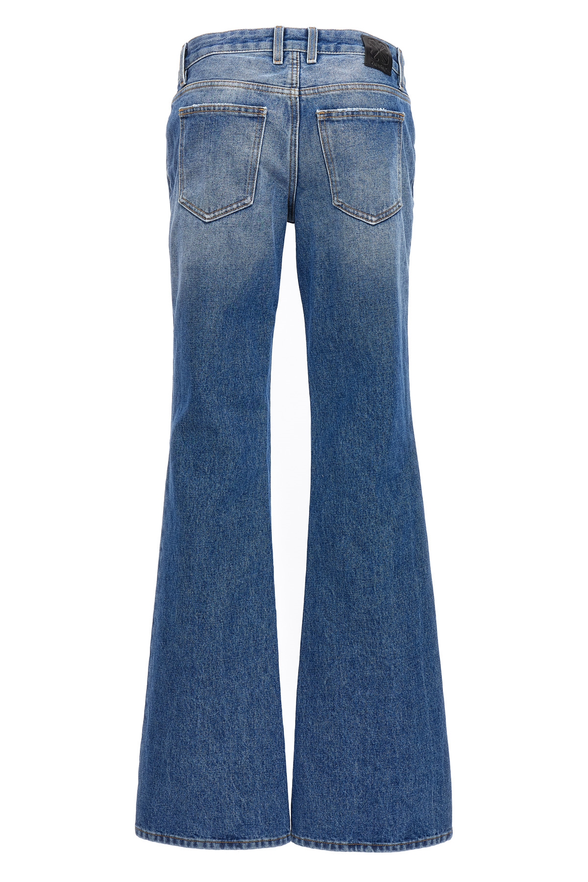 Jeans in denim di cotone con gamba flared, dettagli effetto used, chiusura zip e bottone, cinque tasche, salpa in pelle con logo.
