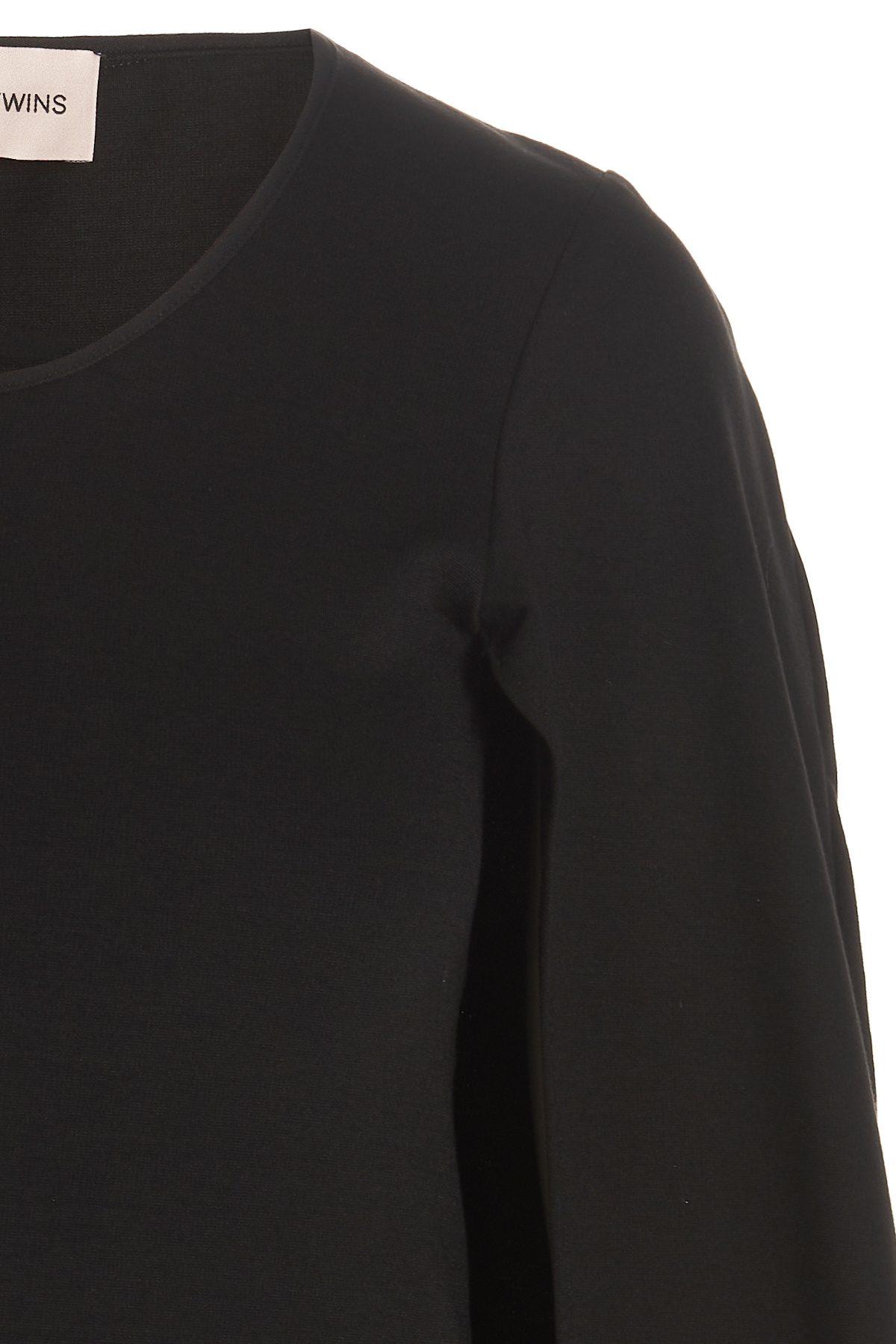 Stretch fabric 'Perugia' sleeveless dress, with a crewneck, and a cape at the back.