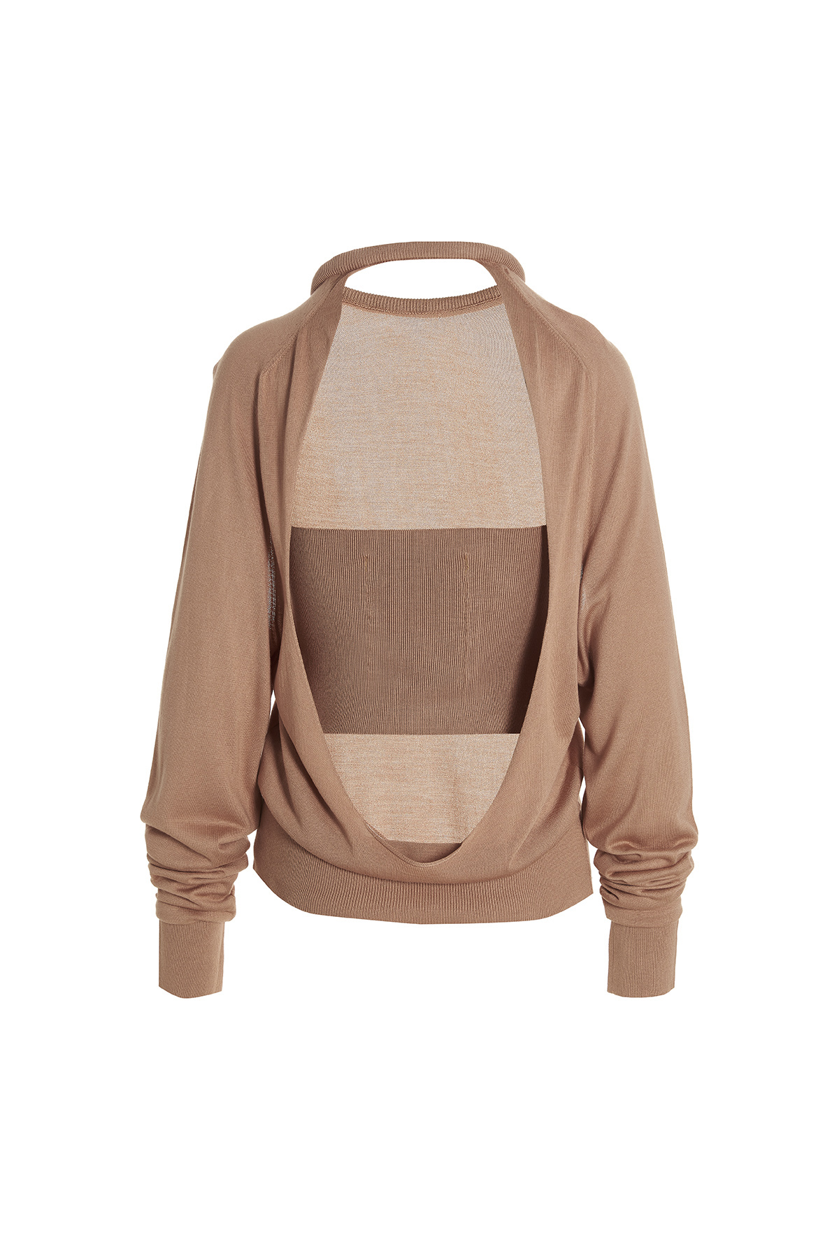 Silk sweater with cut-out details, removable top insert, long sleeves and a crewneck.