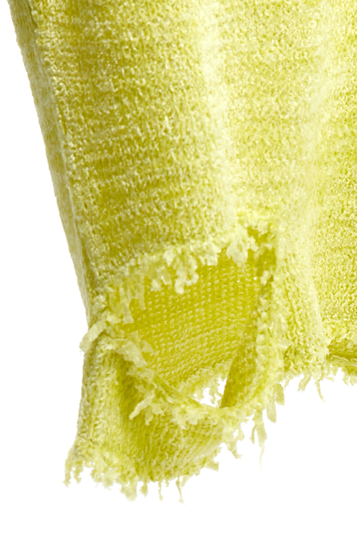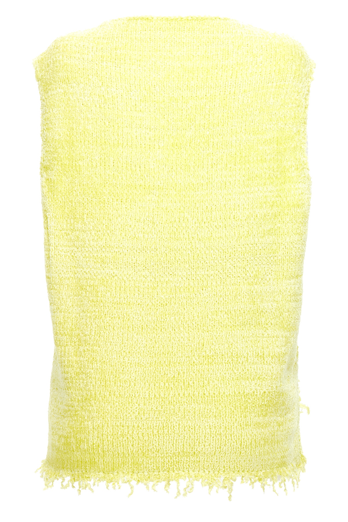 Chenille vest featuring destroyed detail, round neckline and frayed hem.